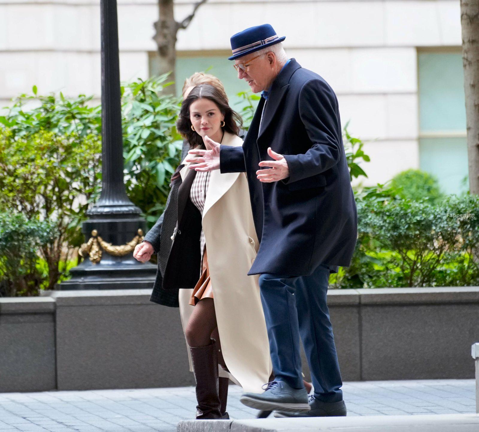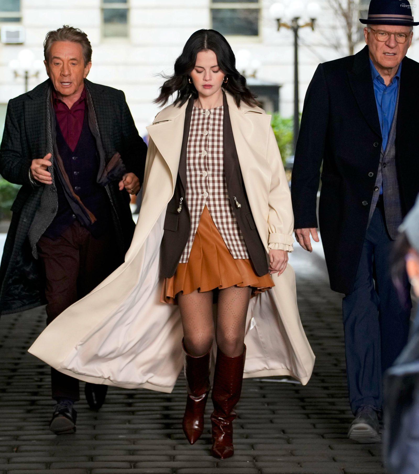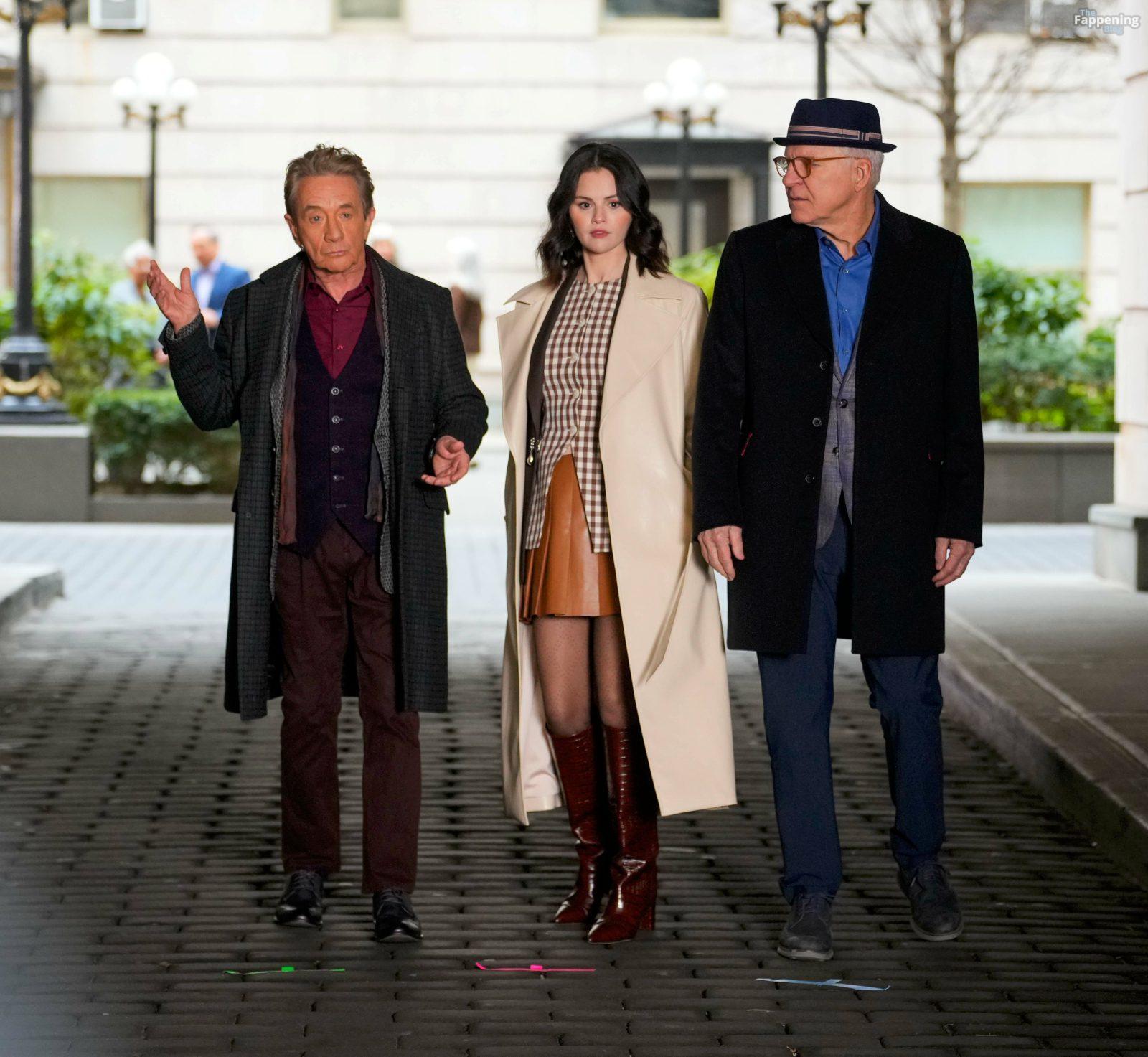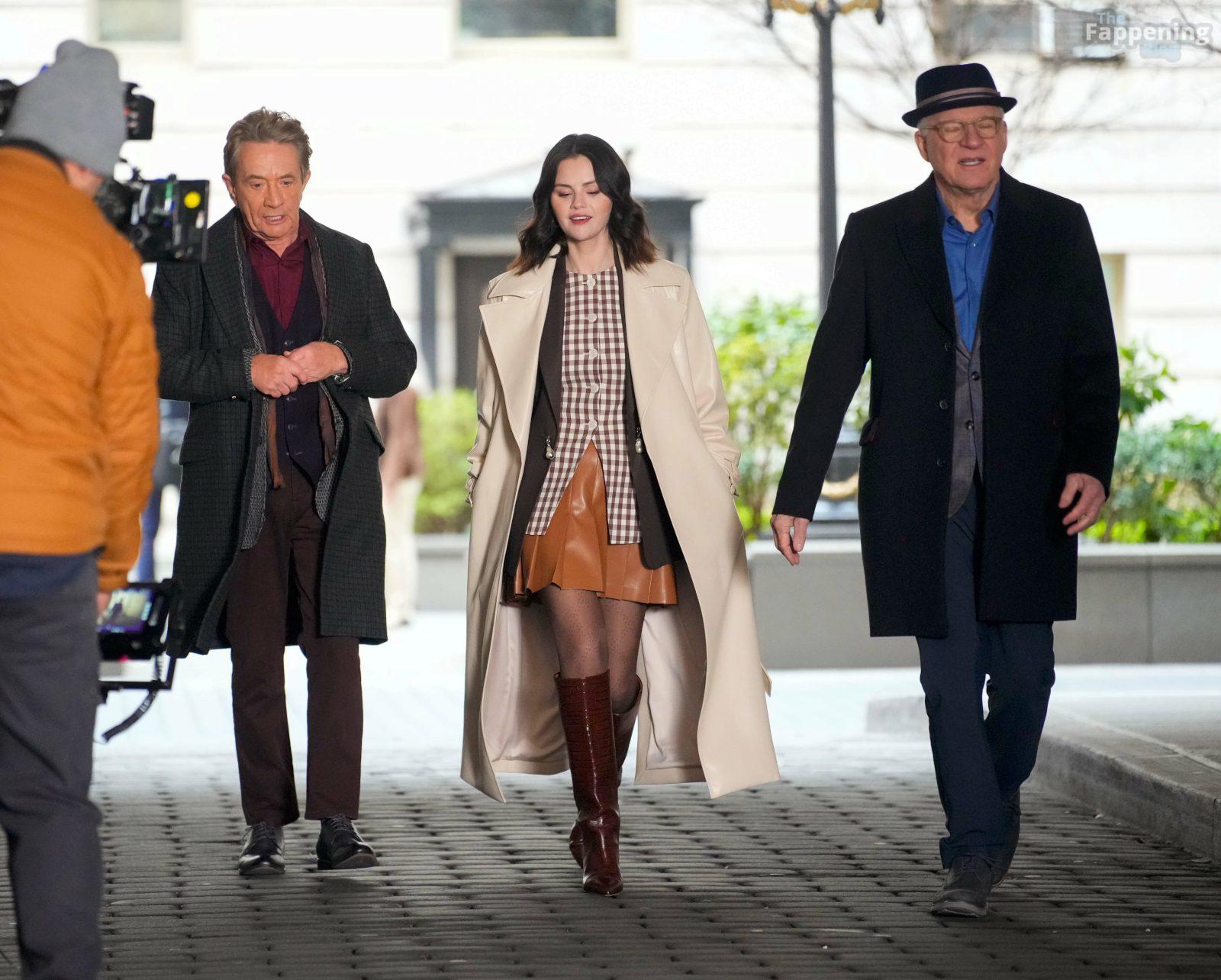 A estrela do Fappening Selena Gomez foi flagrada no set de “Only Murders in the Building” em Nova York, usando uma minissaia estilosa, trench coat e botas altas.