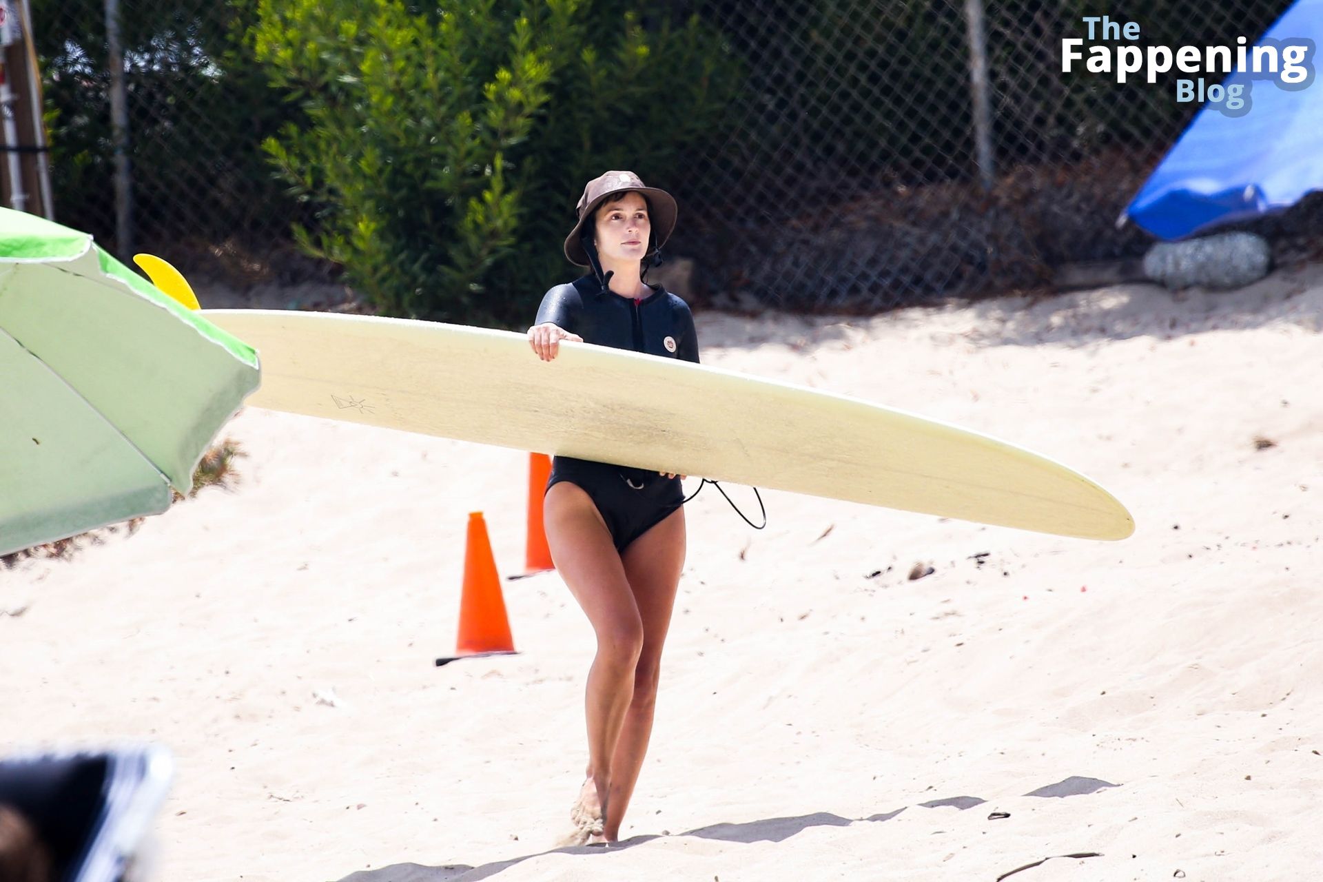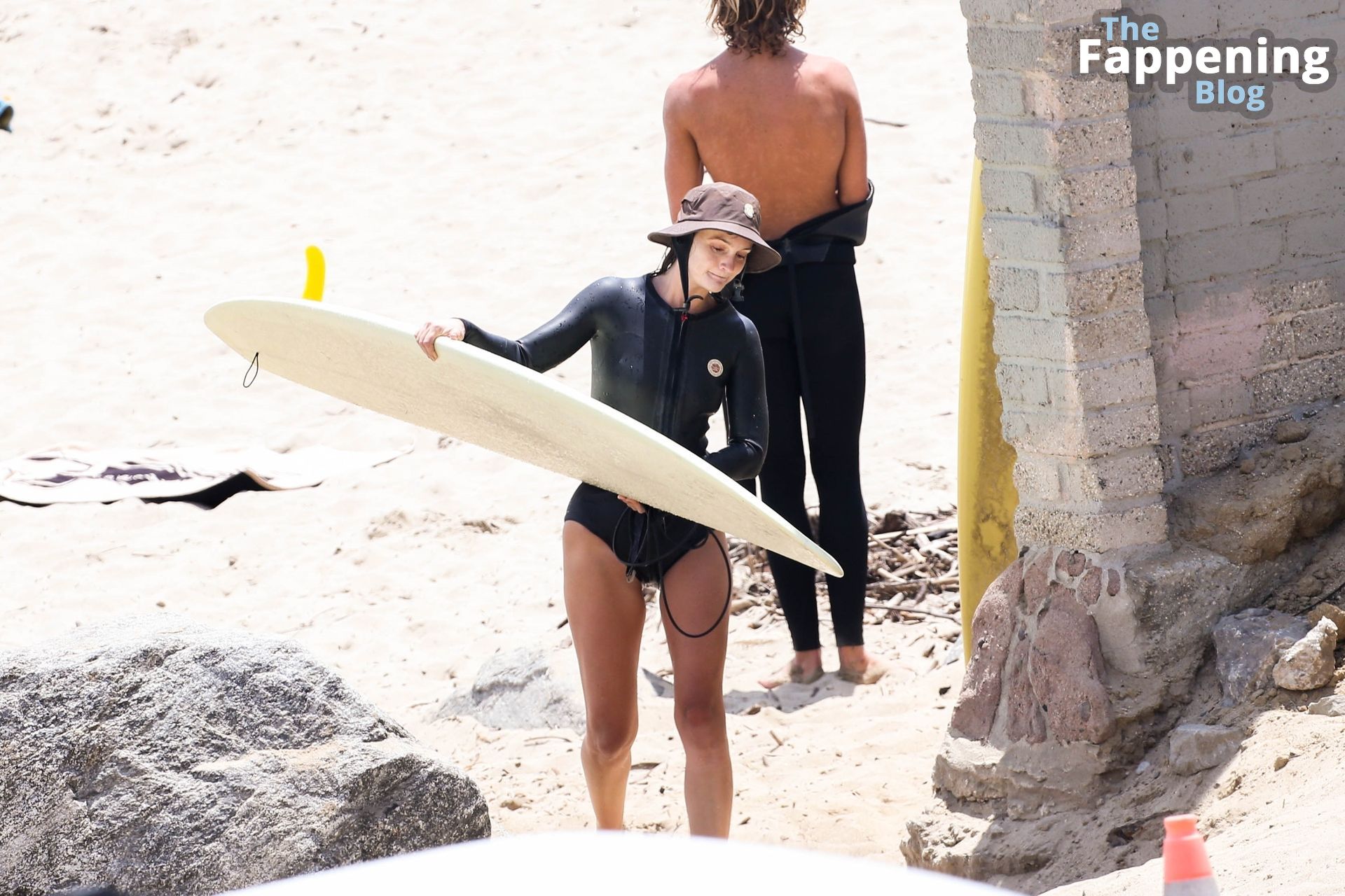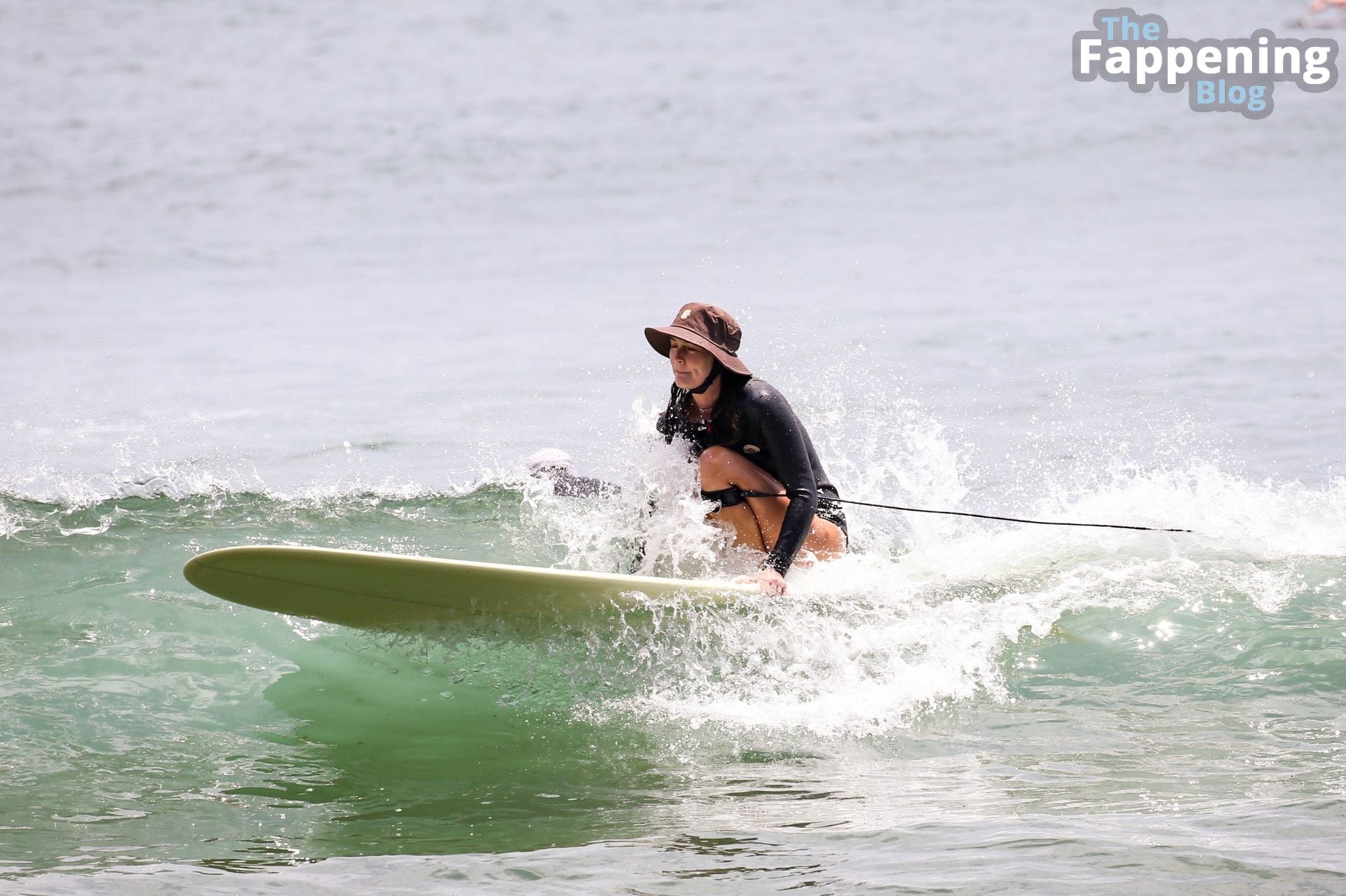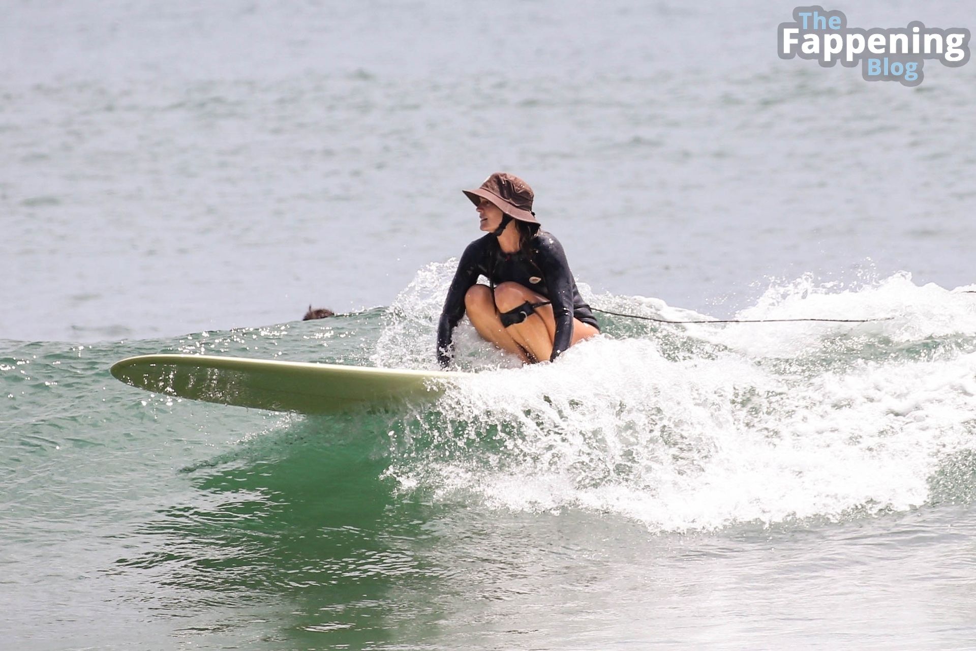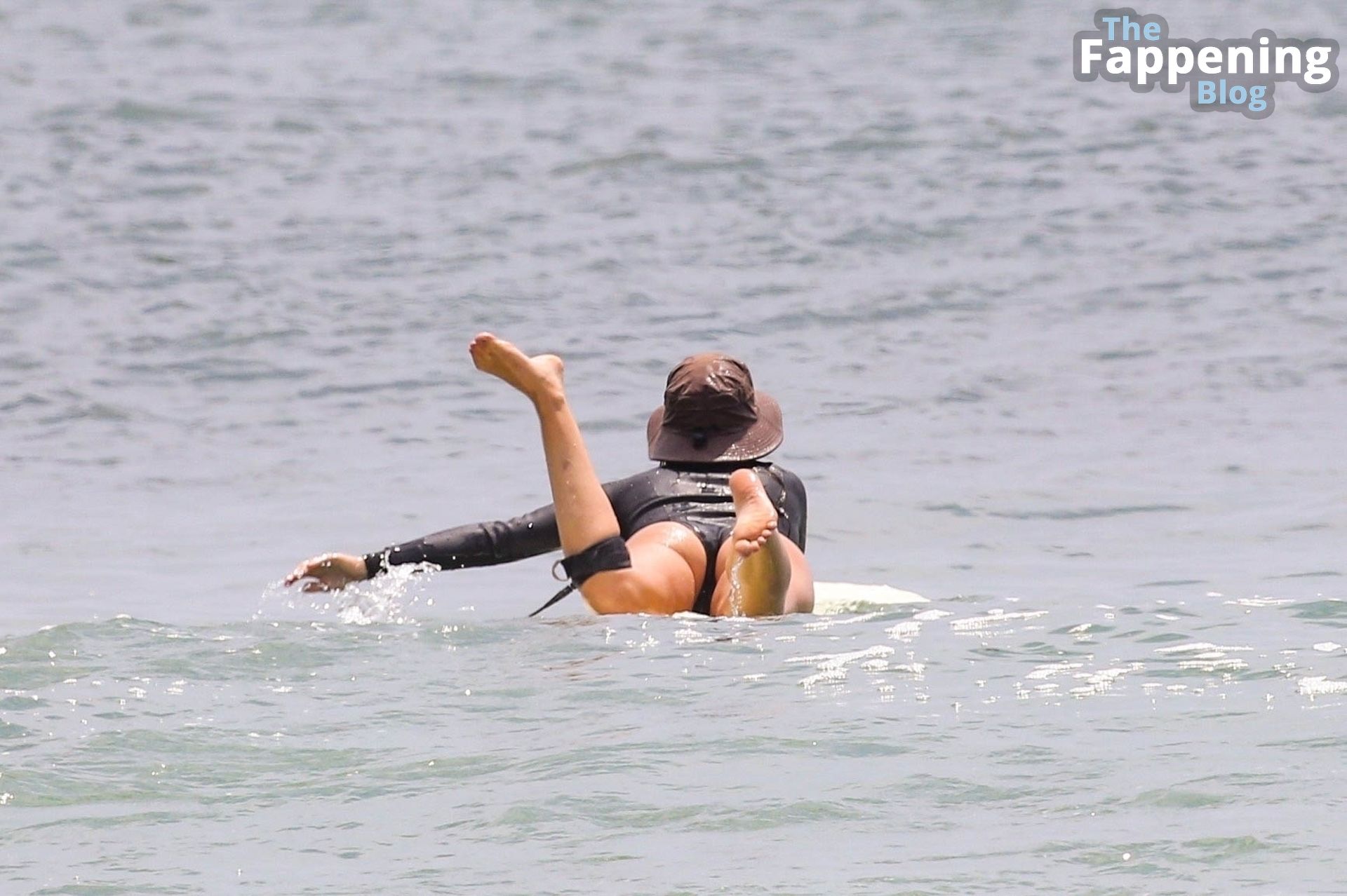 Atriz Leighton Meester, mais conhecida por seu papel na série de TV ‘Gossip Girl’, foi vista mostrando suas habilidades de surfe durante uma sessão solo de ondas no ensolarado Malibu, 12/08/2023.