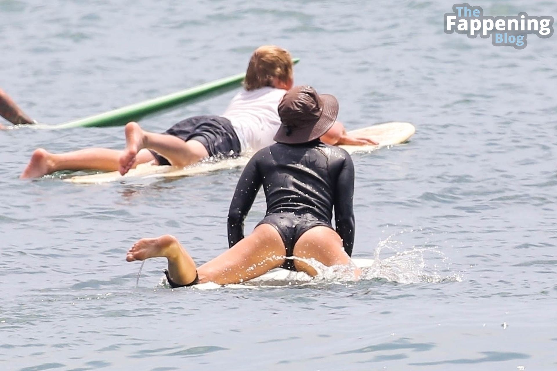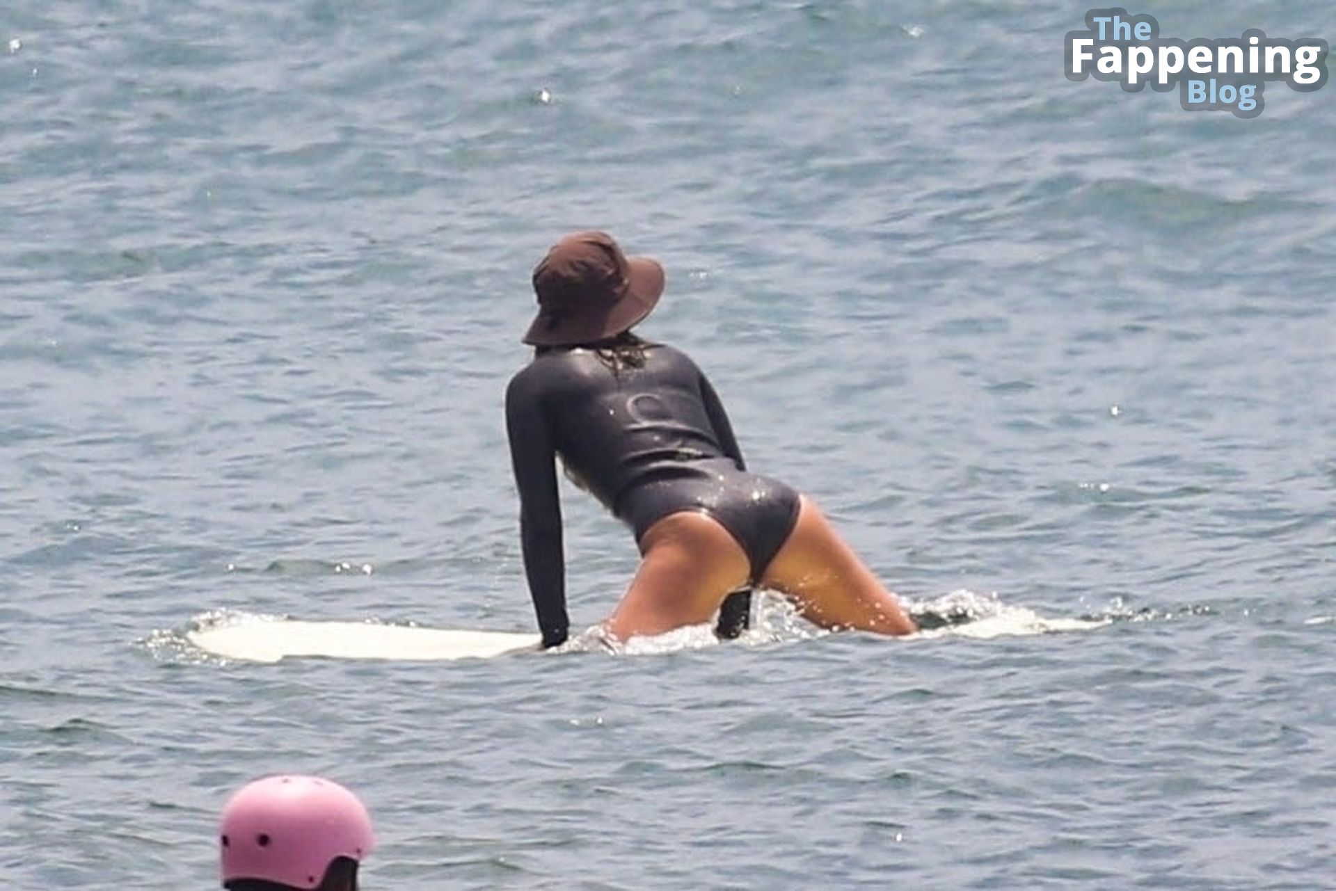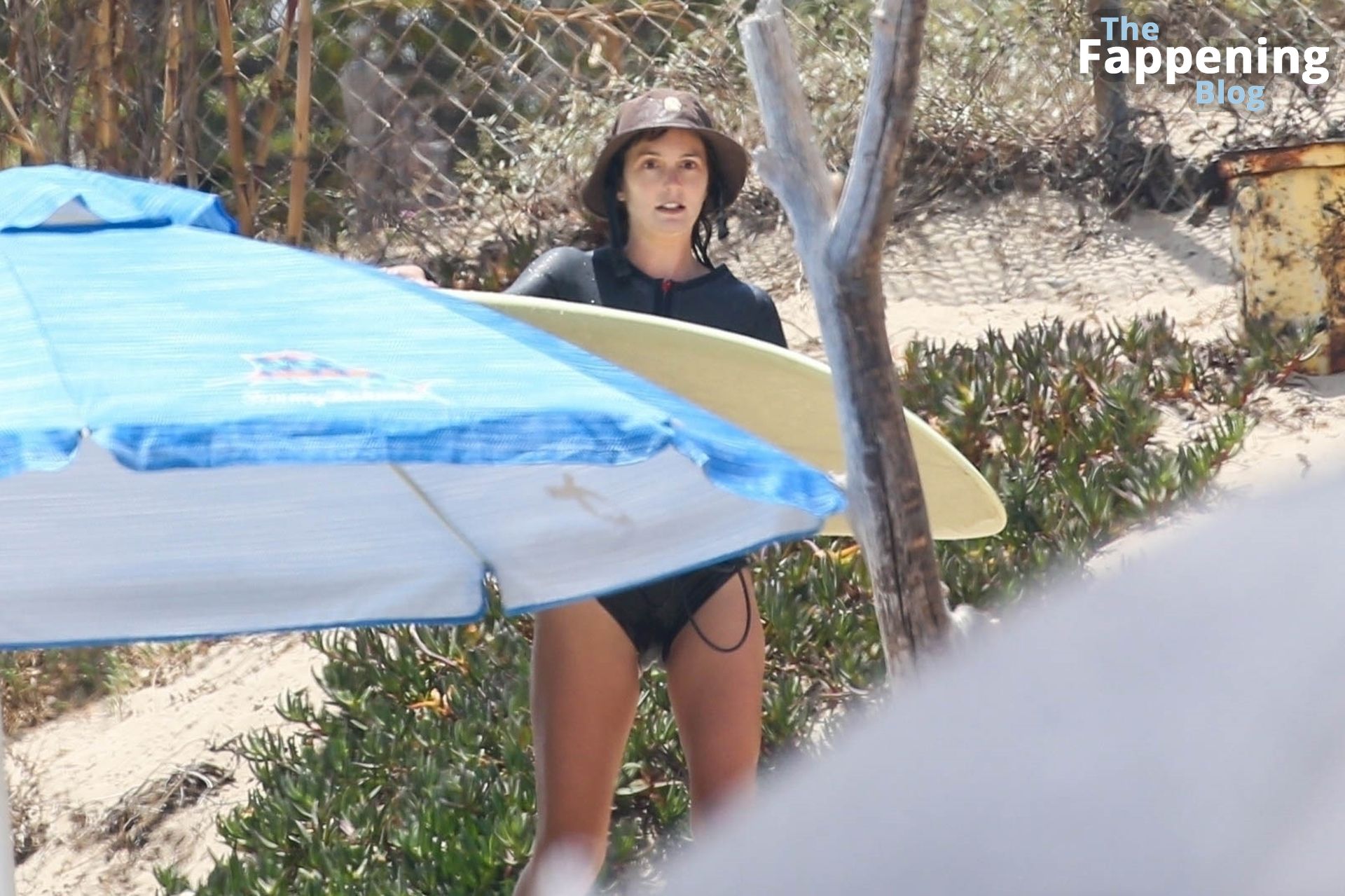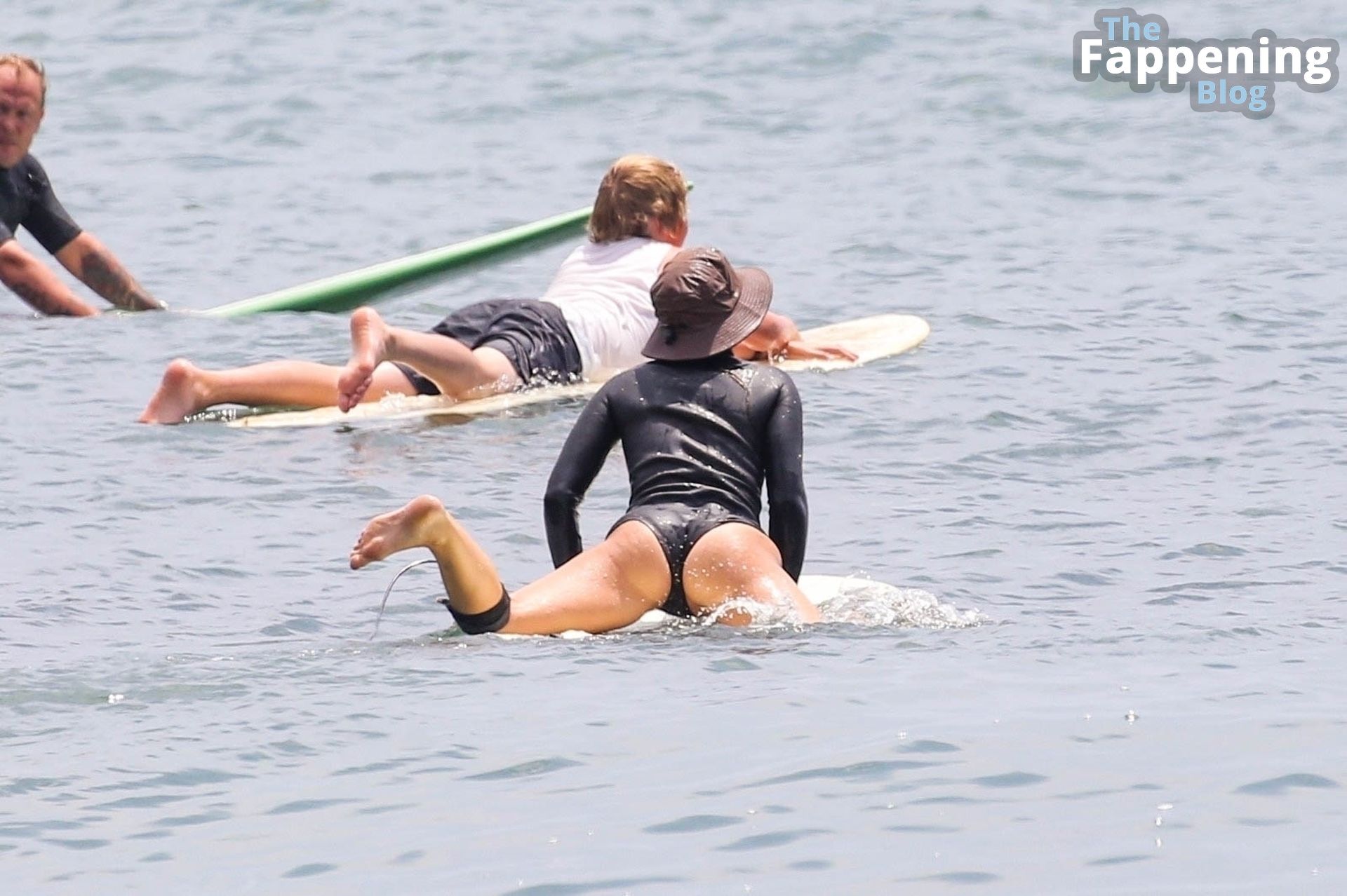 Atriz Leighton Meester, mais conhecida por seu papel na série de TV ‘Gossip Girl’, foi vista mostrando suas habilidades de surfe durante uma sessão solo de ondas no ensolarado Malibu, 12/08/2023.