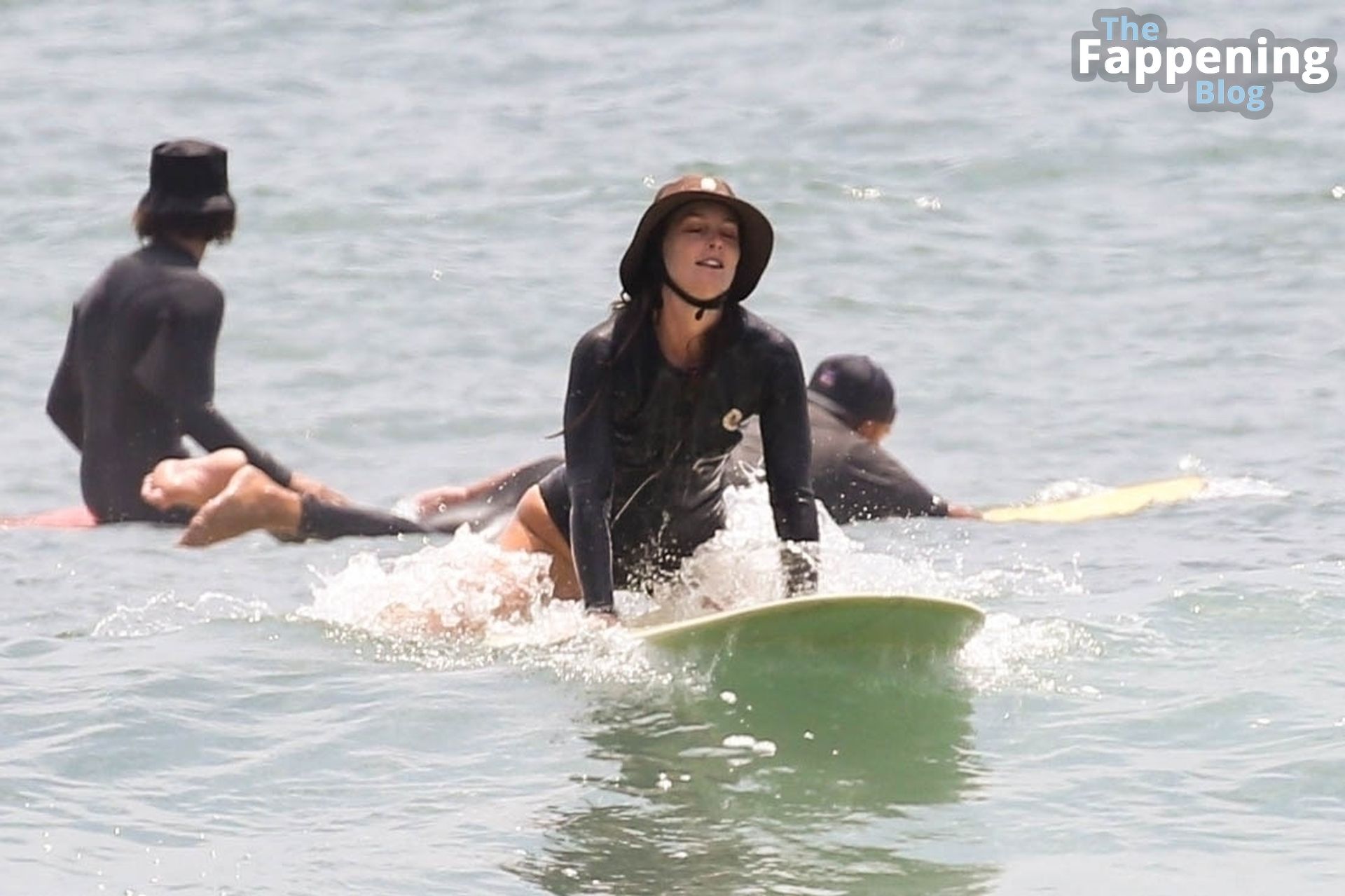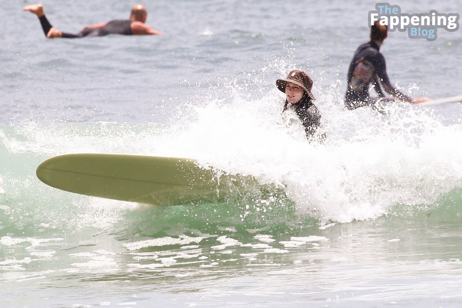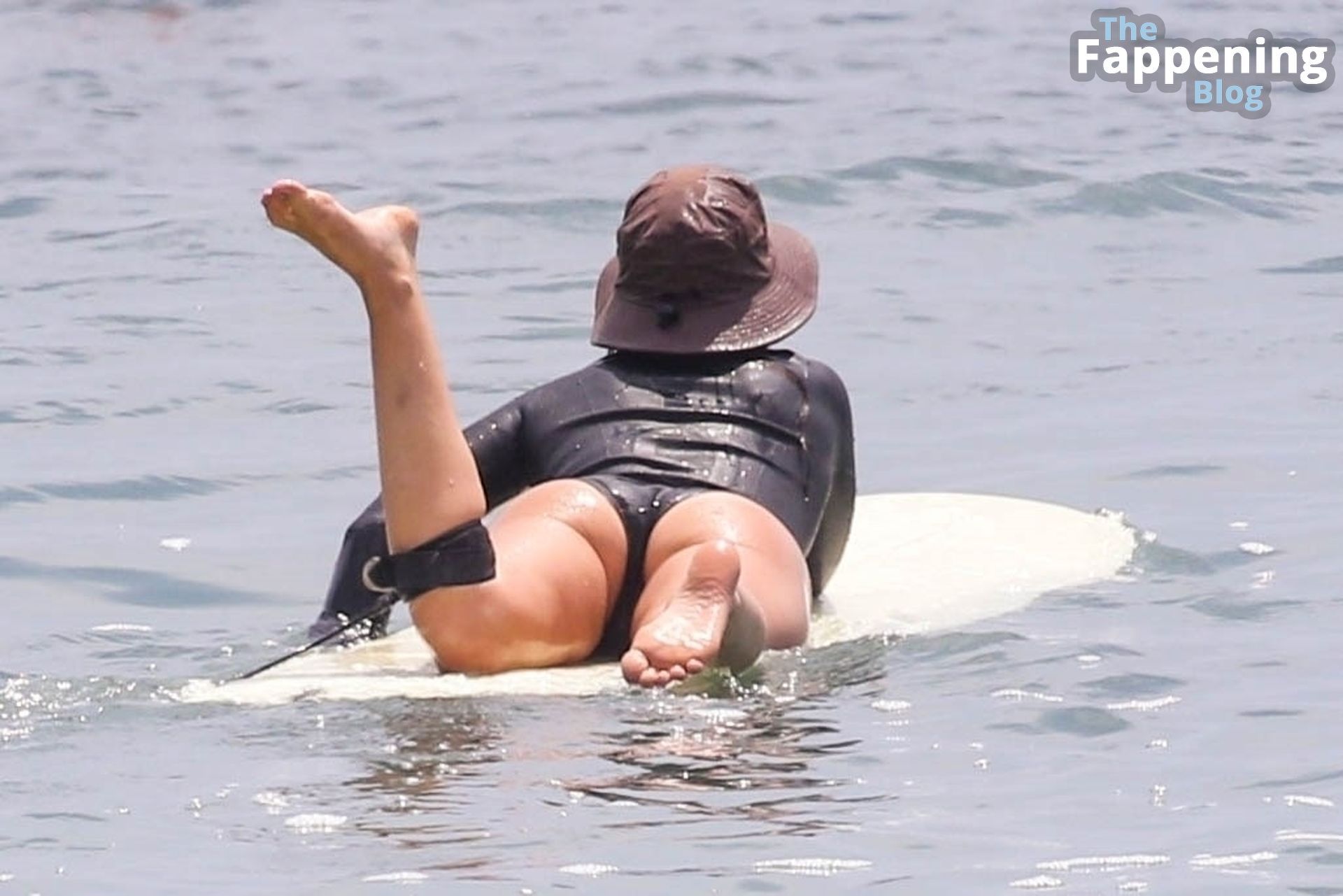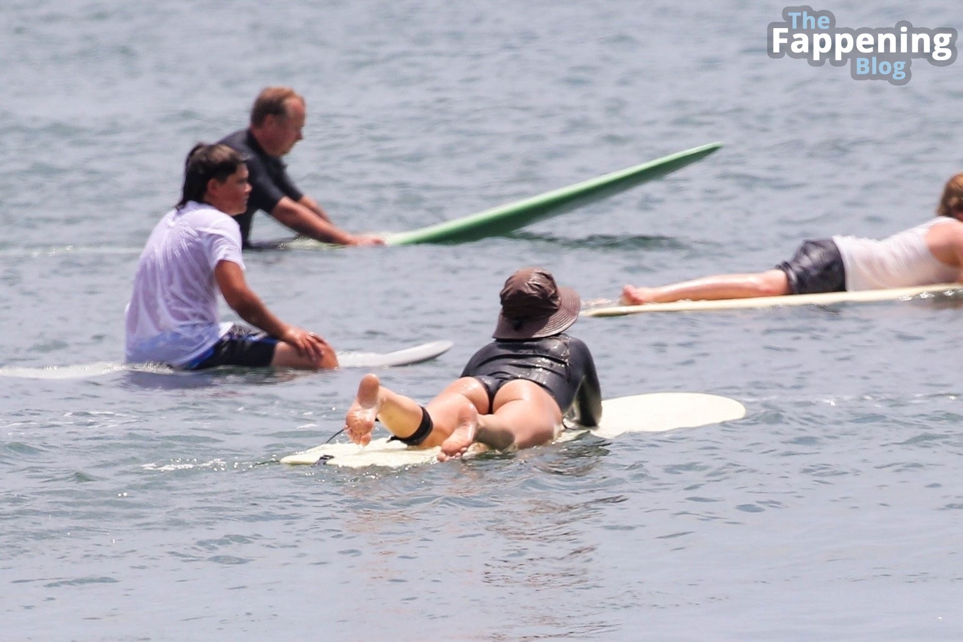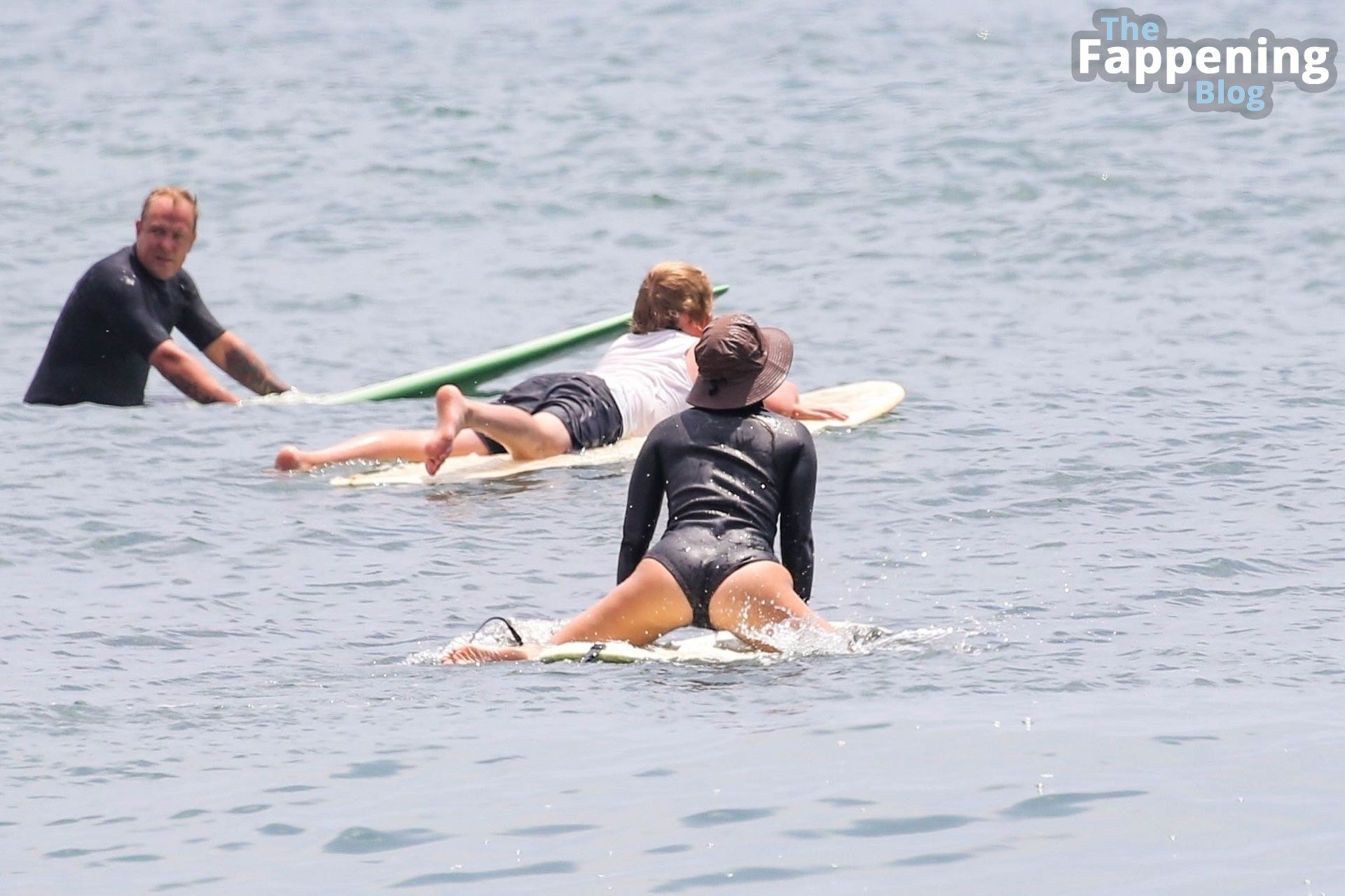 Atriz Leighton Meester, mais conhecida por seu papel na série de TV ‘Gossip Girl’, foi vista mostrando suas habilidades de surfe durante uma sessão solo de ondas no ensolarado Malibu, 12/08/2023.