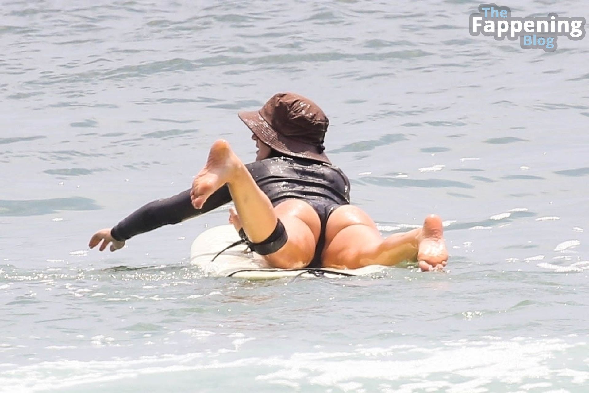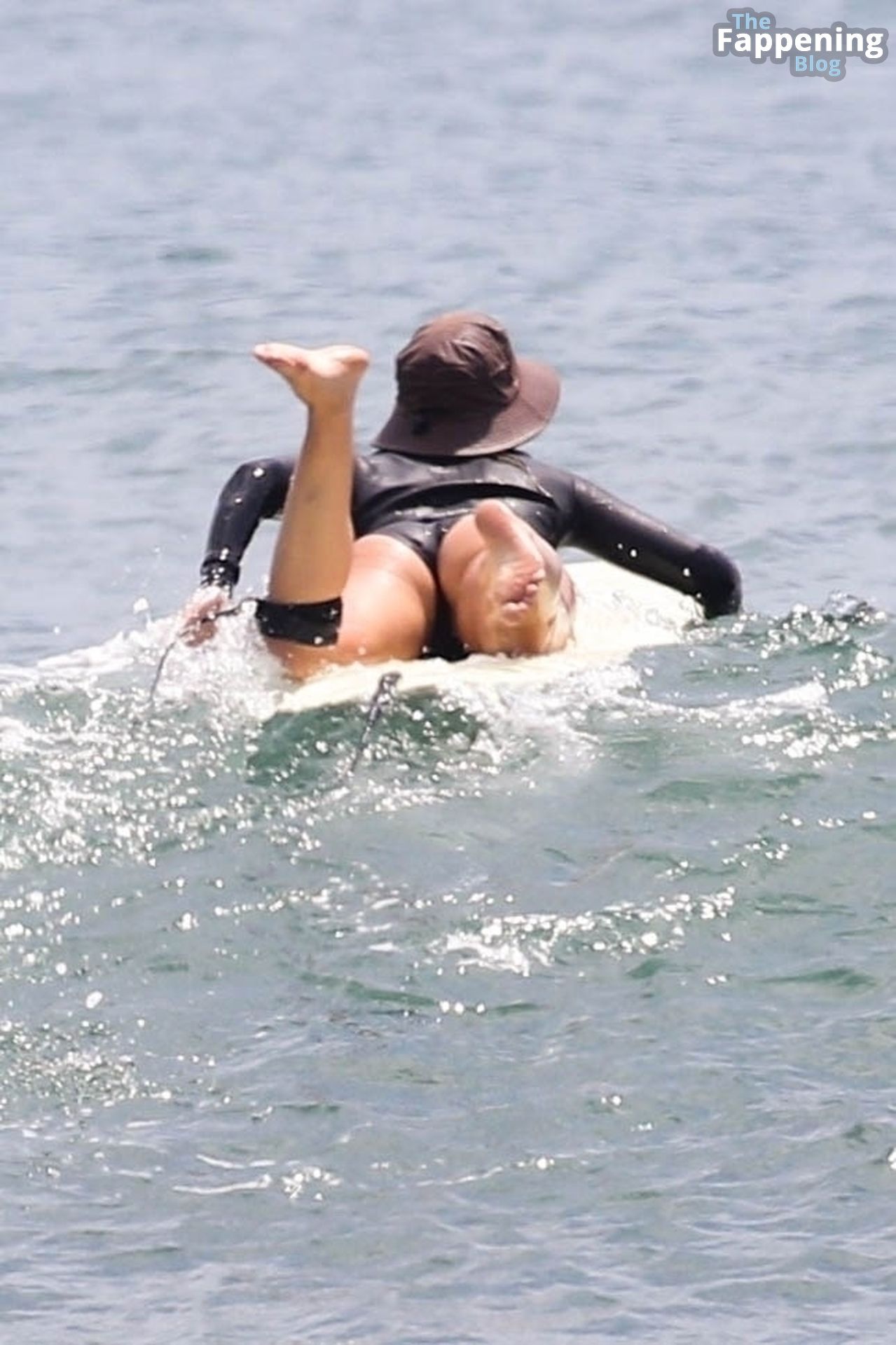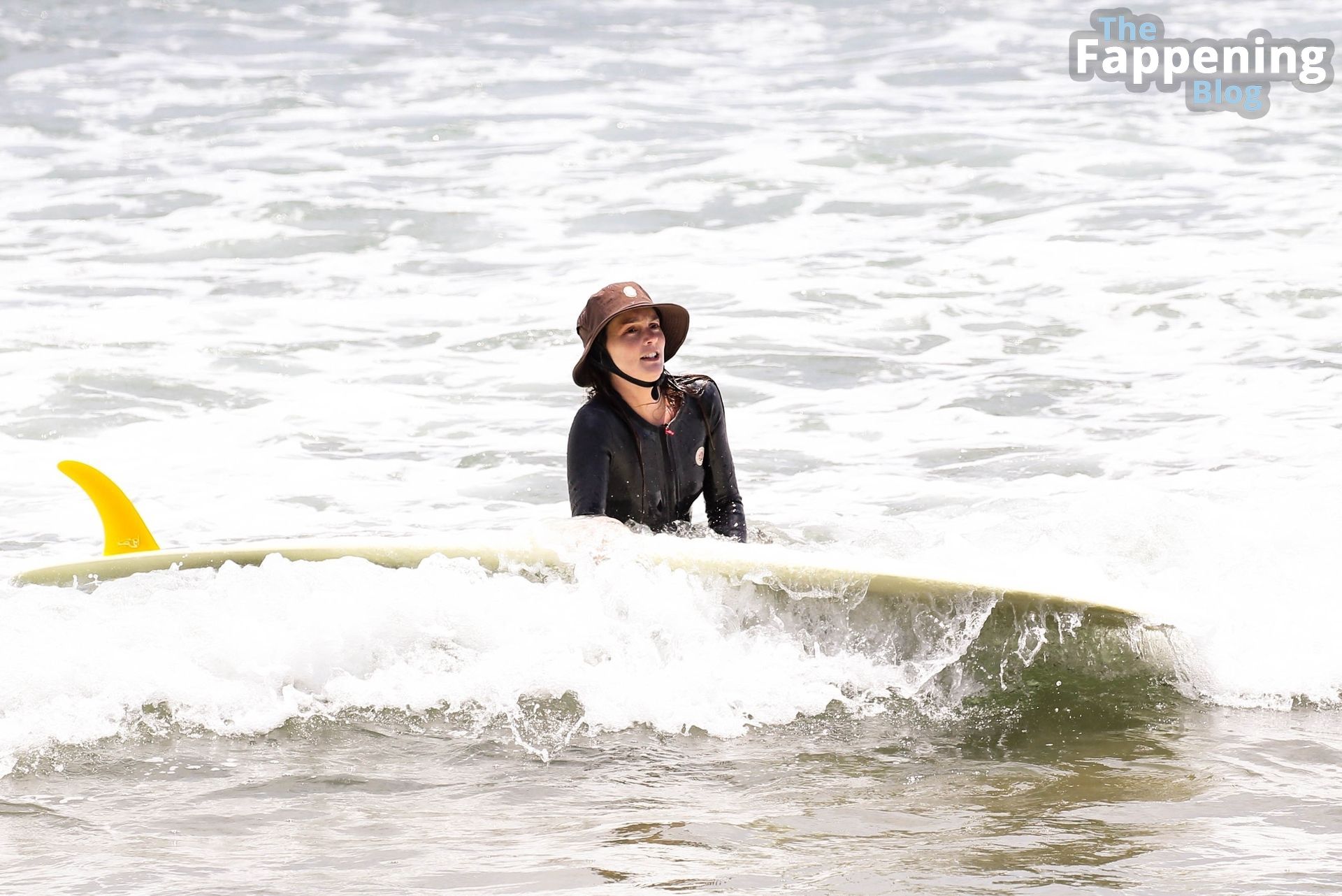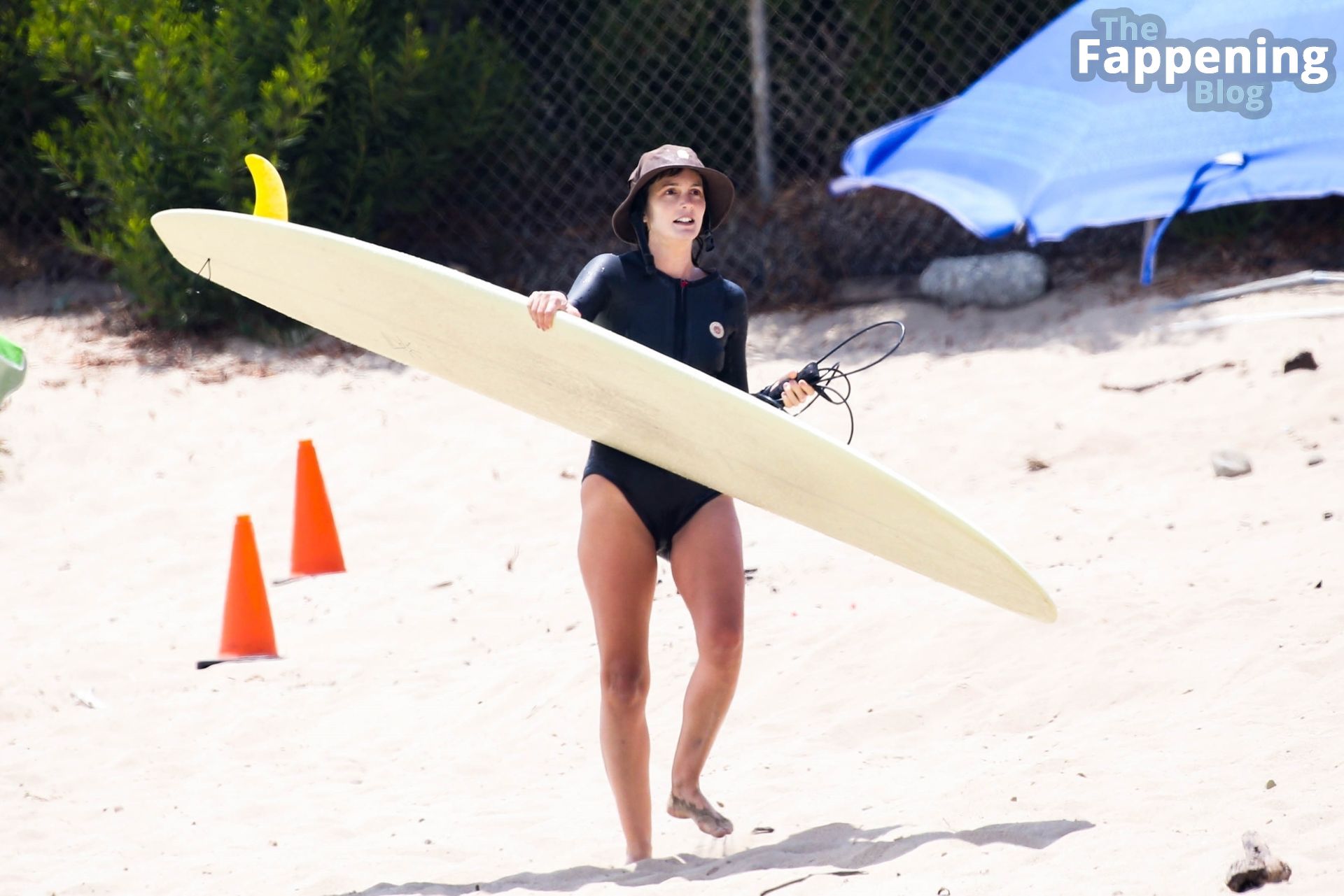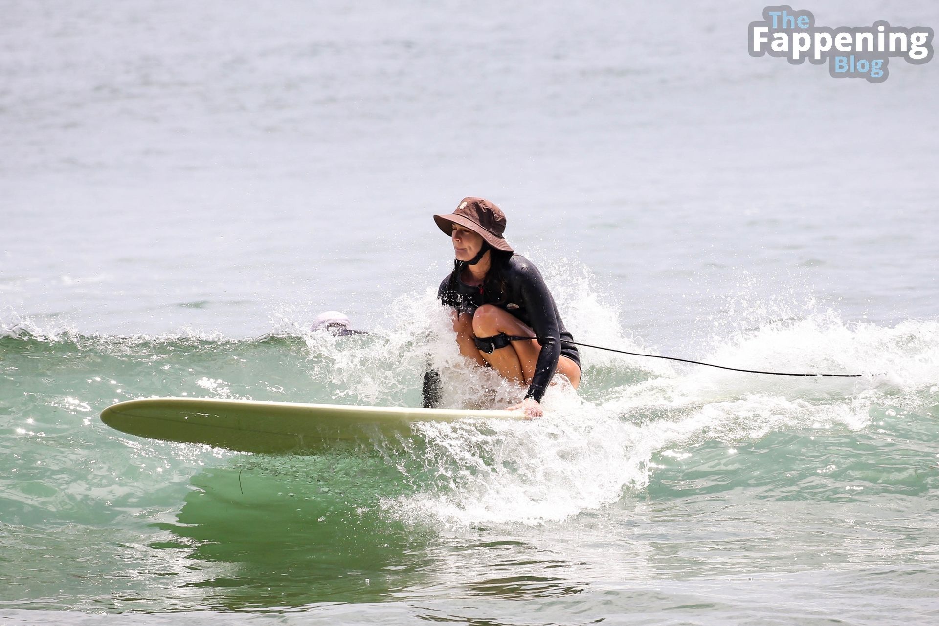 Atriz Leighton Meester, mais conhecida por seu papel na série de TV ‘Gossip Girl’, foi vista mostrando suas habilidades de surfe durante uma sessão solo de ondas no ensolarado Malibu, 12/08/2023.