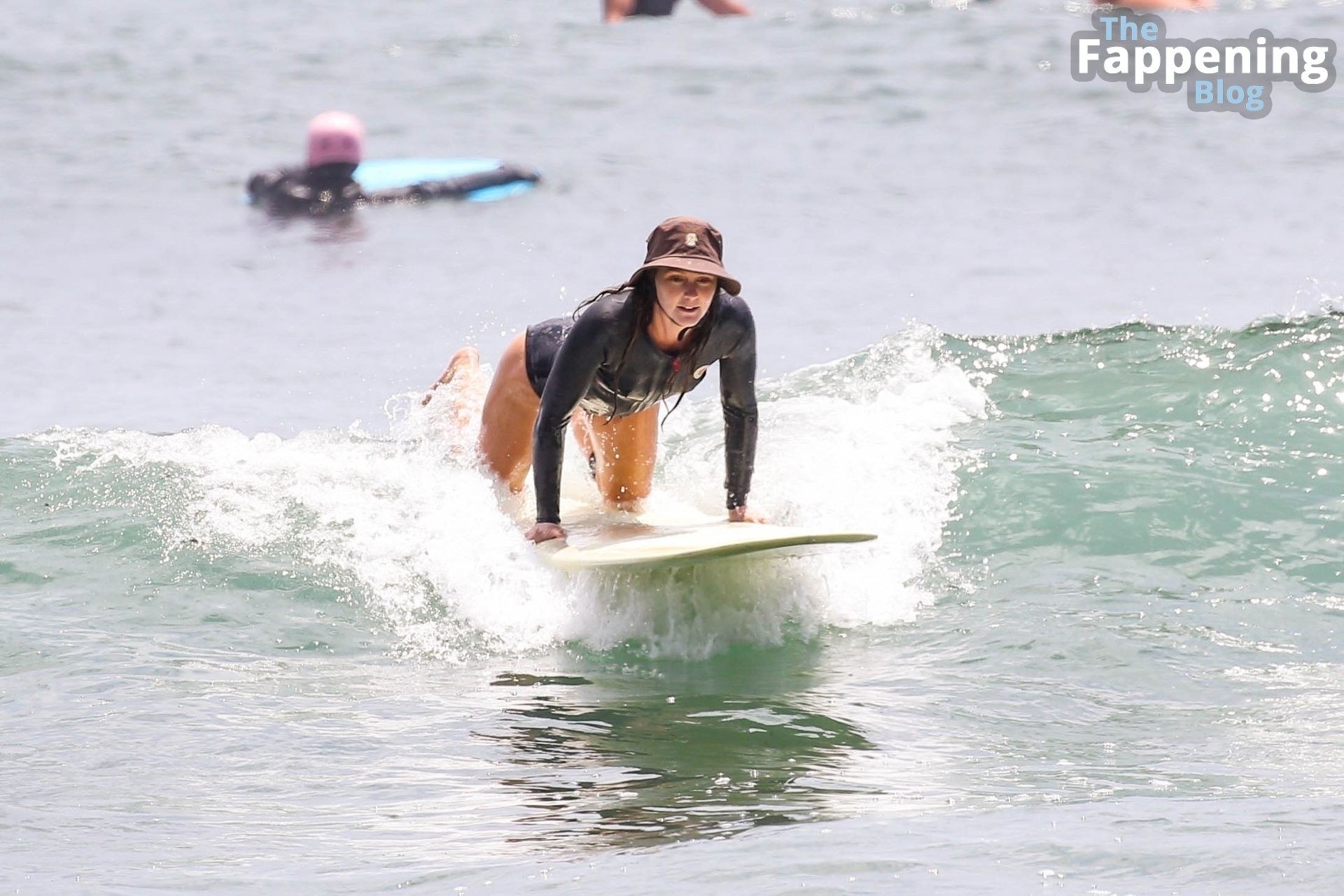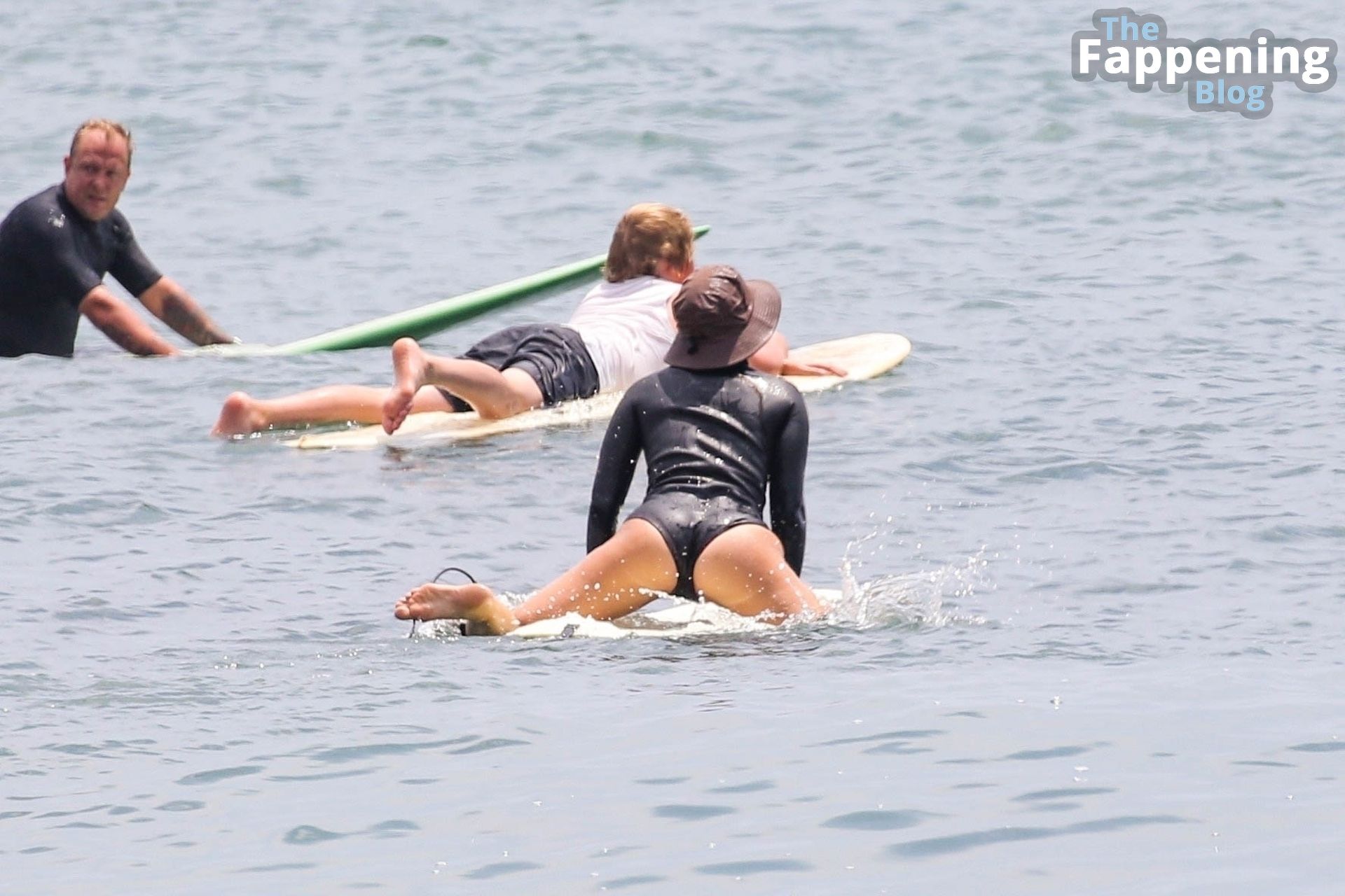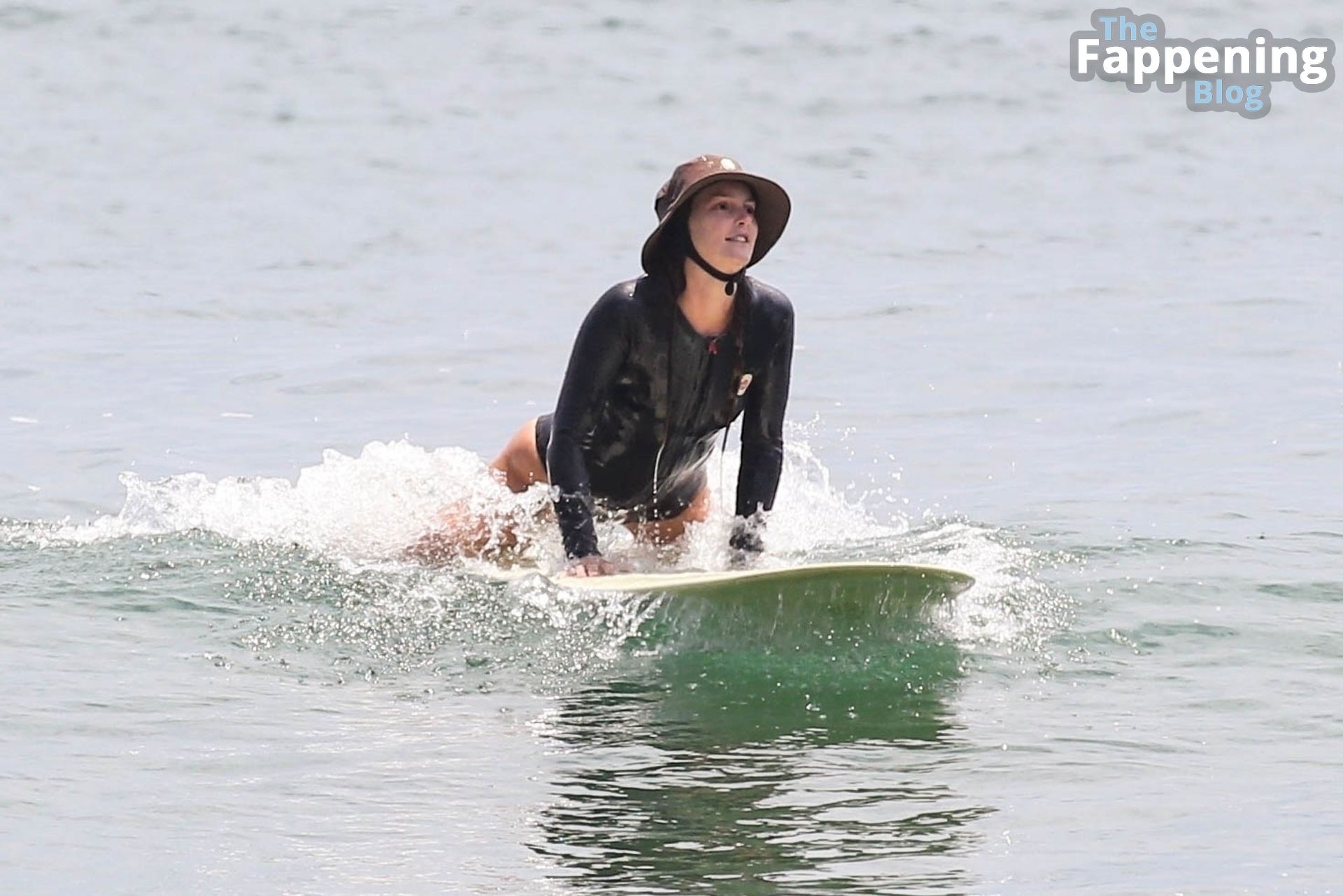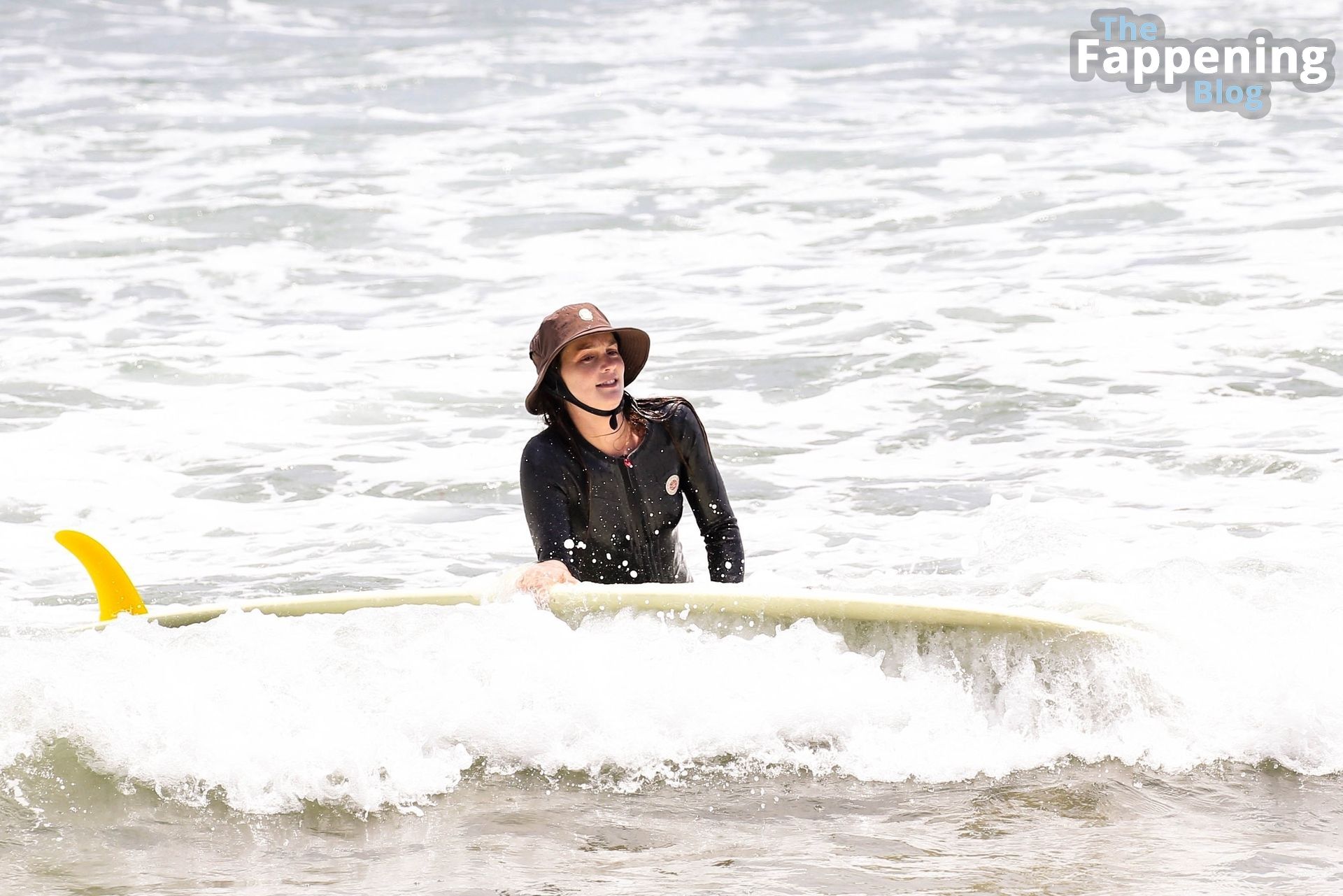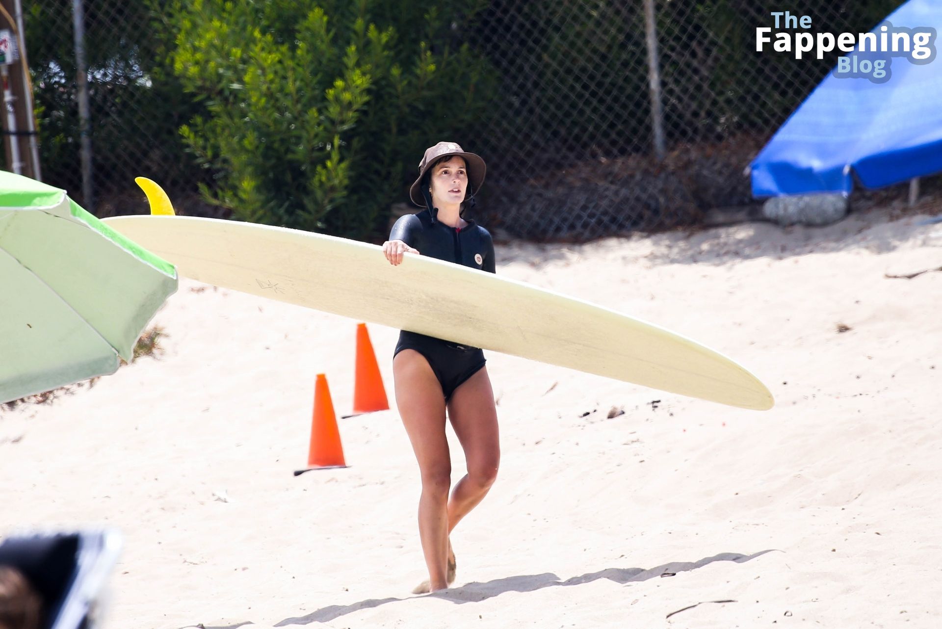 Atriz Leighton Meester, mais conhecida por seu papel na série de TV ‘Gossip Girl’, foi vista mostrando suas habilidades de surfe durante uma sessão solo de ondas no ensolarado Malibu, 12/08/2023.