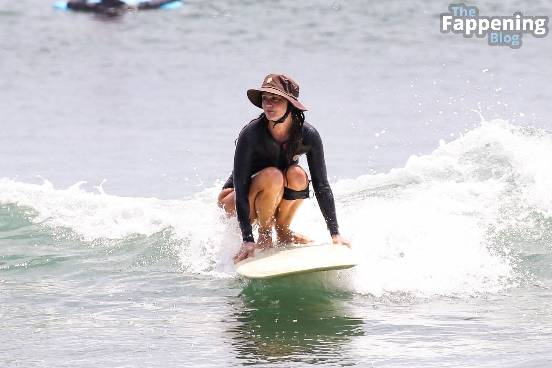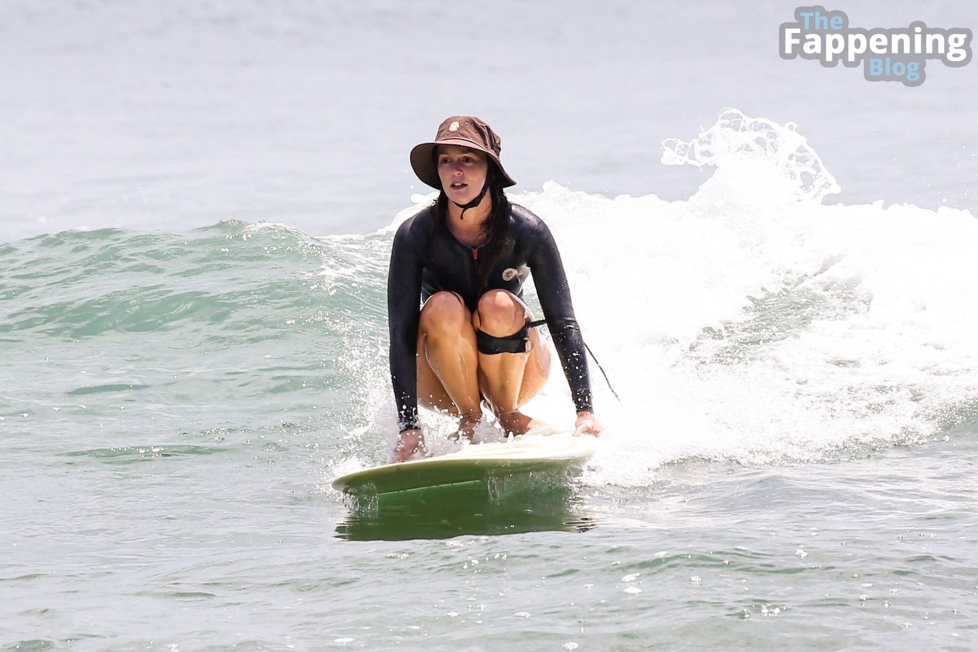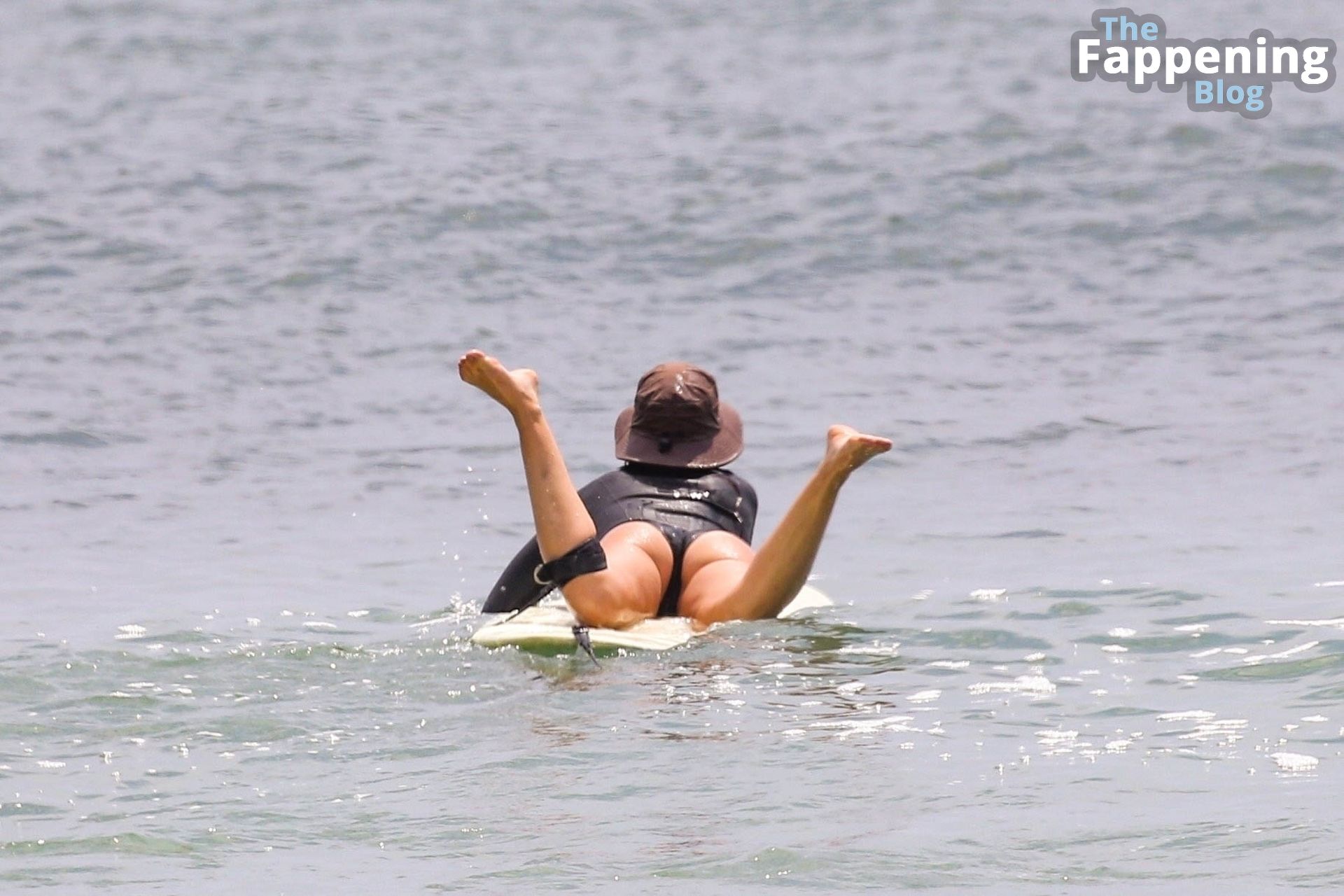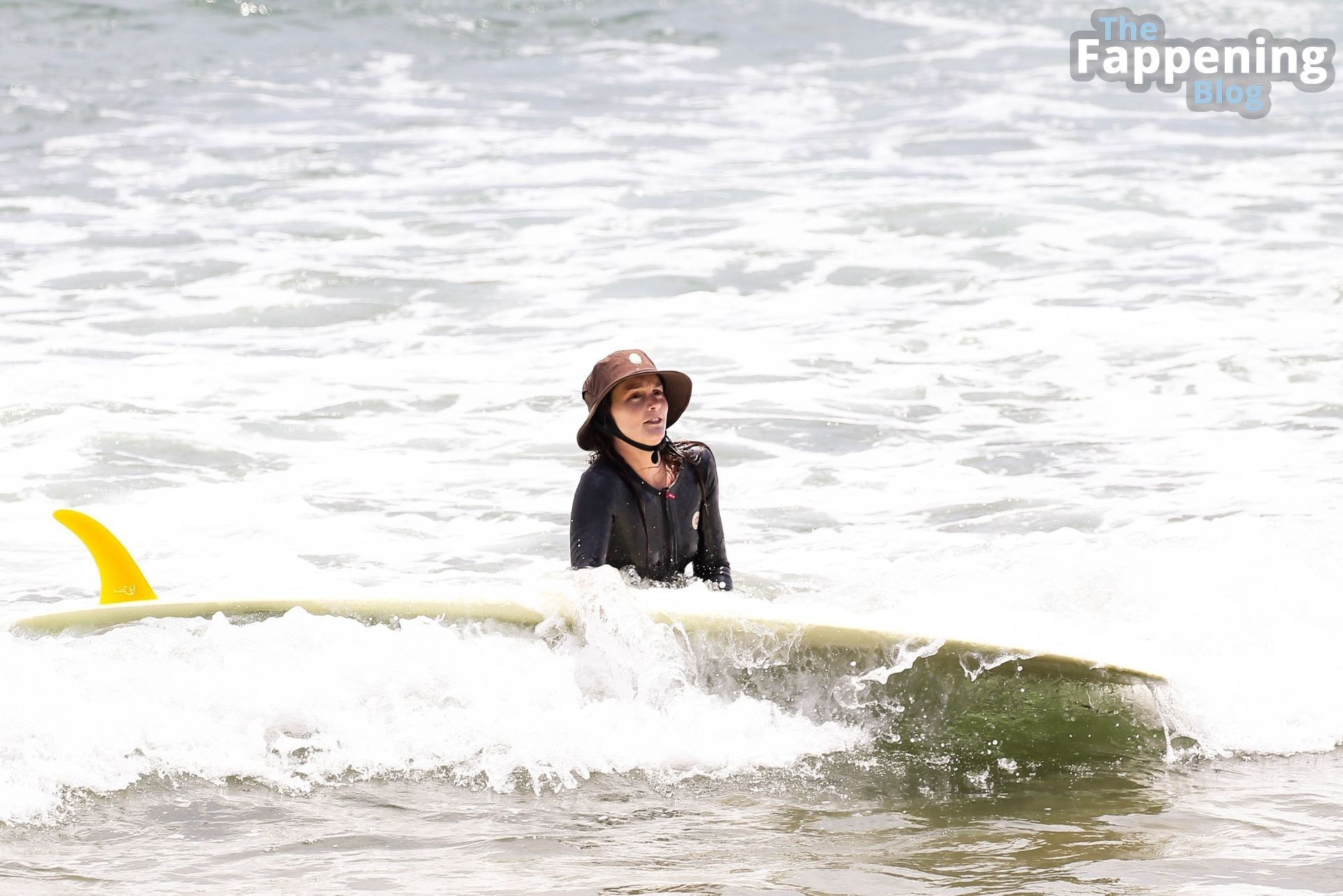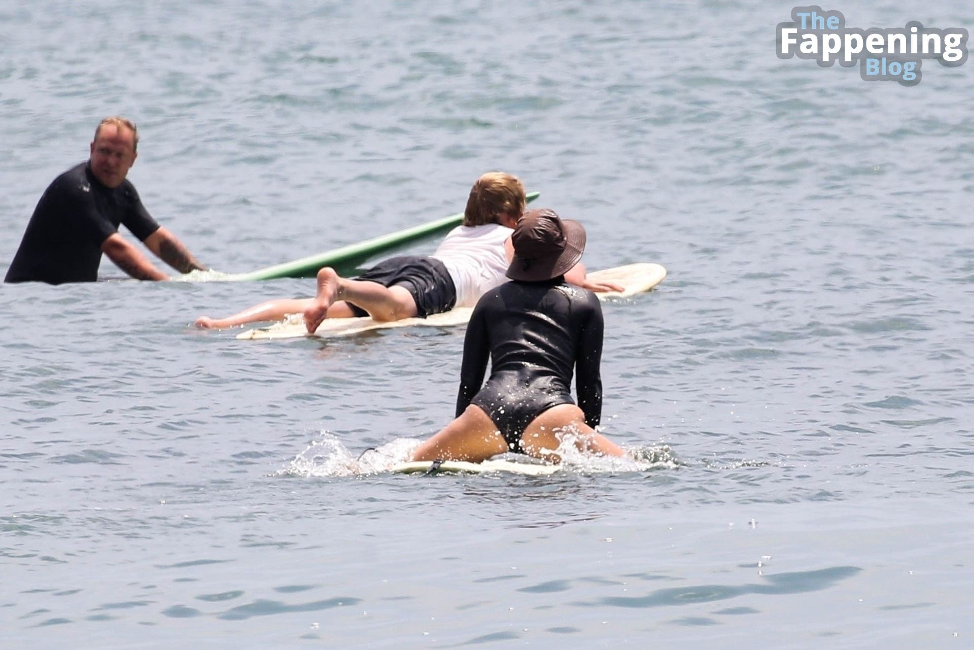 Atriz Leighton Meester, mais conhecida por seu papel na série de TV ‘Gossip Girl’, foi vista mostrando suas habilidades de surfe durante uma sessão solo de ondas no ensolarado Malibu, 12/08/2023.