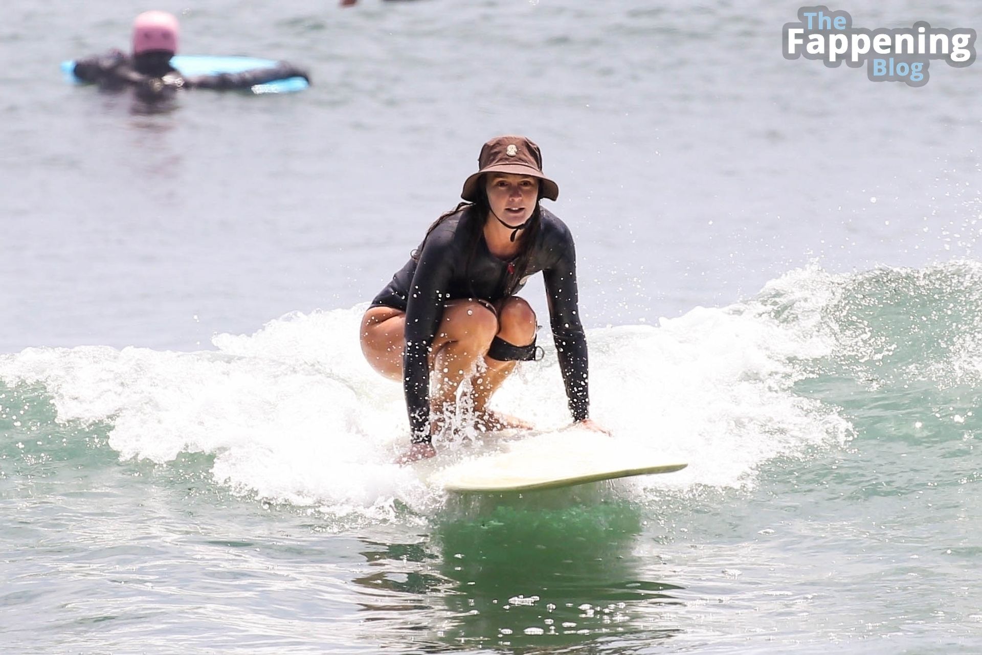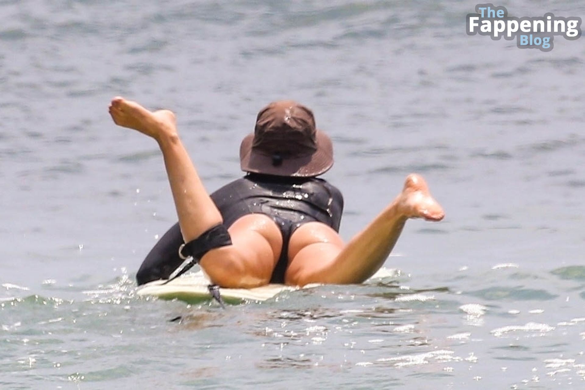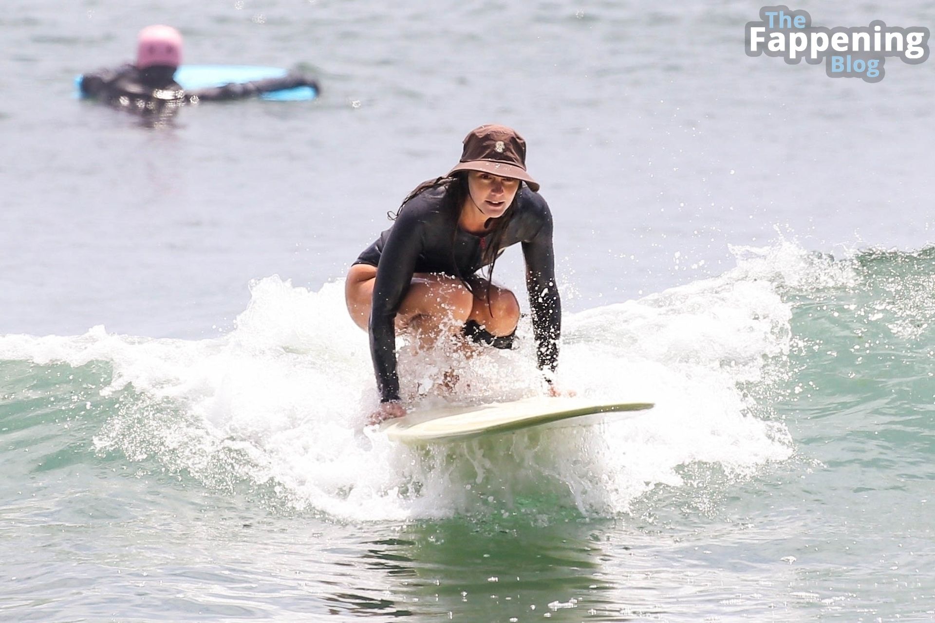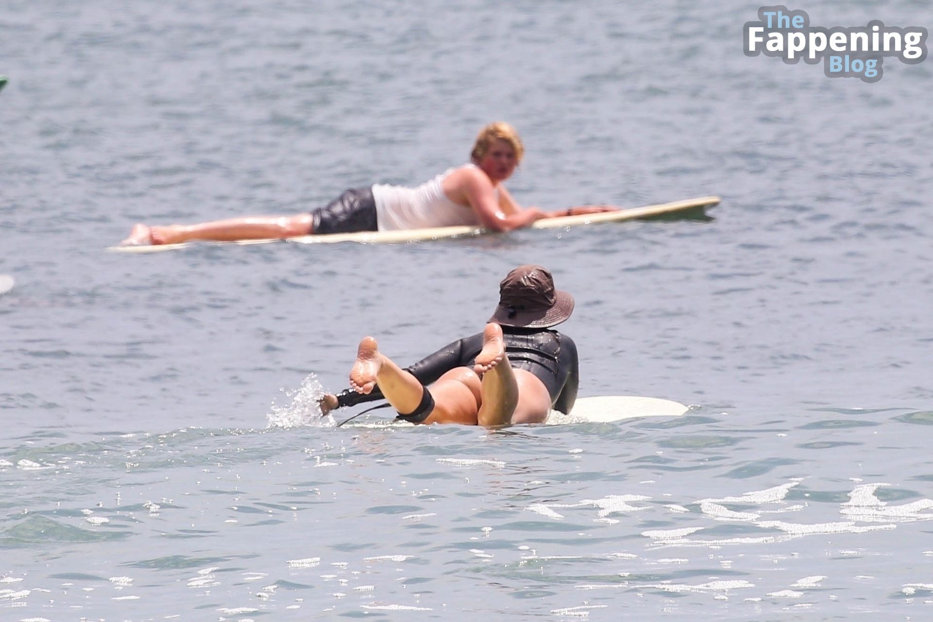 Atriz Leighton Meester, mais conhecida por seu papel na série de TV ‘Gossip Girl’, foi vista mostrando suas habilidades de surfe durante uma sessão solo de ondas no ensolarado Malibu, 12/08/2023.