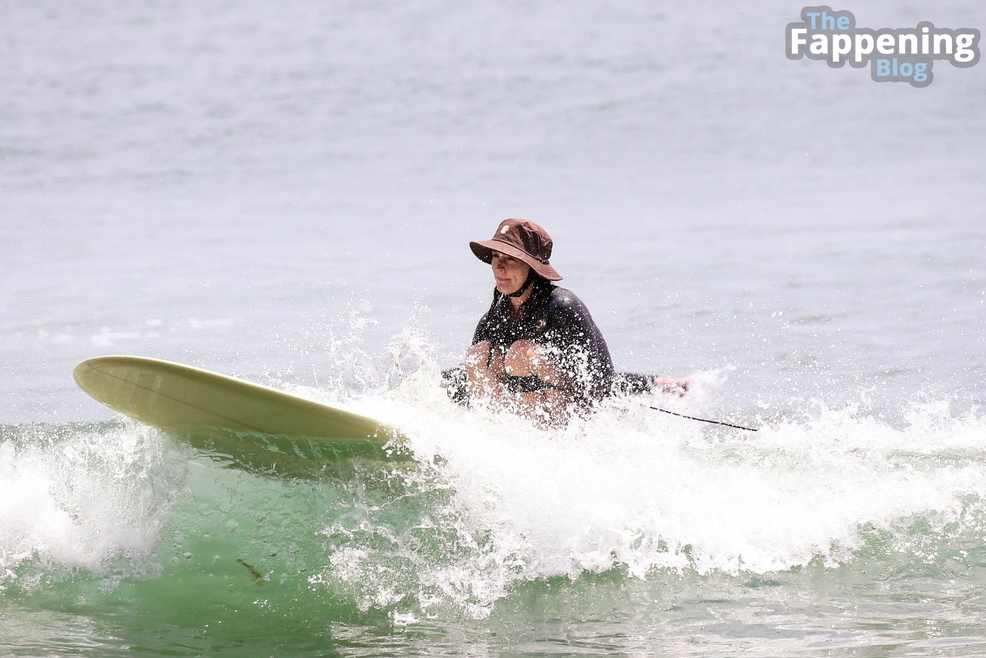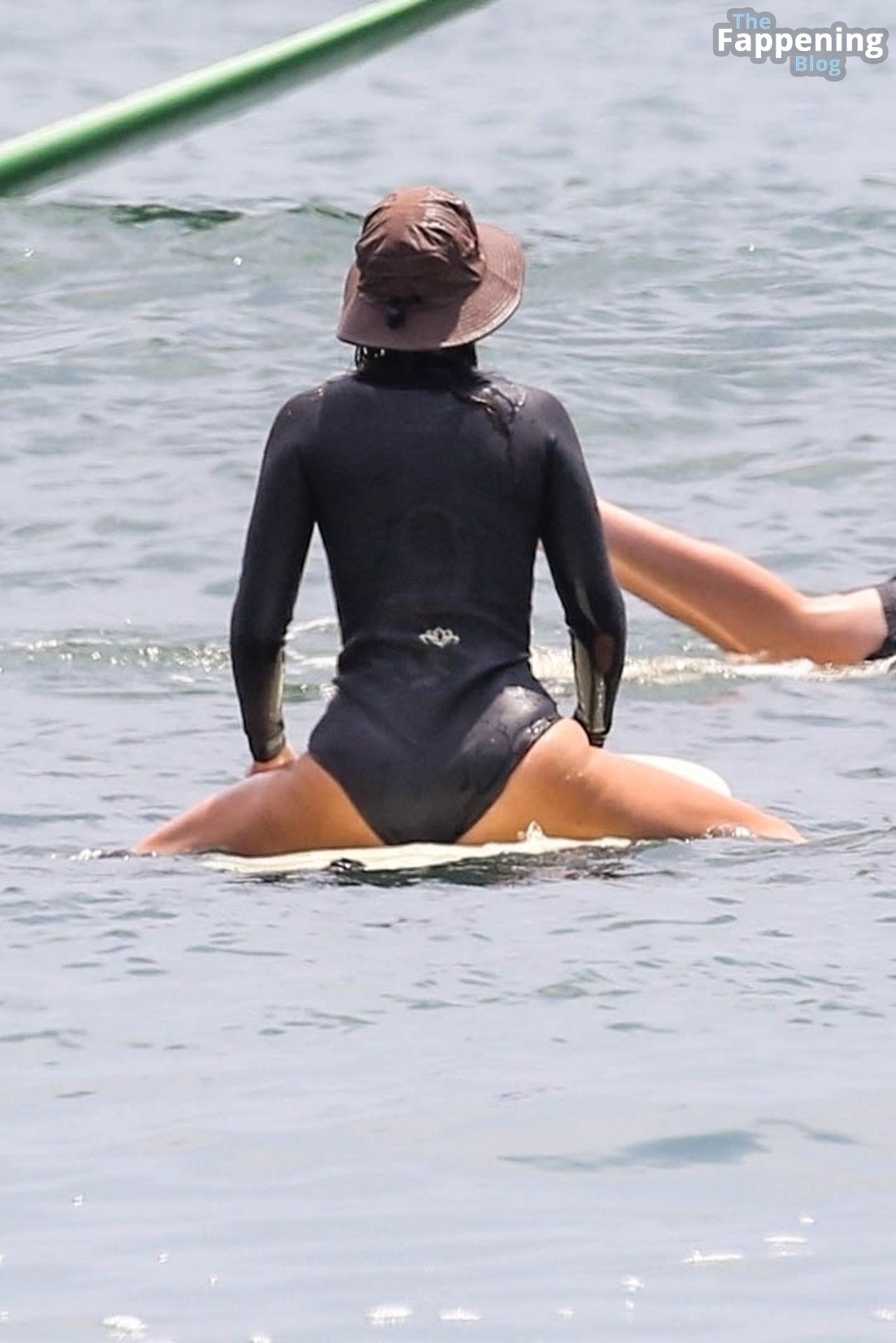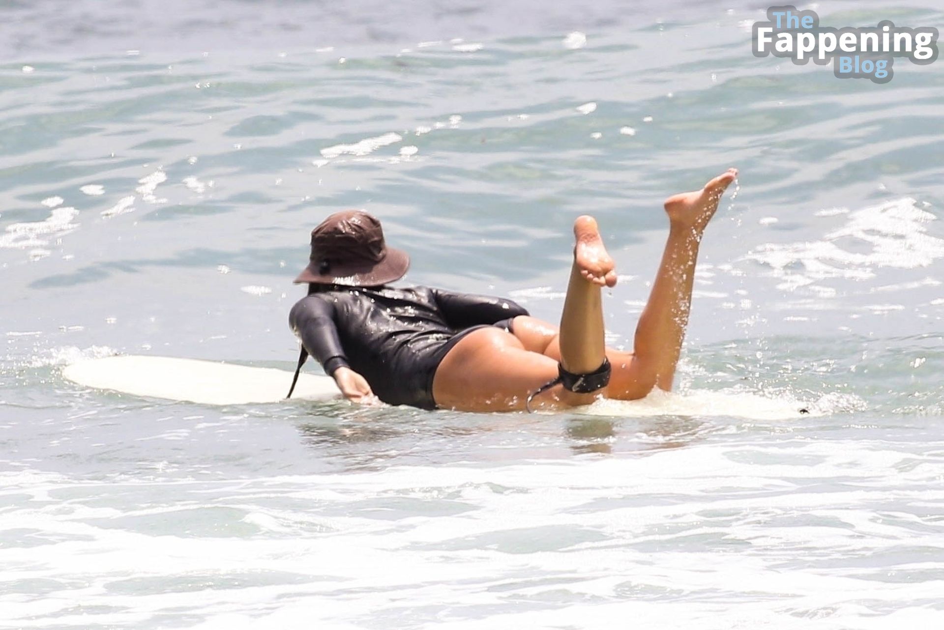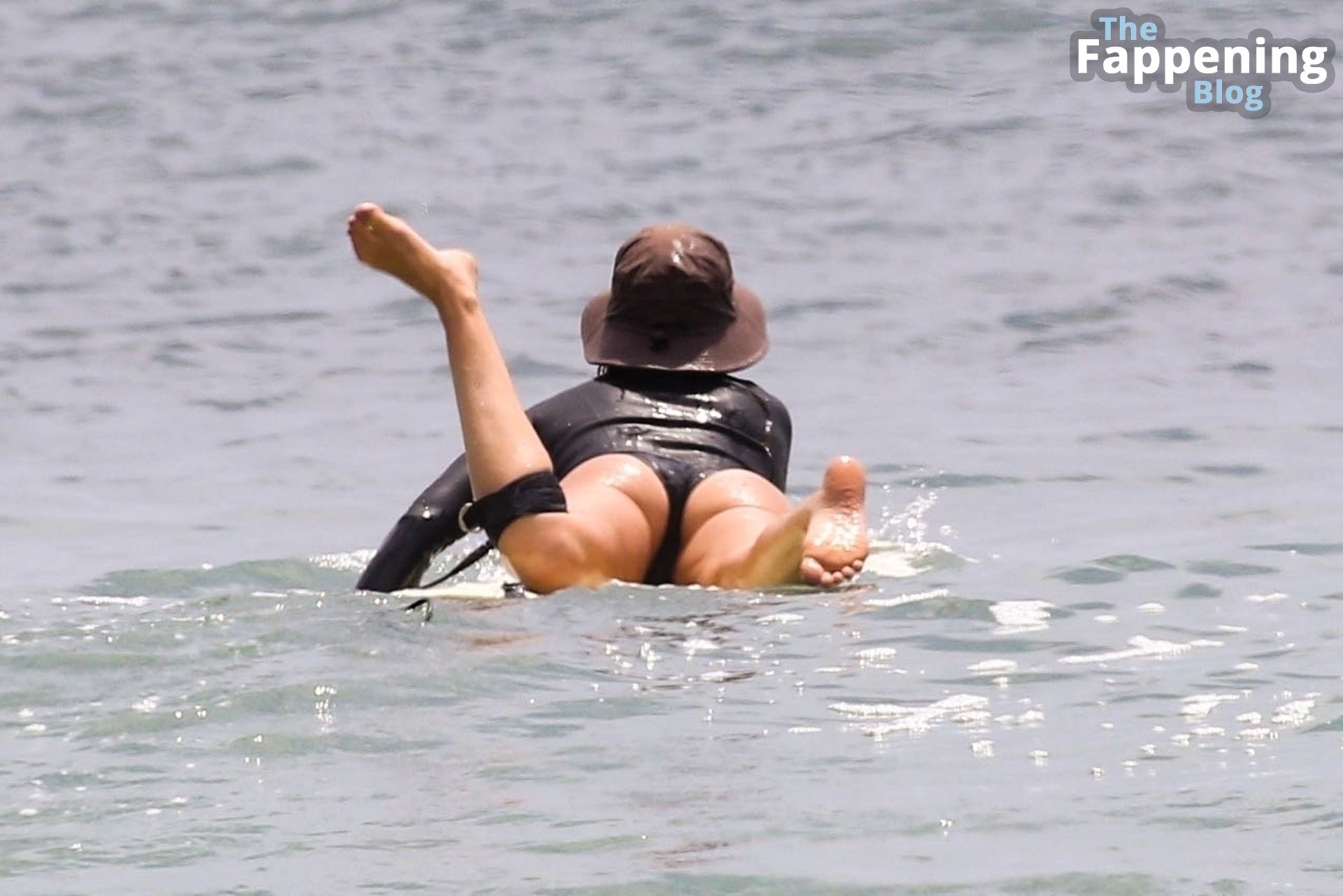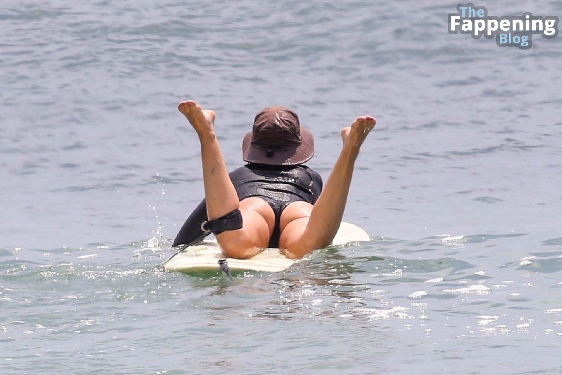 Atriz Leighton Meester, mais conhecida por seu papel na série de TV ‘Gossip Girl’, foi vista mostrando suas habilidades de surfe durante uma sessão solo de ondas no ensolarado Malibu, 12/08/2023.