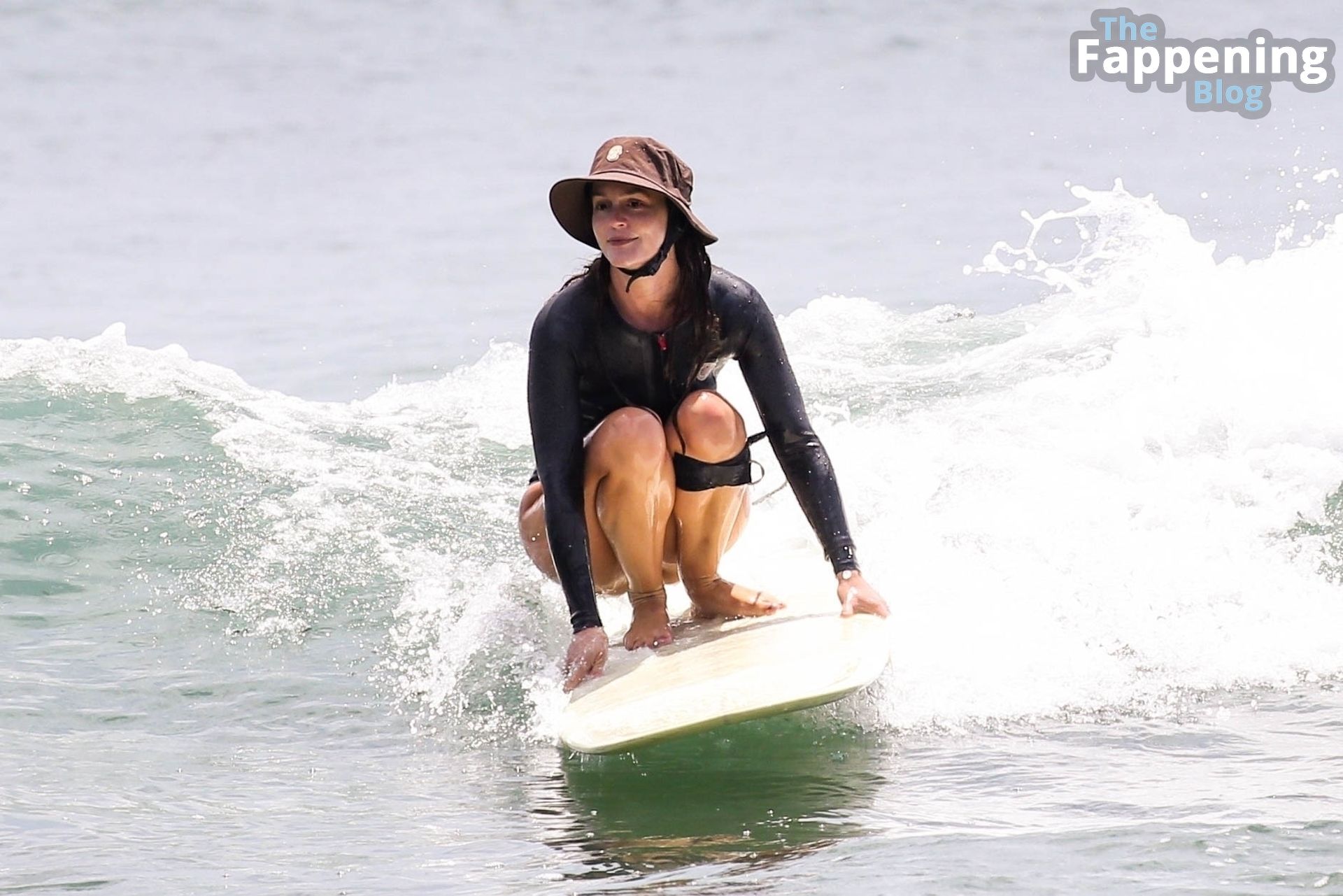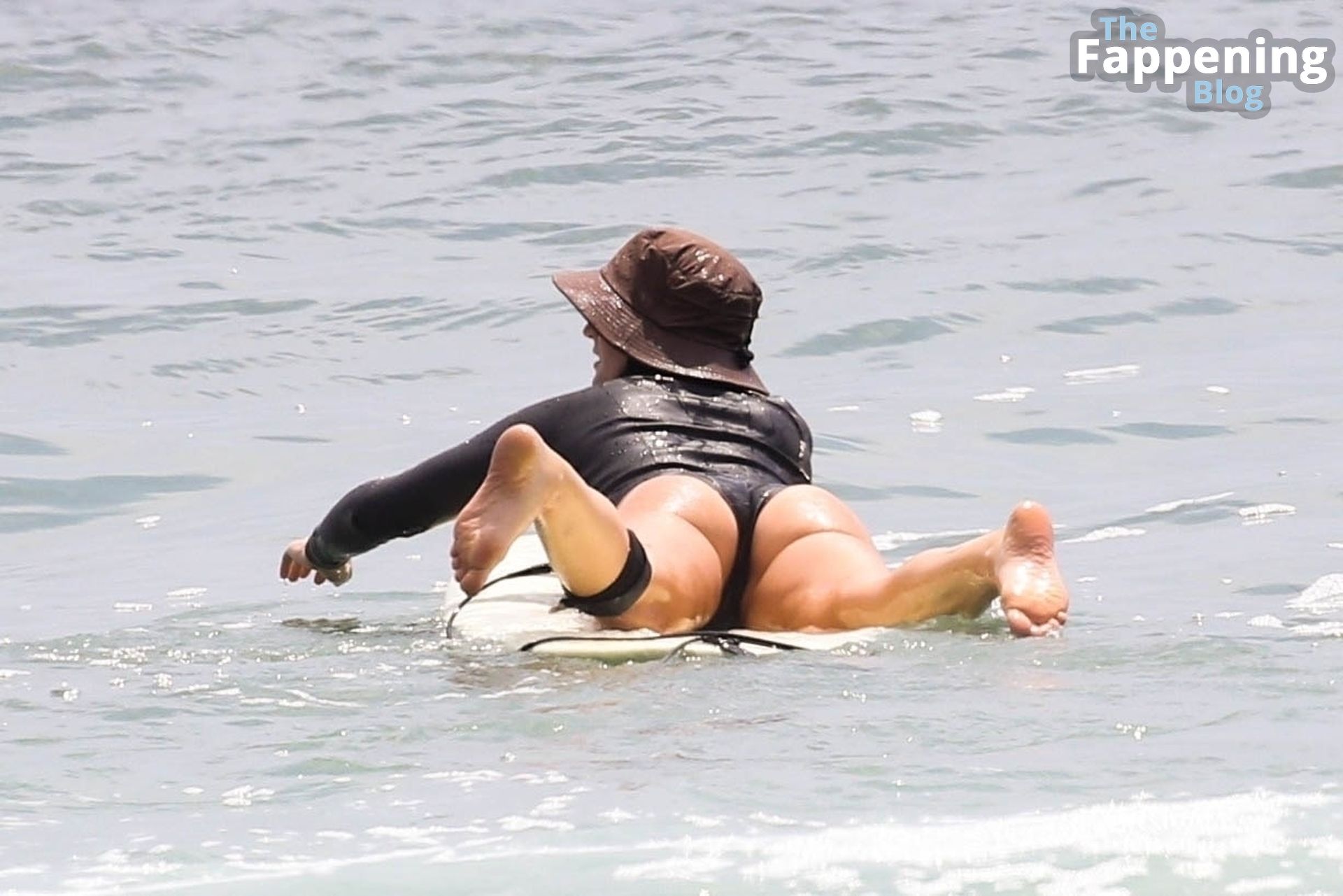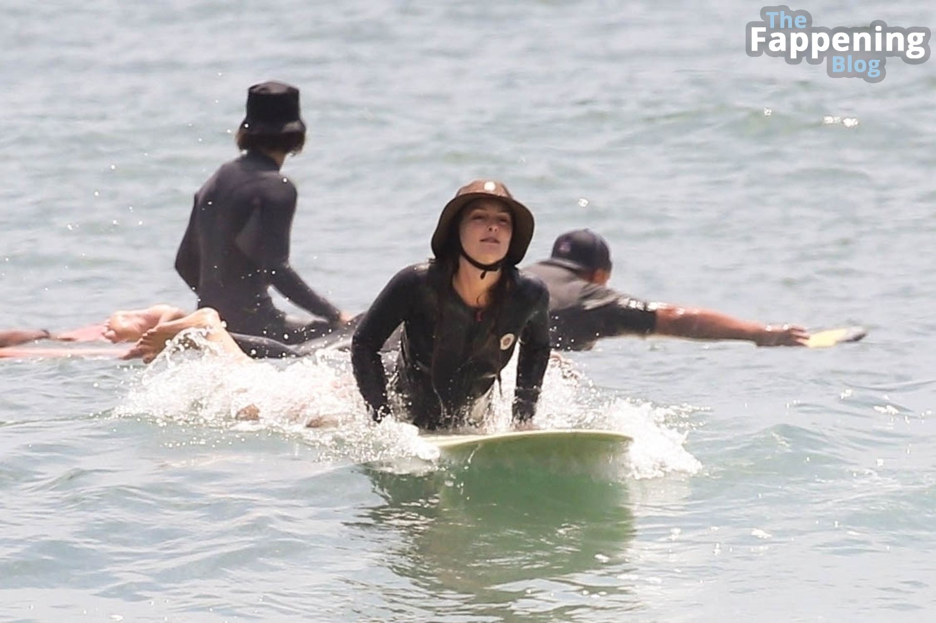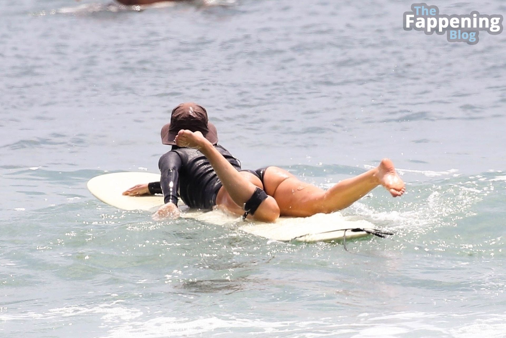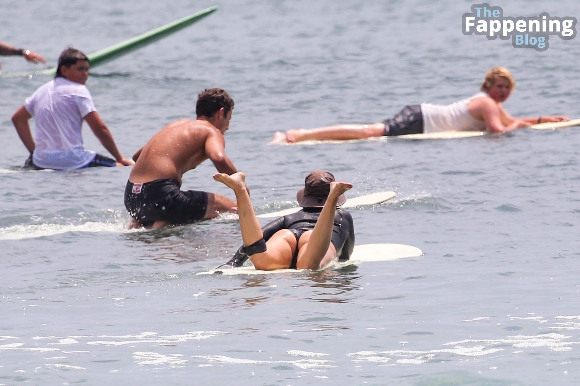 Atriz Leighton Meester, mais conhecida por seu papel na série de TV ‘Gossip Girl’, foi vista mostrando suas habilidades de surfe durante uma sessão solo de ondas no ensolarado Malibu, 12/08/2023.