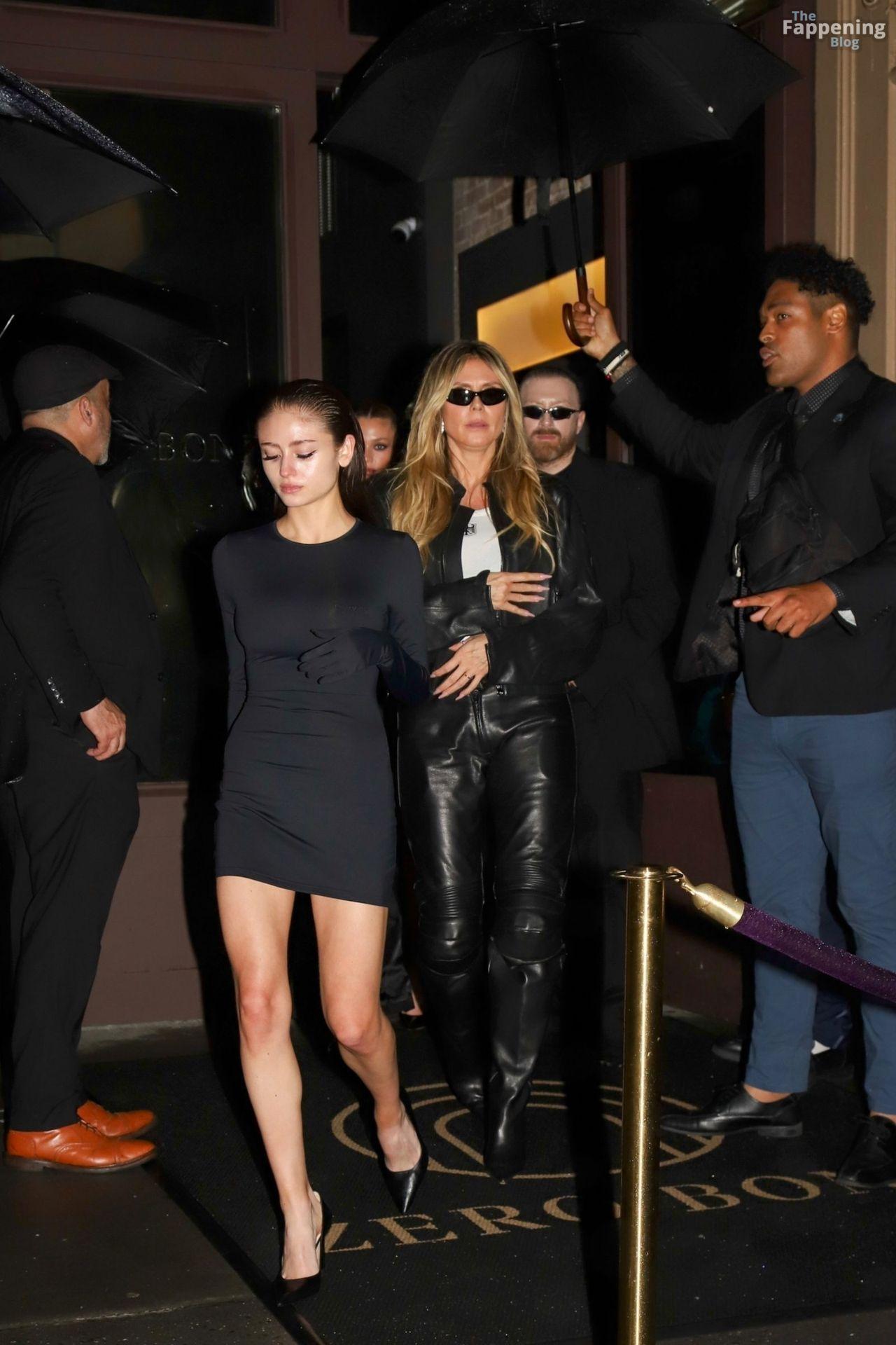 Leni Klum foi fotografada com sua mãe na festa Stella McCartney x Tilbury Met Gala, arrasando em um mini vestido preto, exibindo seus seios sensuais e pernas tonificadas.