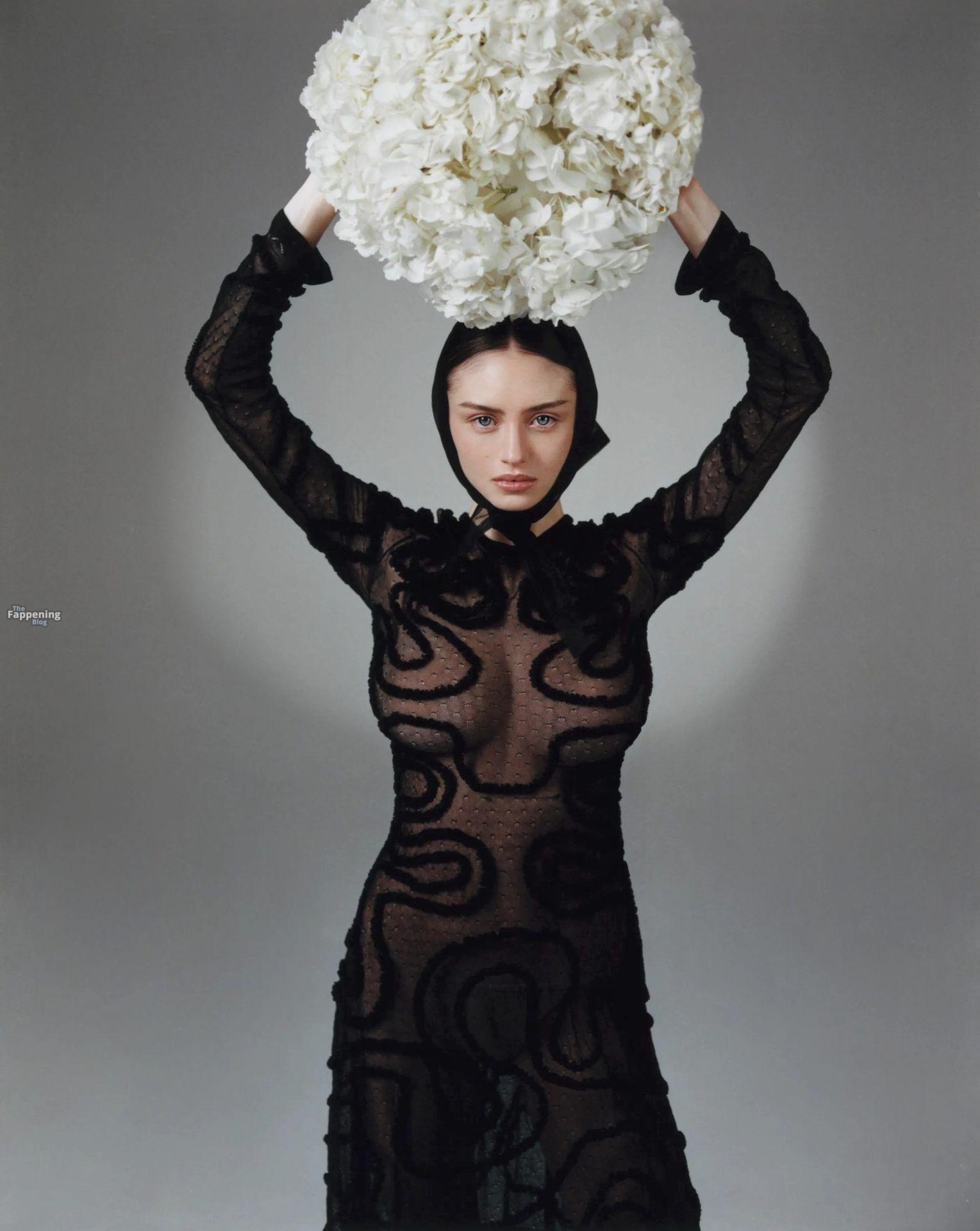 Modelo americana Leni Olumi Klum praticamente nua em seu mais recente ensaio transparente e sexy, exibindo seus seios naturais grandes para a Glamour Alemanha.