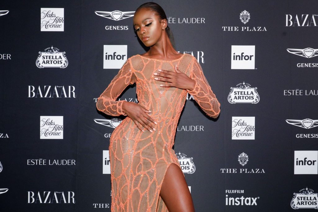Leomie Anderson participa da festa Harper’s BAZAAR ICONS no The Plaza Hotel em Nova York, 07/09/2018. Leomie Anderson é uma modelo e designer britânica de 25 anos. Em 2015, ela foi escolhida como modelo para o Victoria’s Secret Fashion Show. Em 2016, ela fundou sua marca de roupas chamada LAPP.