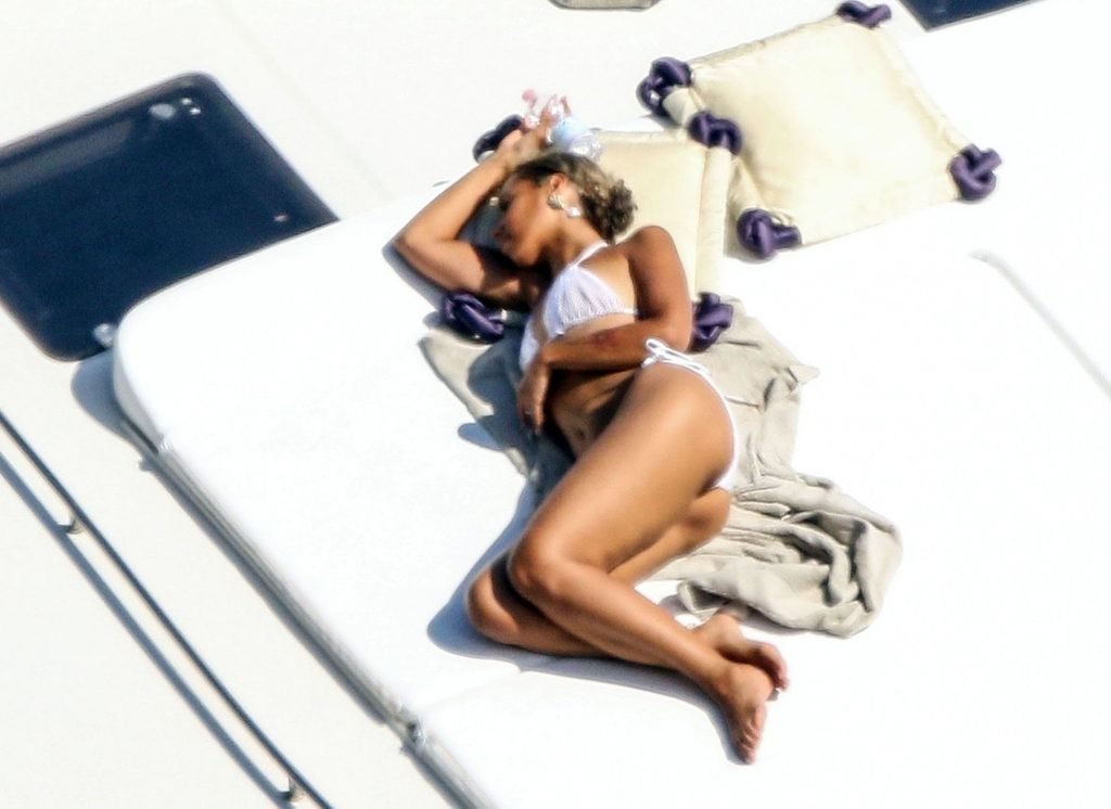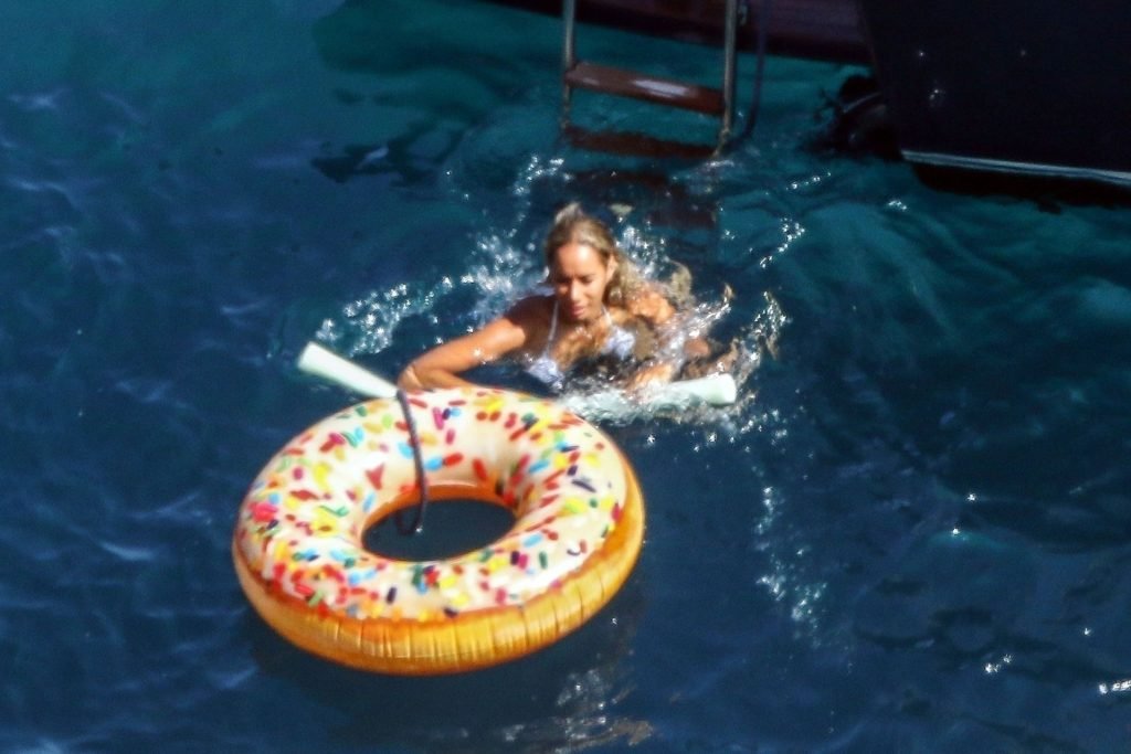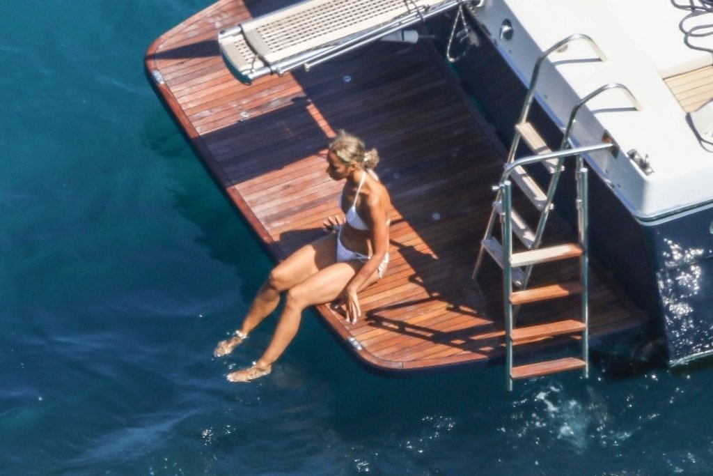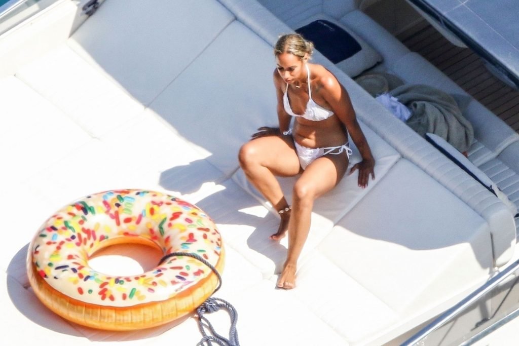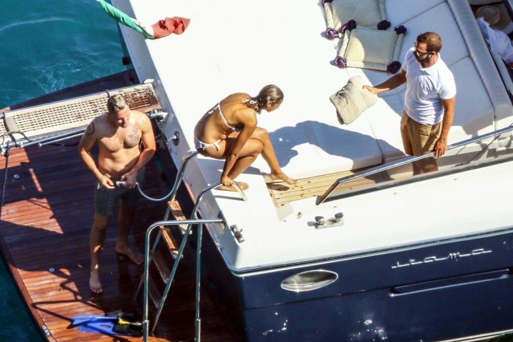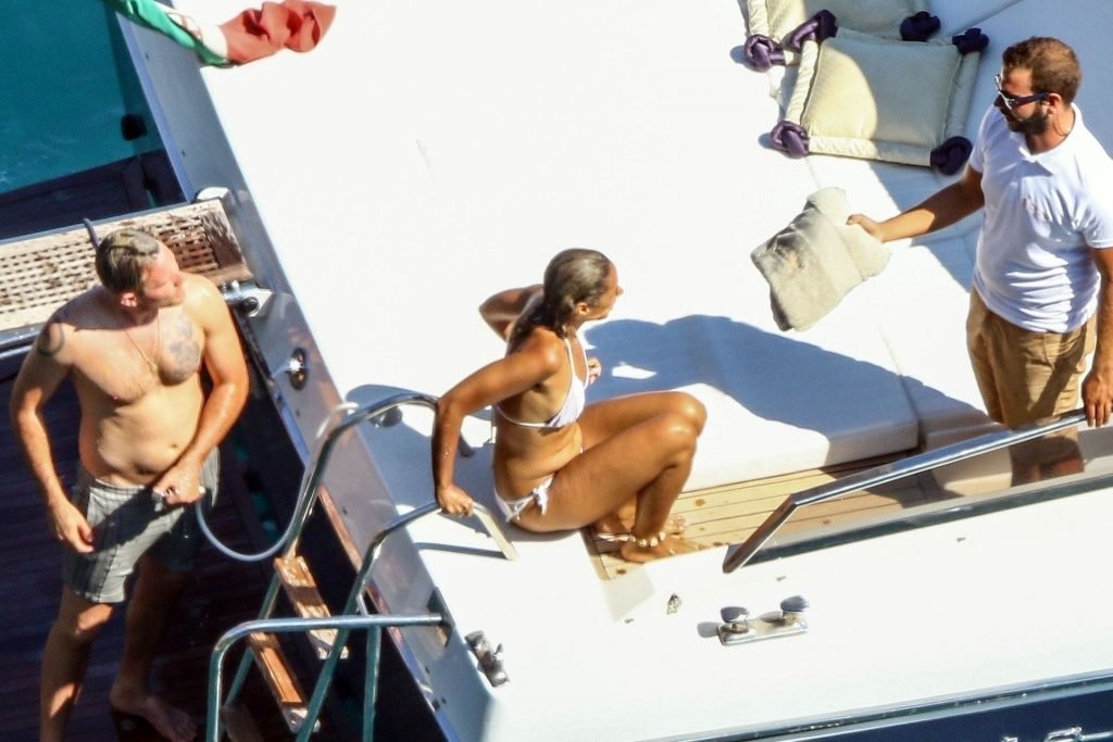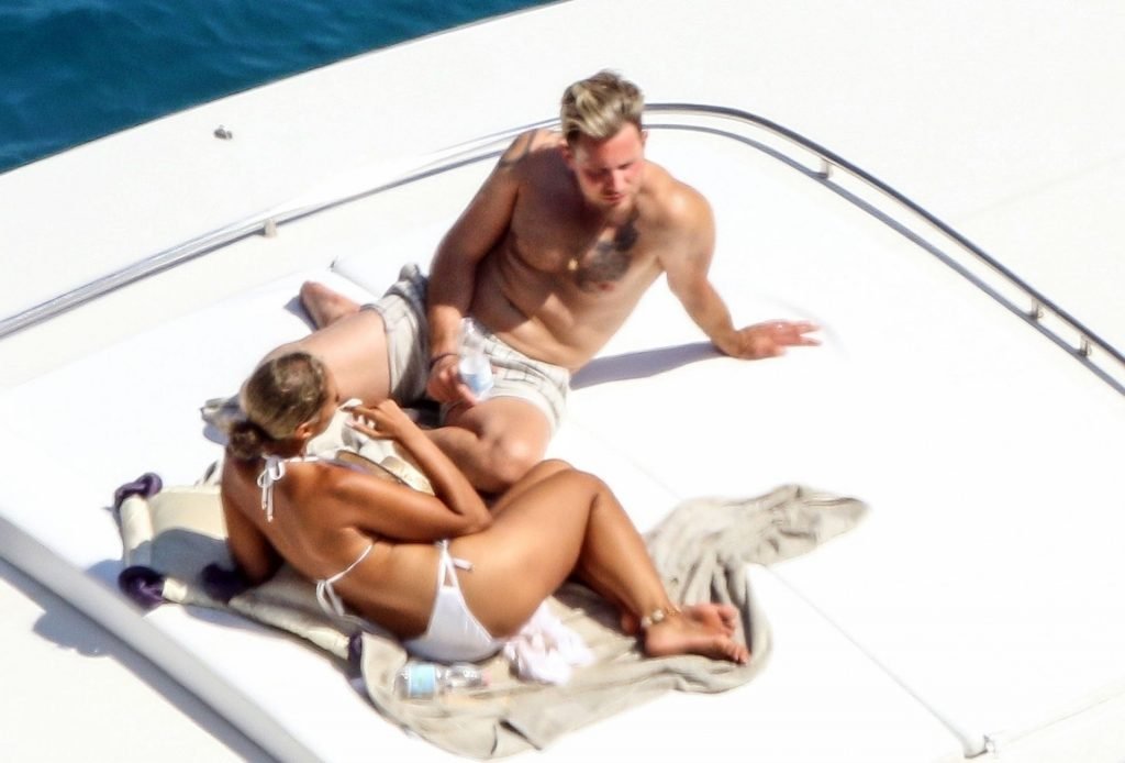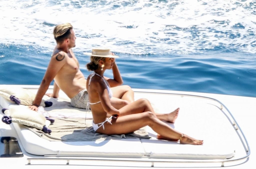 Cantora recém-casada Leona Lewis fotografada parecendo fabulosa em um biquíni branco enquanto aproveita sua lua de mel com o marido Dennis Jauch em Capri, 31/07/2019. A cantora parecia relaxada enquanto tomava sol em seu iate de luxo antes de irem nadar juntos e relaxar na praia local antes de voltarem para o iate para continuar relaxando e compartilhando um beijo no convés!