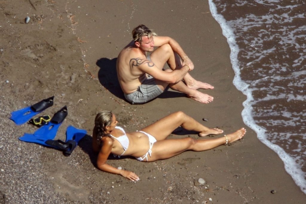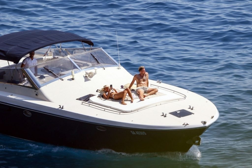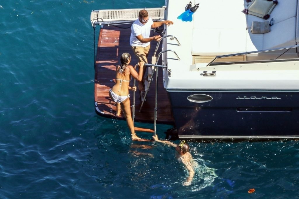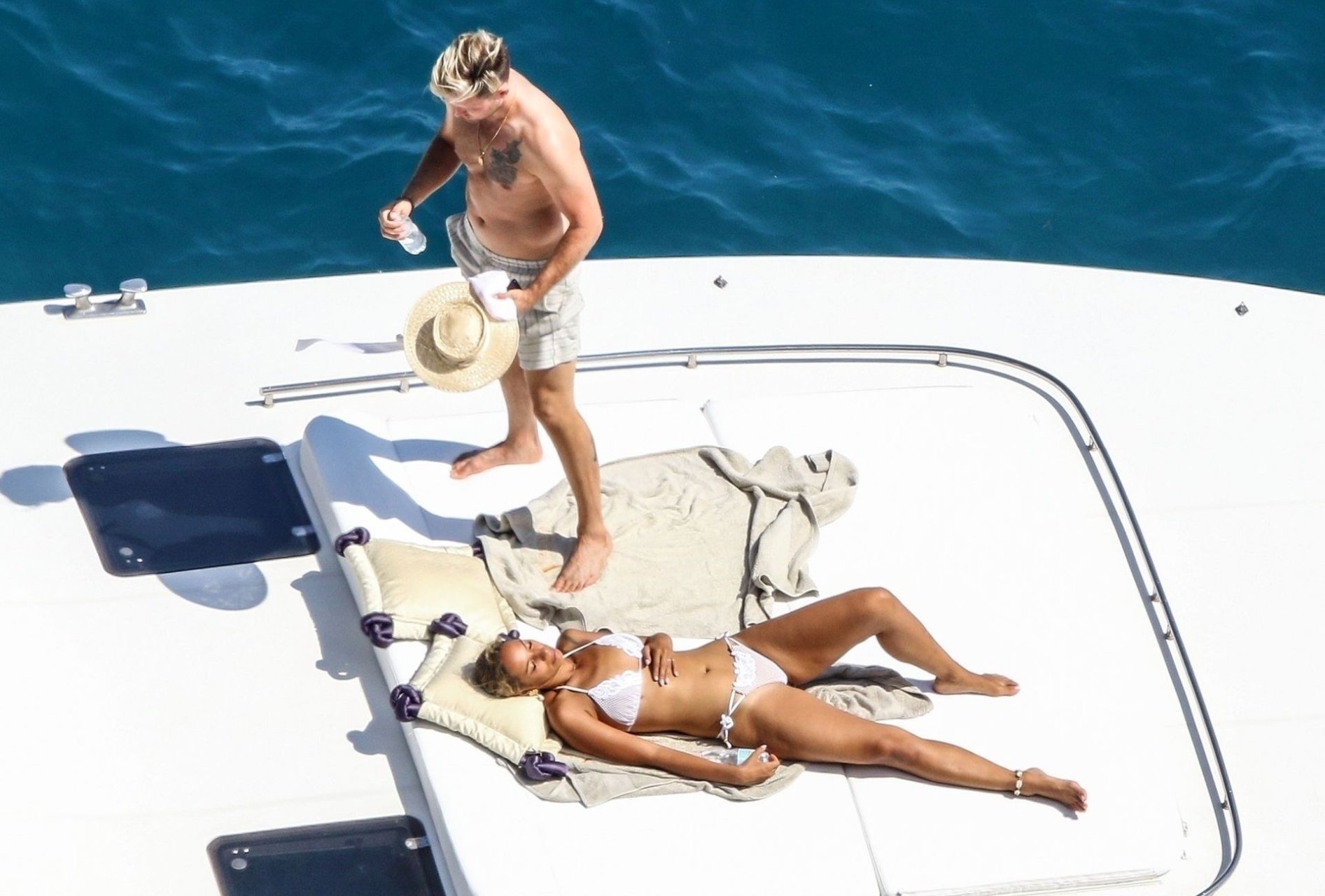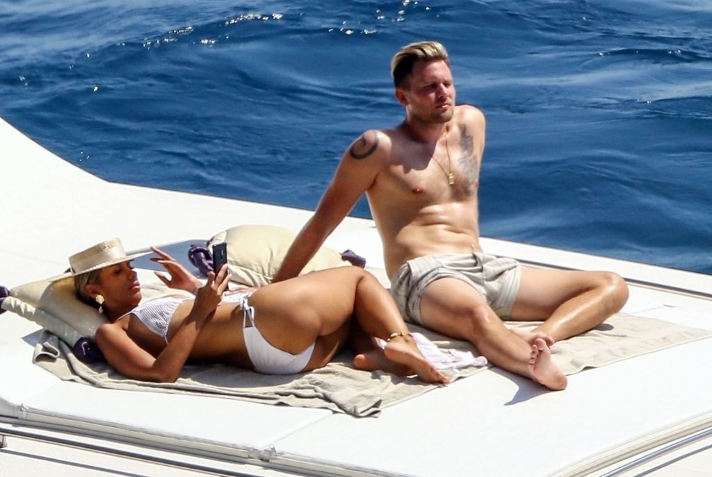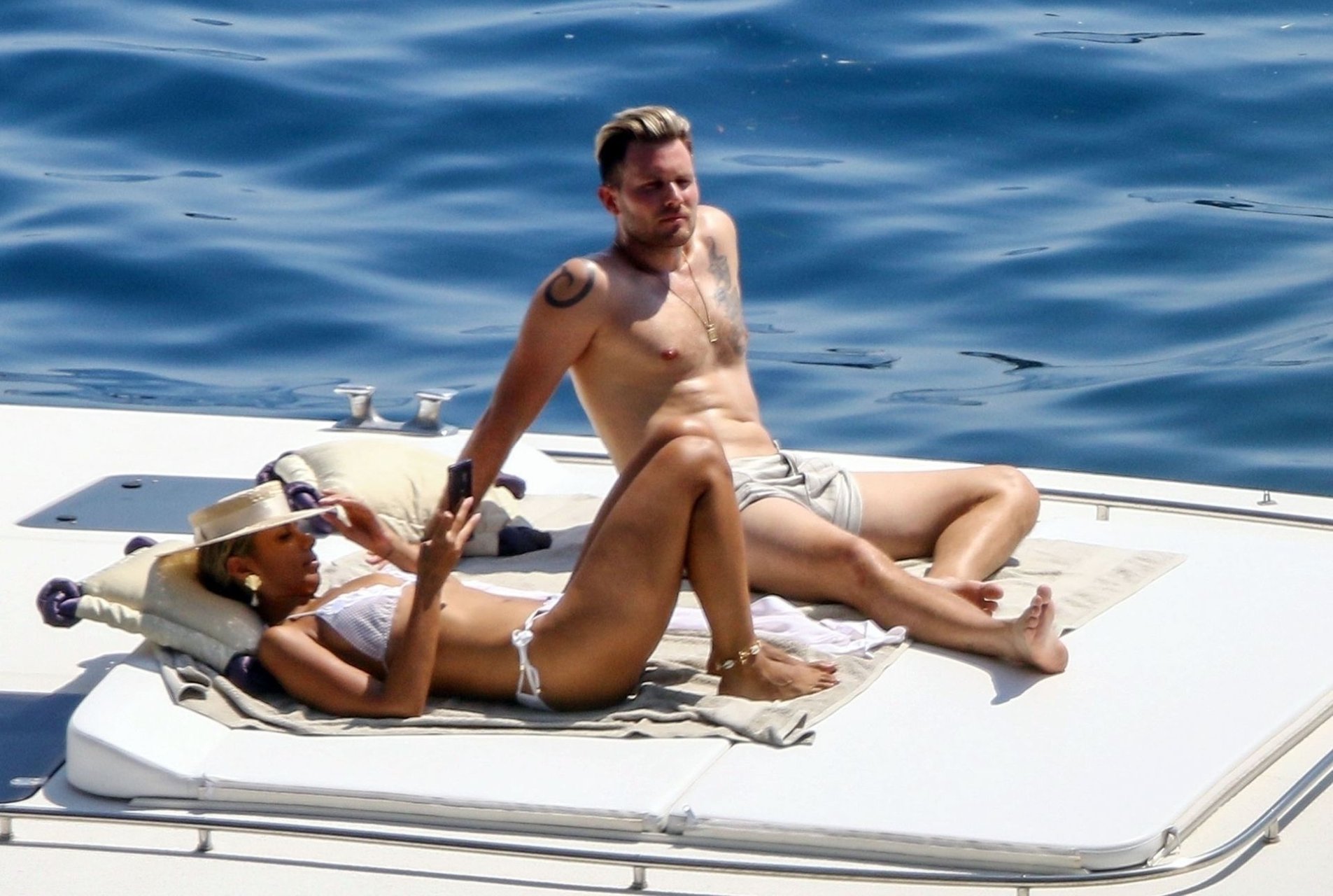 Cantora recém-casada Leona Lewis fotografada parecendo fabulosa em um biquíni branco enquanto aproveita sua lua de mel com o marido Dennis Jauch em Capri, 31/07/2019. A cantora parecia relaxada enquanto tomava sol em seu iate de luxo antes de irem nadar juntos e relaxar na praia local antes de voltarem para o iate para continuar relaxando e compartilhando um beijo no convés!