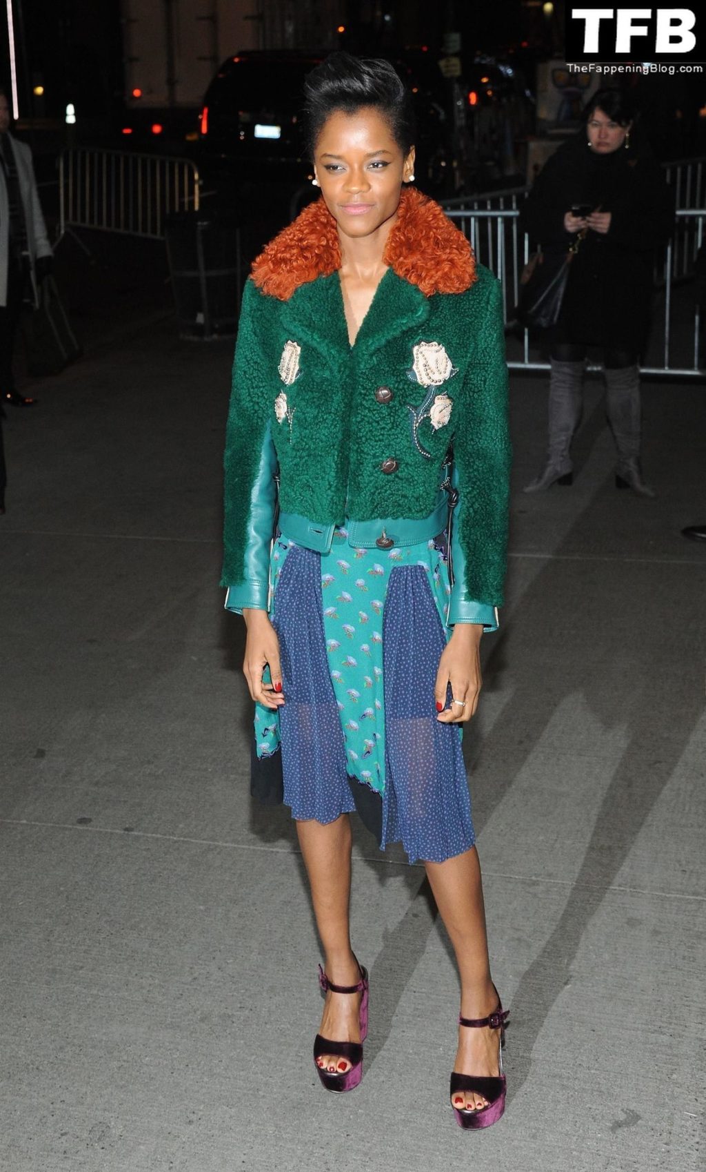 Veja as fotos sensuais de Letitia Wright em eventos oficiais e sessões de moda exibindo suas pernas esbeltas.
