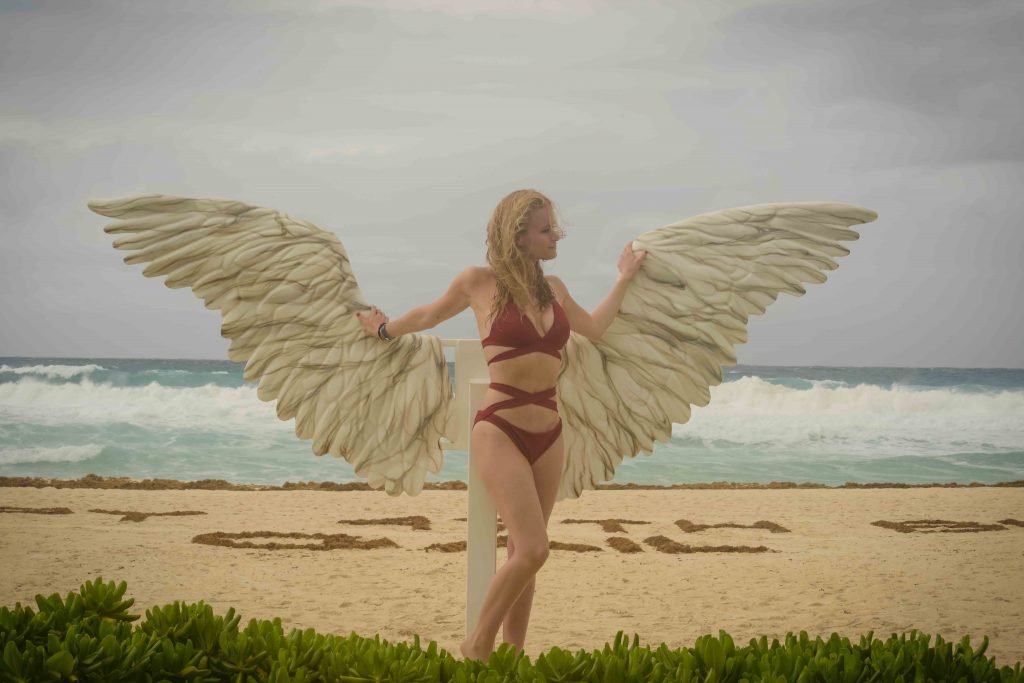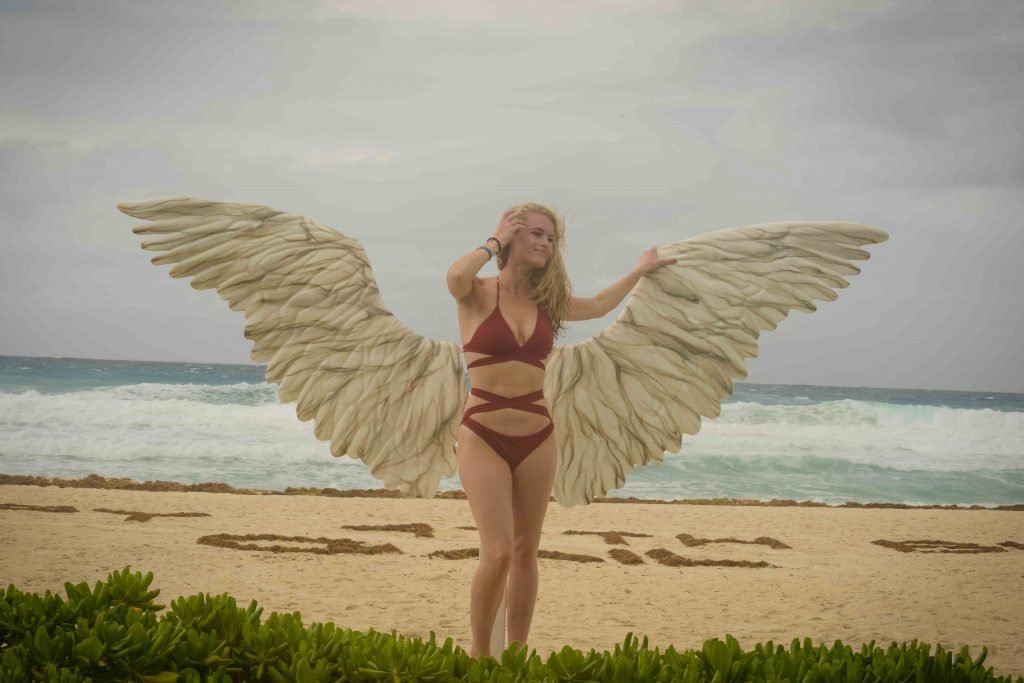 A estrela de Hollywood Leven Rambin fez uma exibição bastante teatral durante um feriado romântico com seu novo namorado, usando biquíni e asas na praia, 22/05/2018.