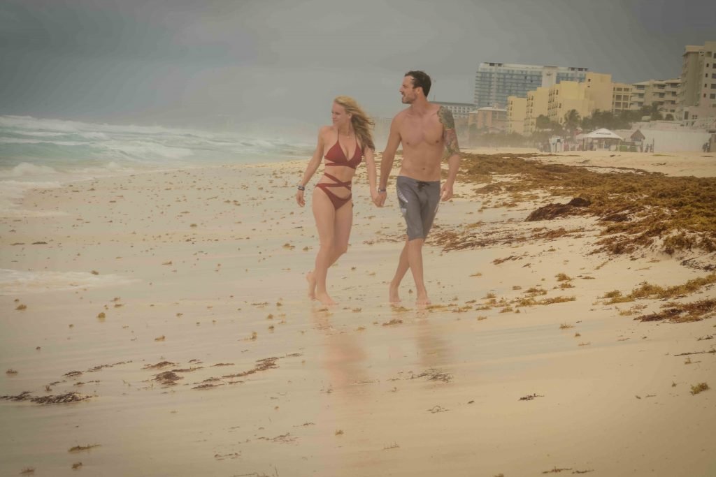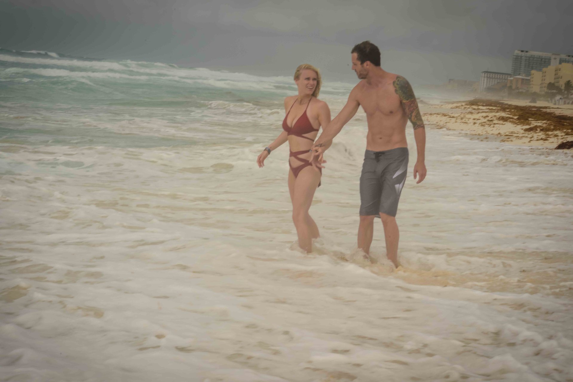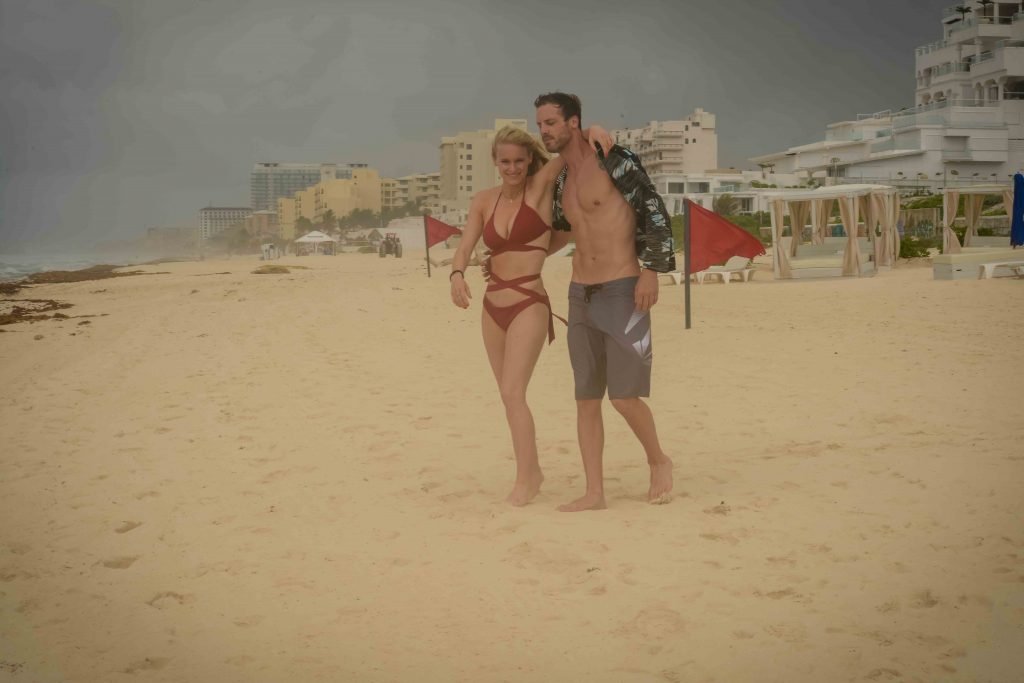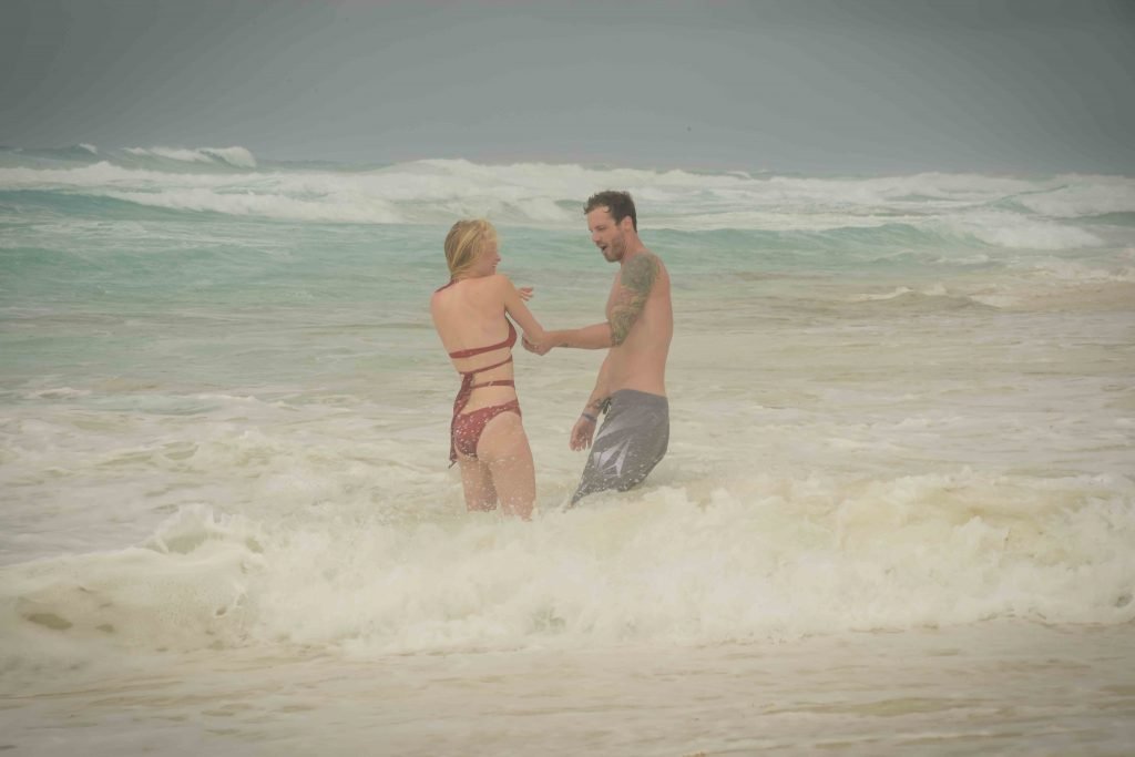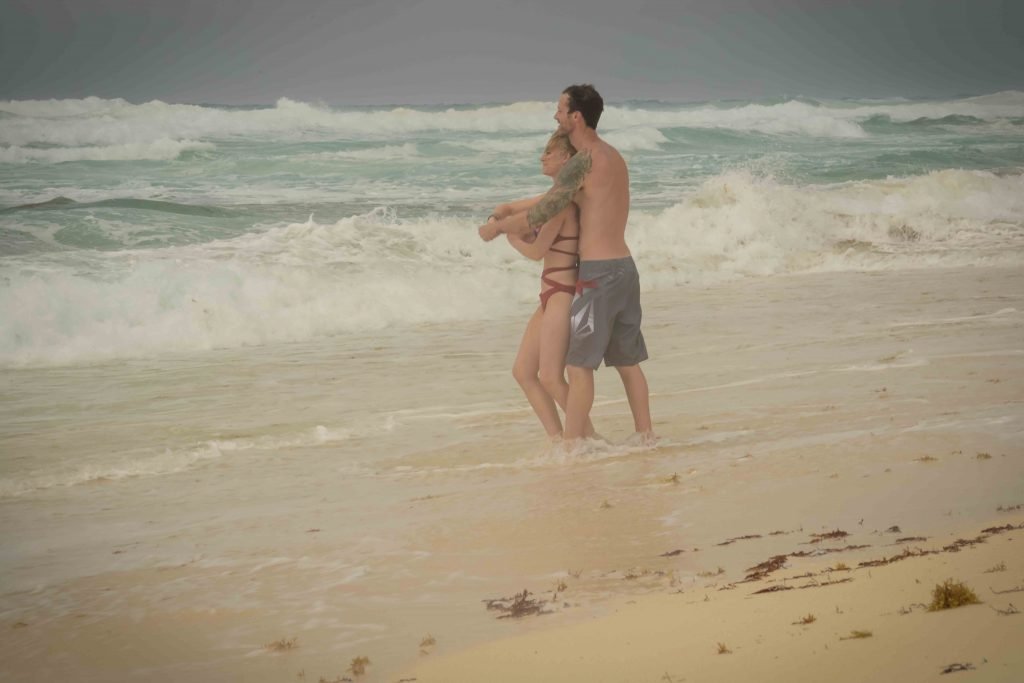 O casal foi visto aproveitando coquetéis em seu hotel, o Live Aqua Beach Resort Cancun, e não deixou a chuva estragar a festa, enfrentando a praia ventosa e aventurando-se nas águas agitadas para um passeio.