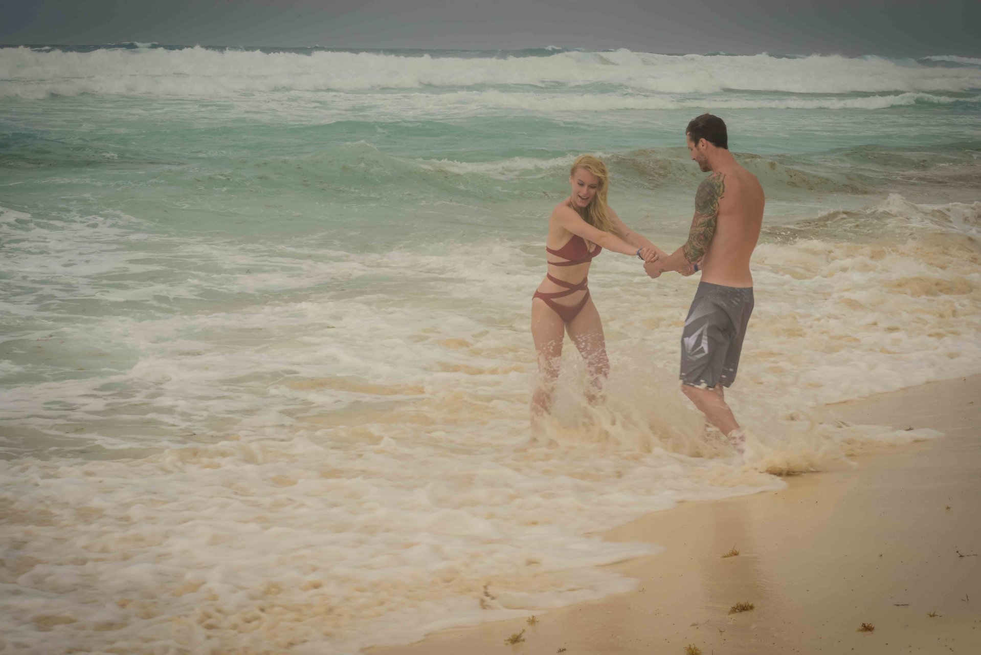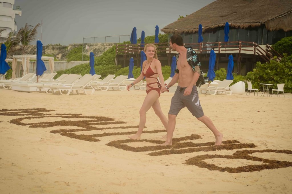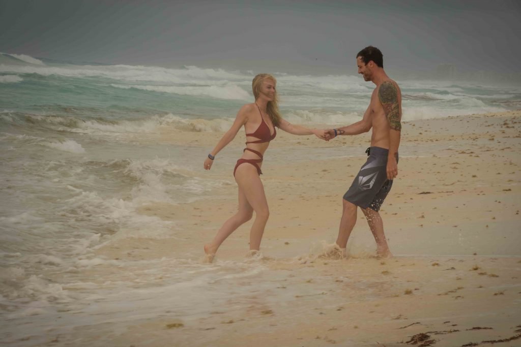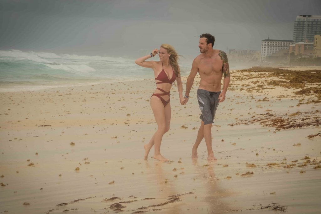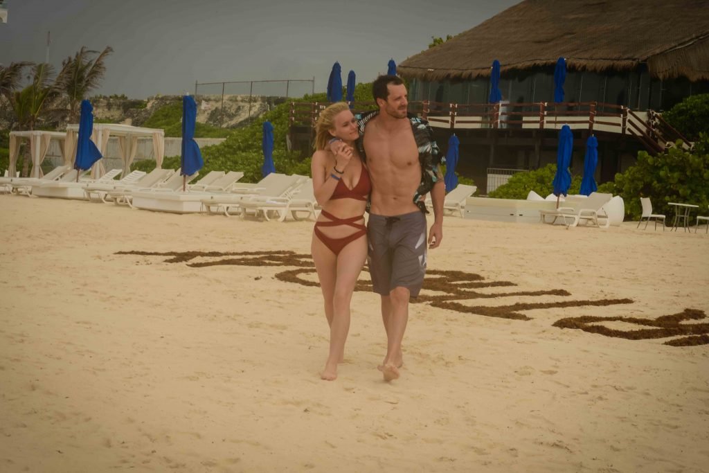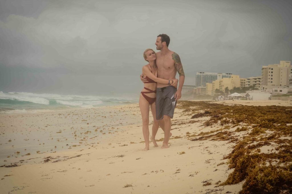 O casal foi visto aproveitando coquetéis em seu hotel, o Live Aqua Beach Resort Cancun, e não deixou a chuva estragar a festa, enfrentando a praia ventosa e aventurando-se nas águas agitadas para um passeio.