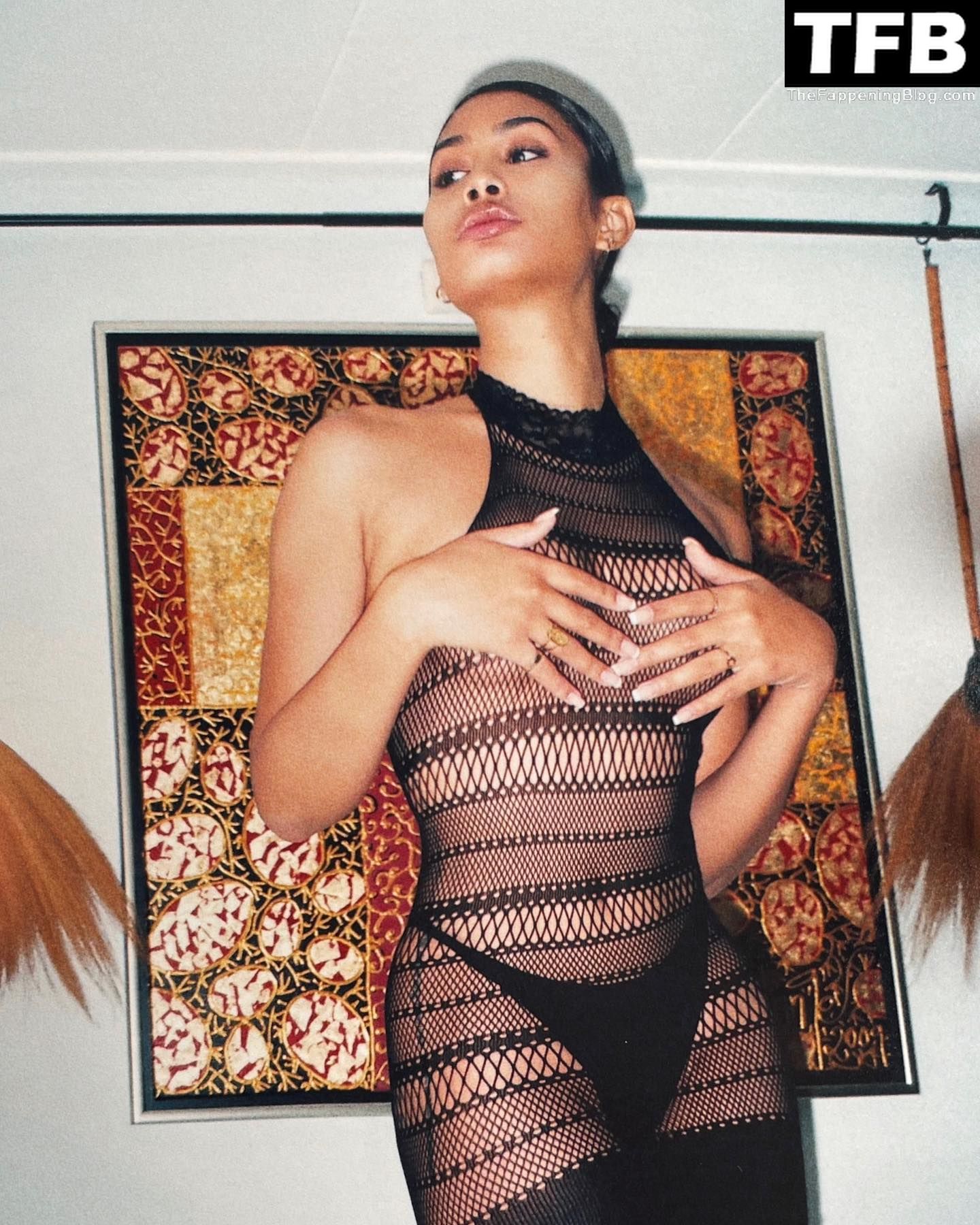 TS Leyna Bloom exibe seus seios em várias sessões de fotos semi-nuas e sensuais nas redes sociais.