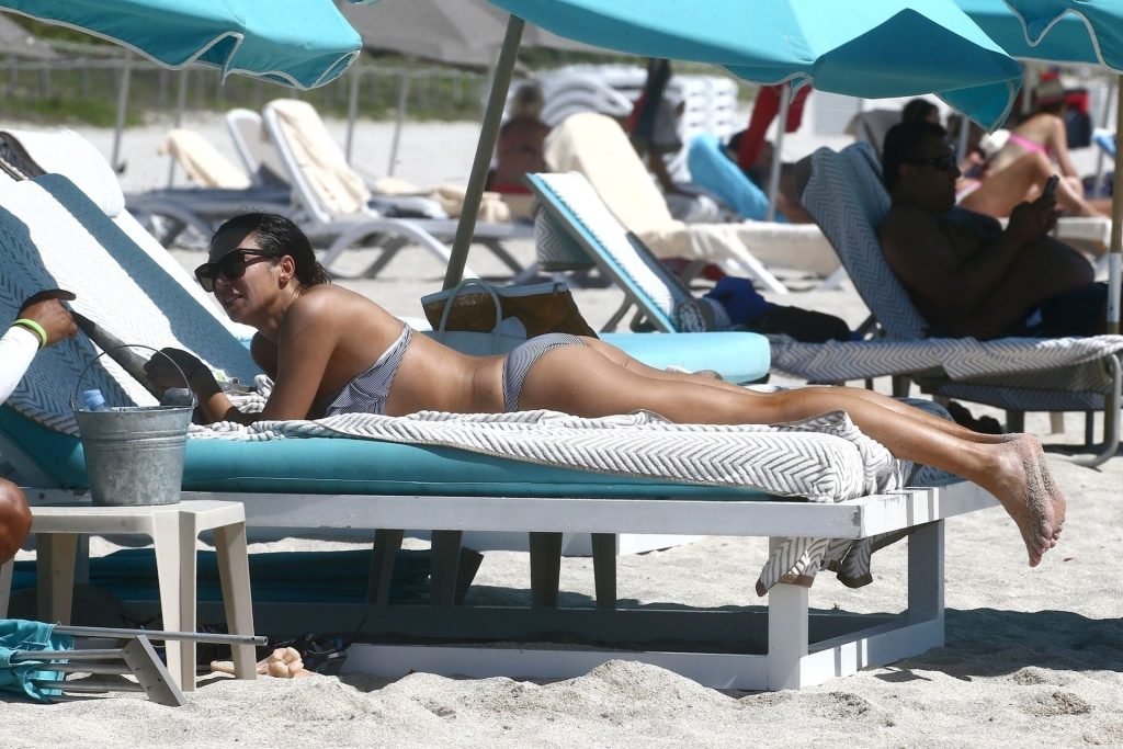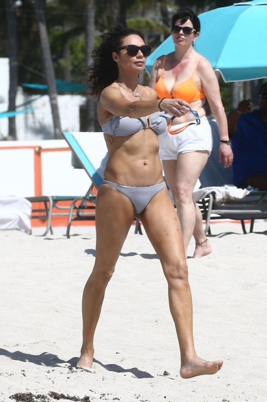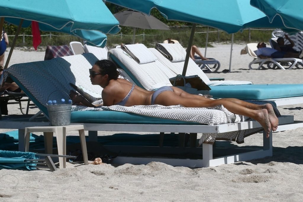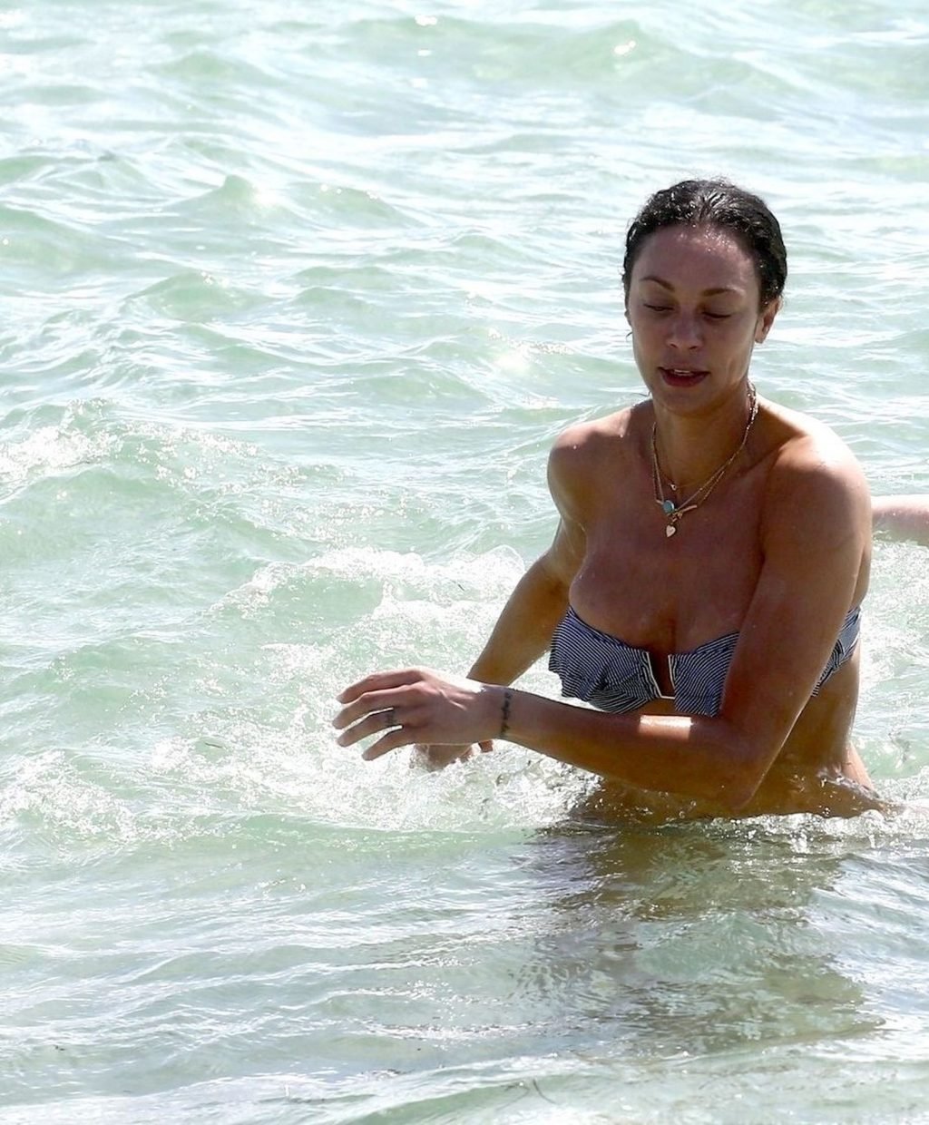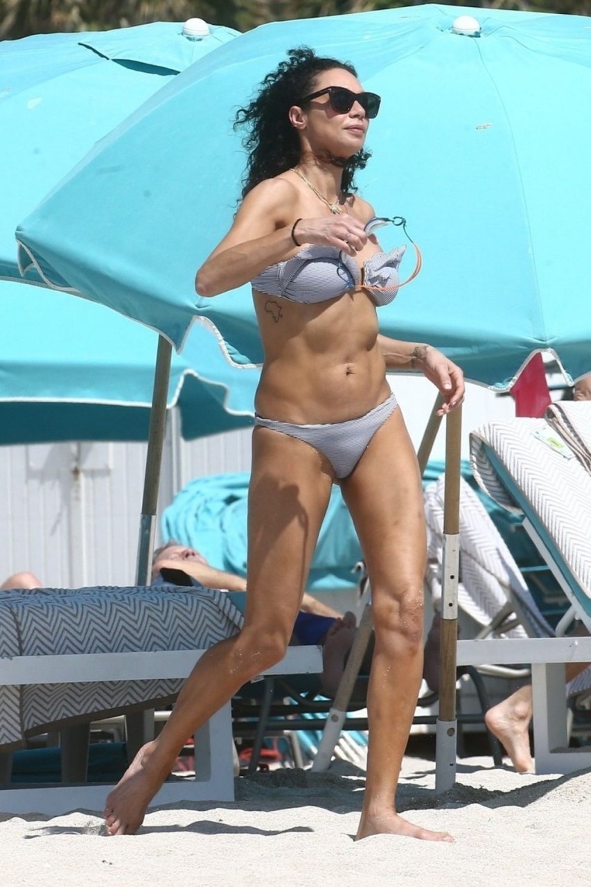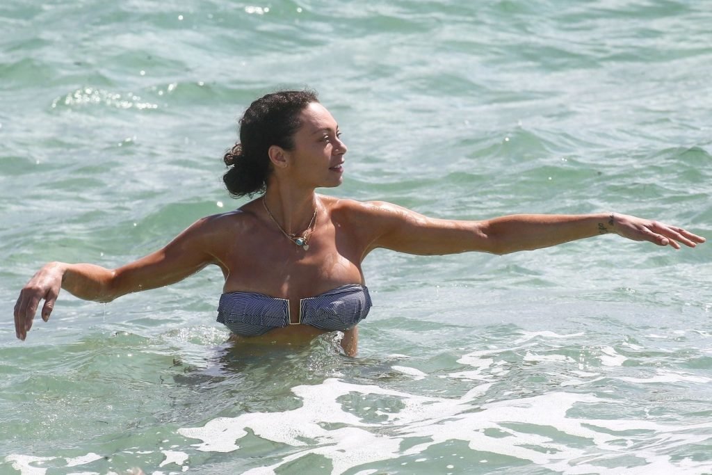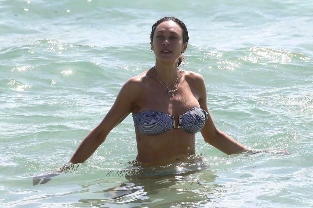 Lilly Becker mostra o que o futuro ex-marido Boris Becker está perdendo enquanto desfila de biquíni em Miami, Flórida, 12/04/2019. Aos 42 anos, ela não teve medo de exibir seu corpo de biquíni ao dar um rápido mergulho no oceano para se refrescar na manhã de sexta-feira com seu filho Amadeus.