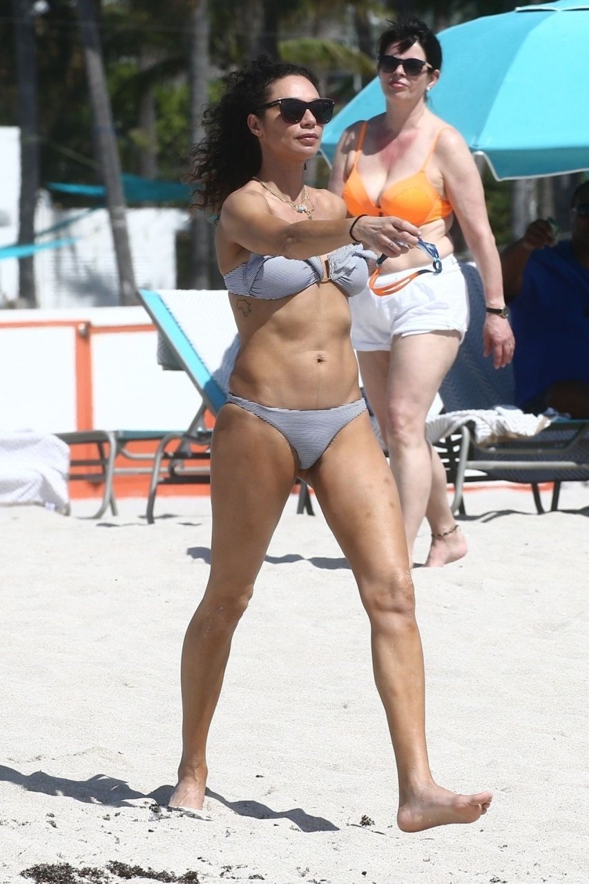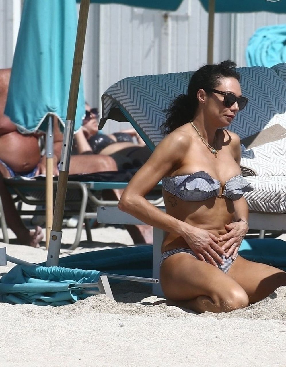 Lilly Becker mostra o que o futuro ex-marido Boris Becker está perdendo enquanto desfila de biquíni em Miami, Flórida, 12/04/2019. Aos 42 anos, ela não teve medo de exibir seu corpo de biquíni ao dar um rápido mergulho no oceano para se refrescar na manhã de sexta-feira com seu filho Amadeus.