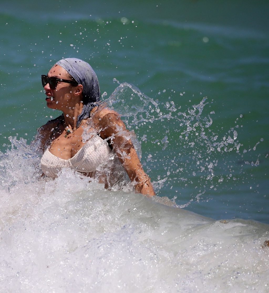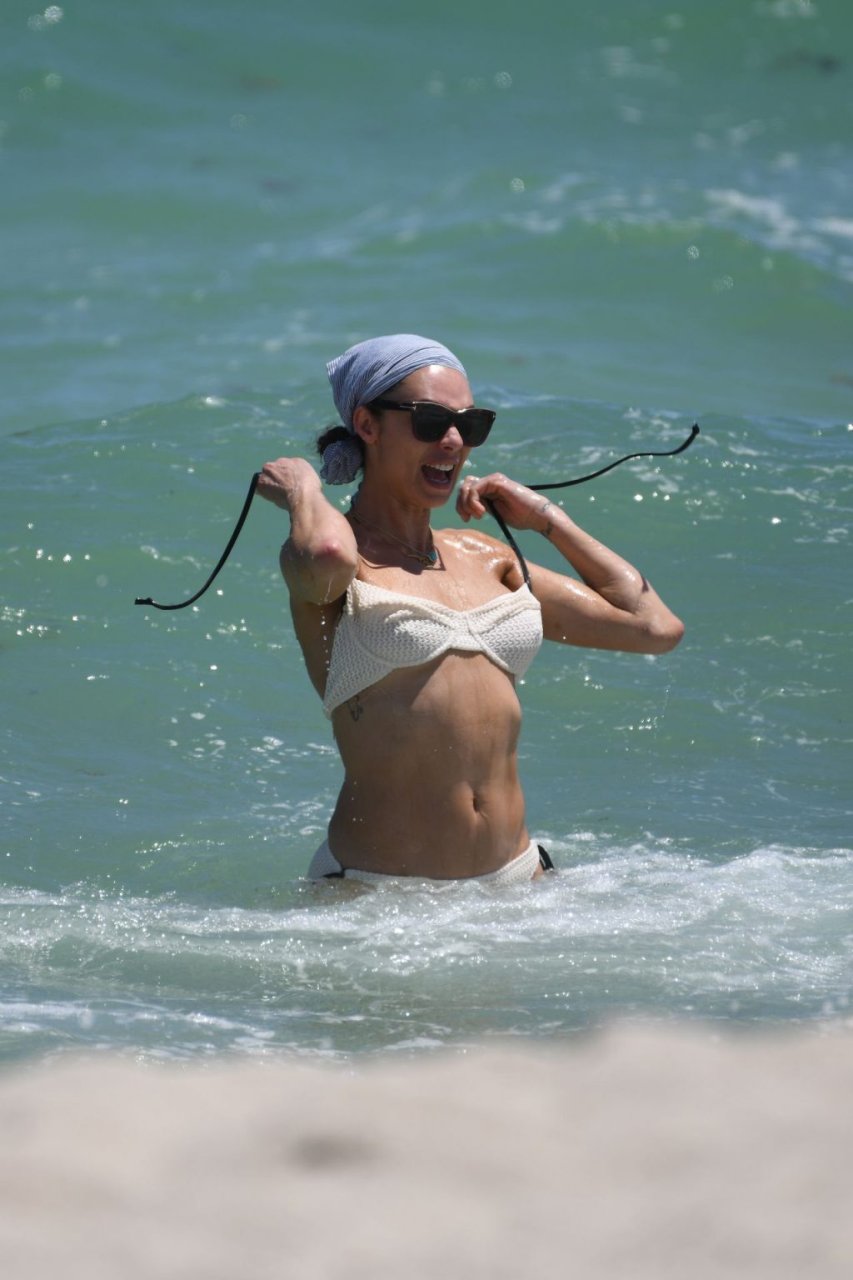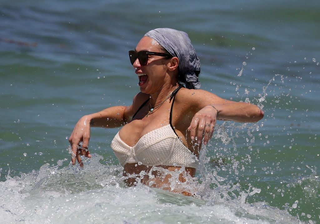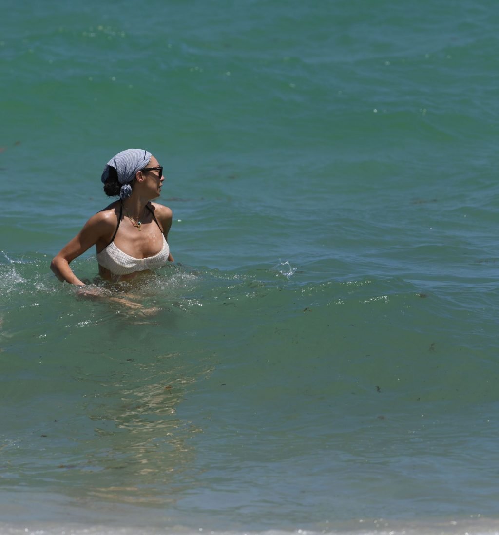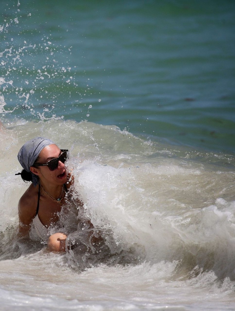 Lilly Becker teve um contratempo infeliz quando o top do seu biquíni saiu após ser atingido por uma grande onda enquanto nadava na Miami Beach, em 13/04/2019. Lilly parecia estar se divertindo muito ao dar um mergulho na Miami Beach quando uma enorme onda veio e tirou o top do biquíni dela. Lilly riu, pegou seu top e foi acompanhada por seu filho, Amadeus.