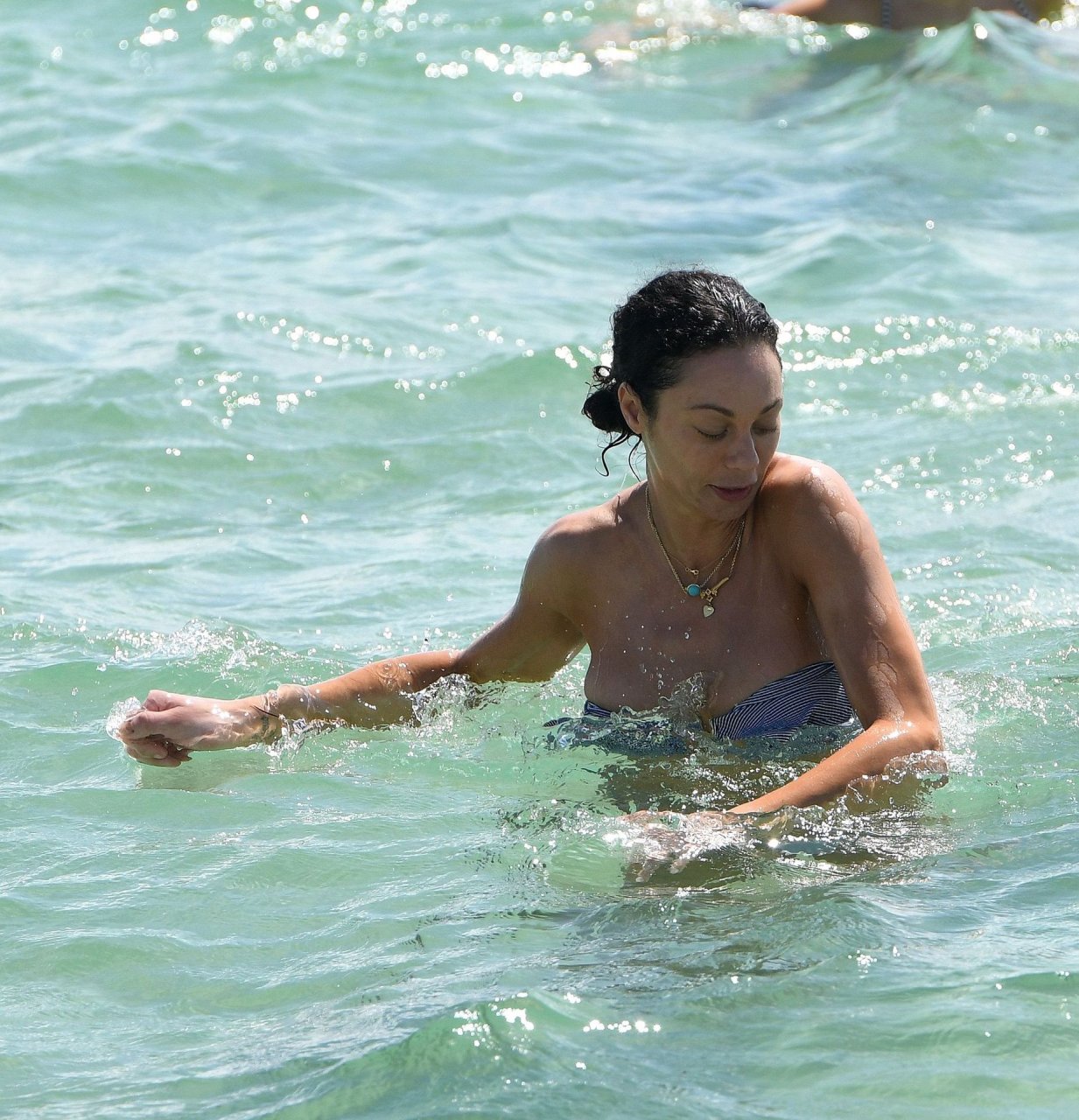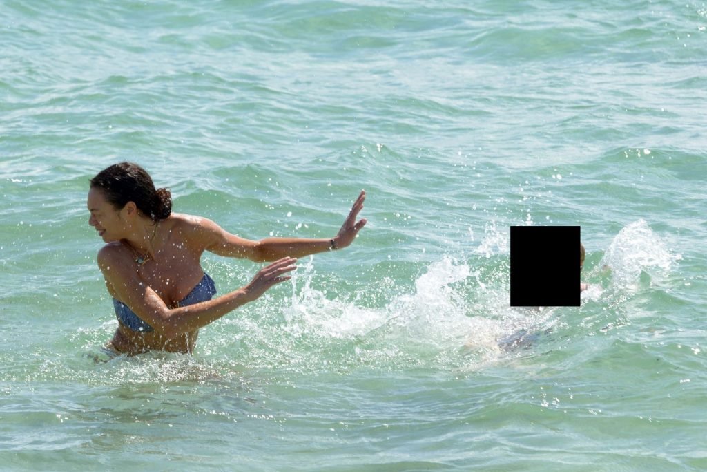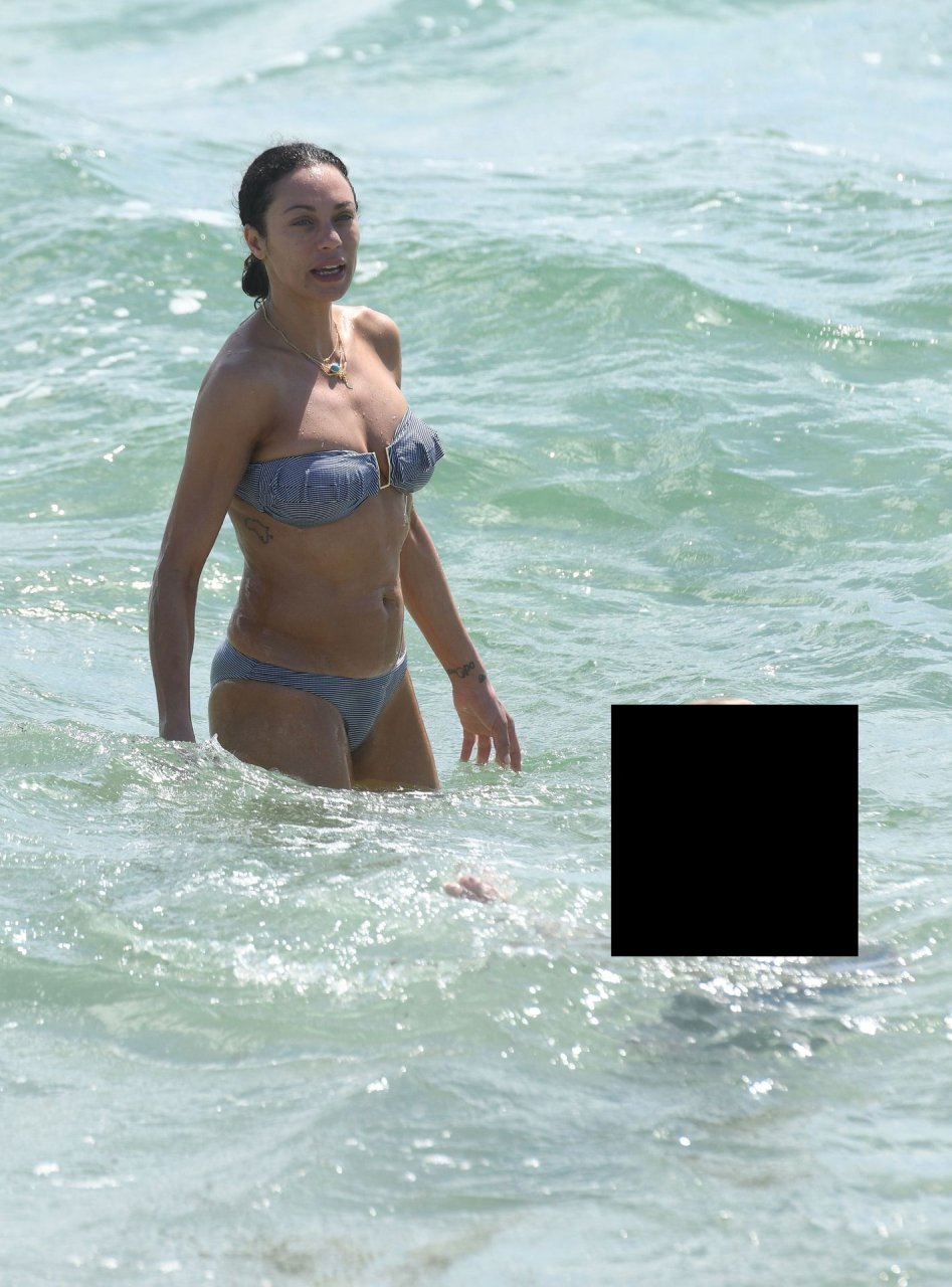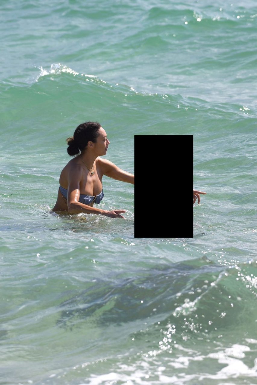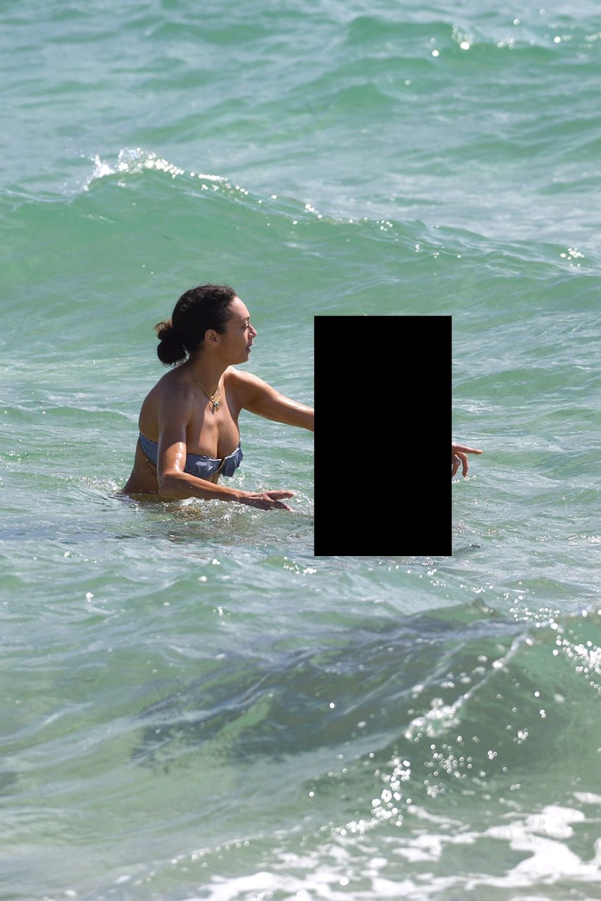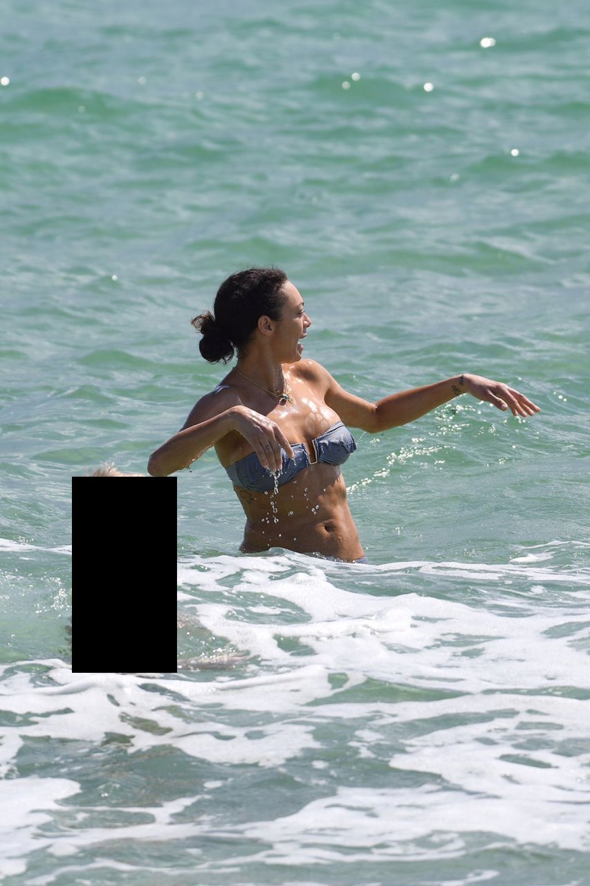 Recém-solteira, Lilly Becker tem um grande problema de guarda-roupa com um top de biquíni proibido enquanto curte as ondas em Miami, 12/04/2019.