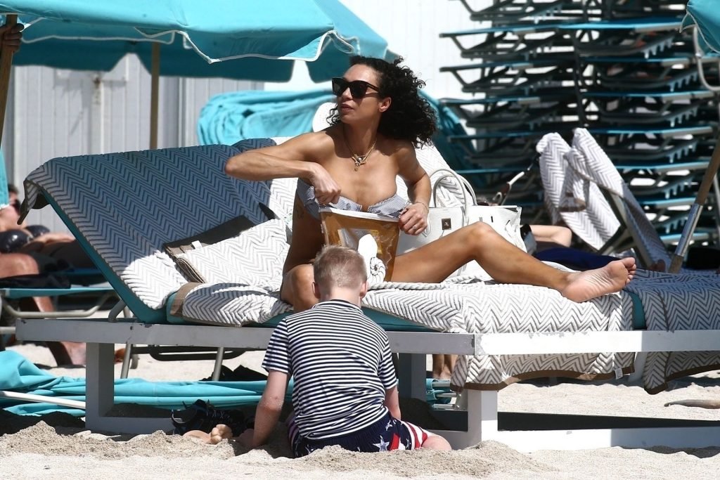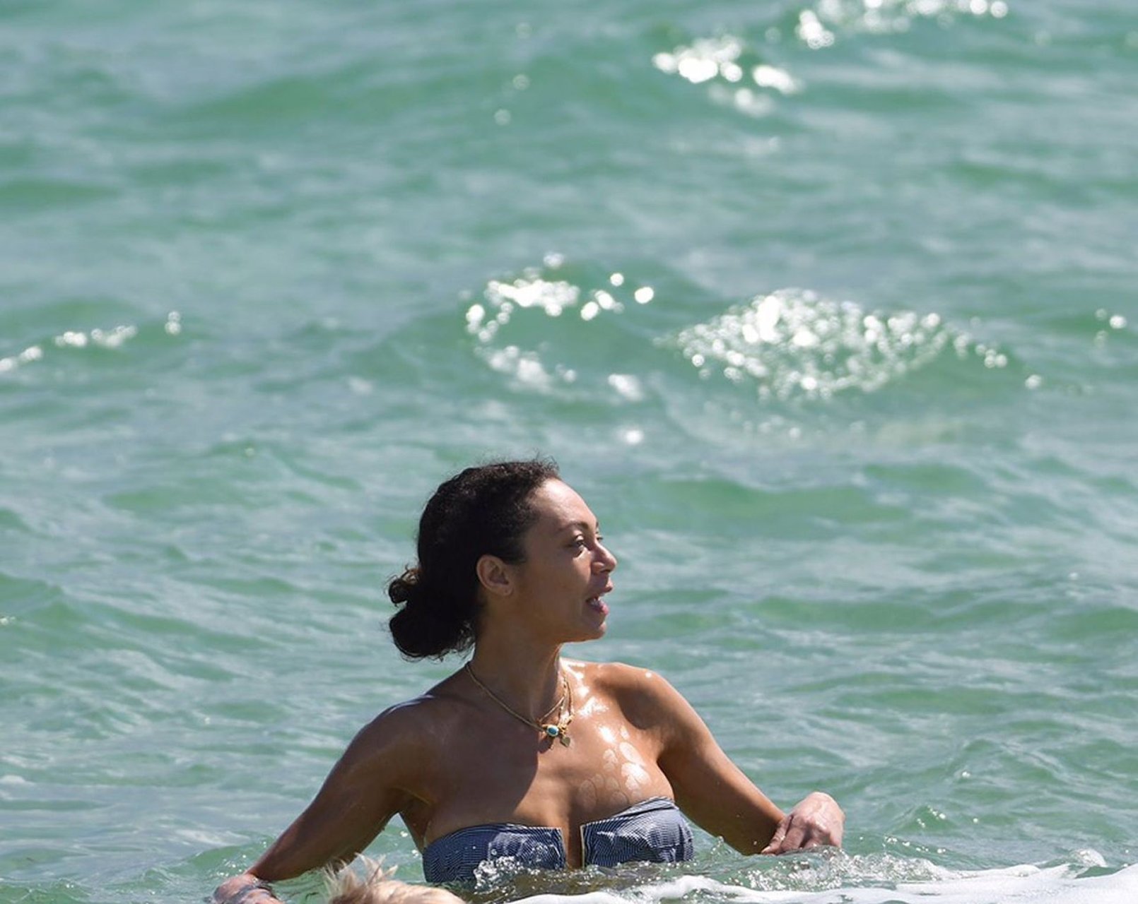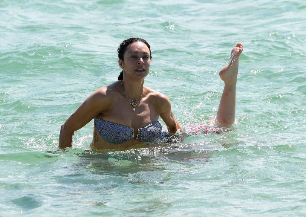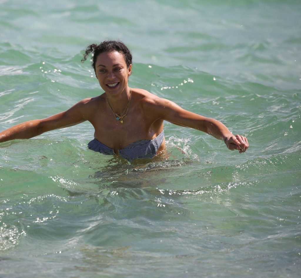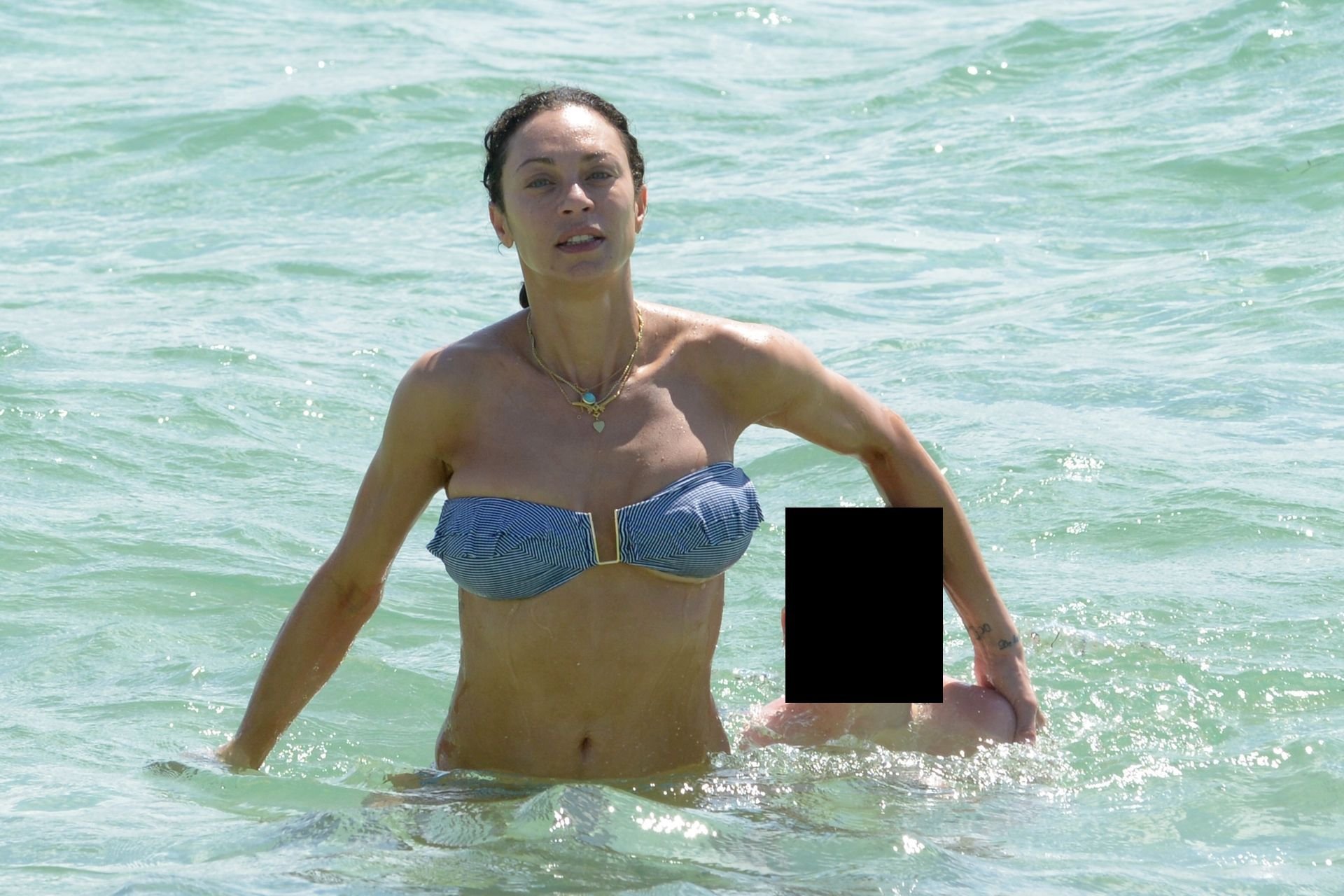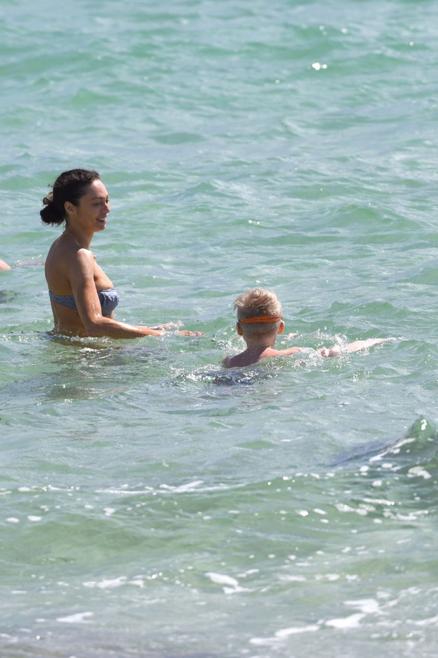 Recém-solteira, Lilly Becker tem um grande problema de guarda-roupa com um top de biquíni proibido enquanto curte as ondas em Miami, 12/04/2019.