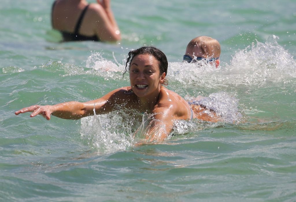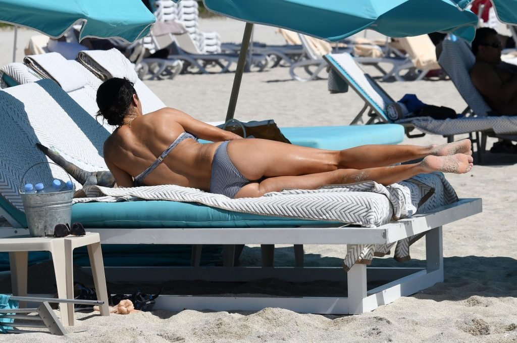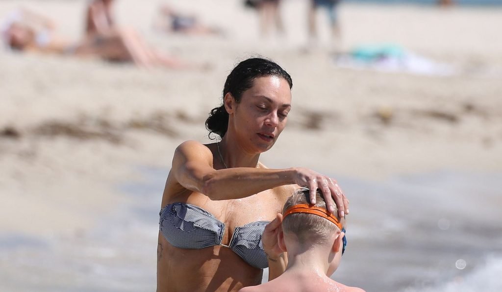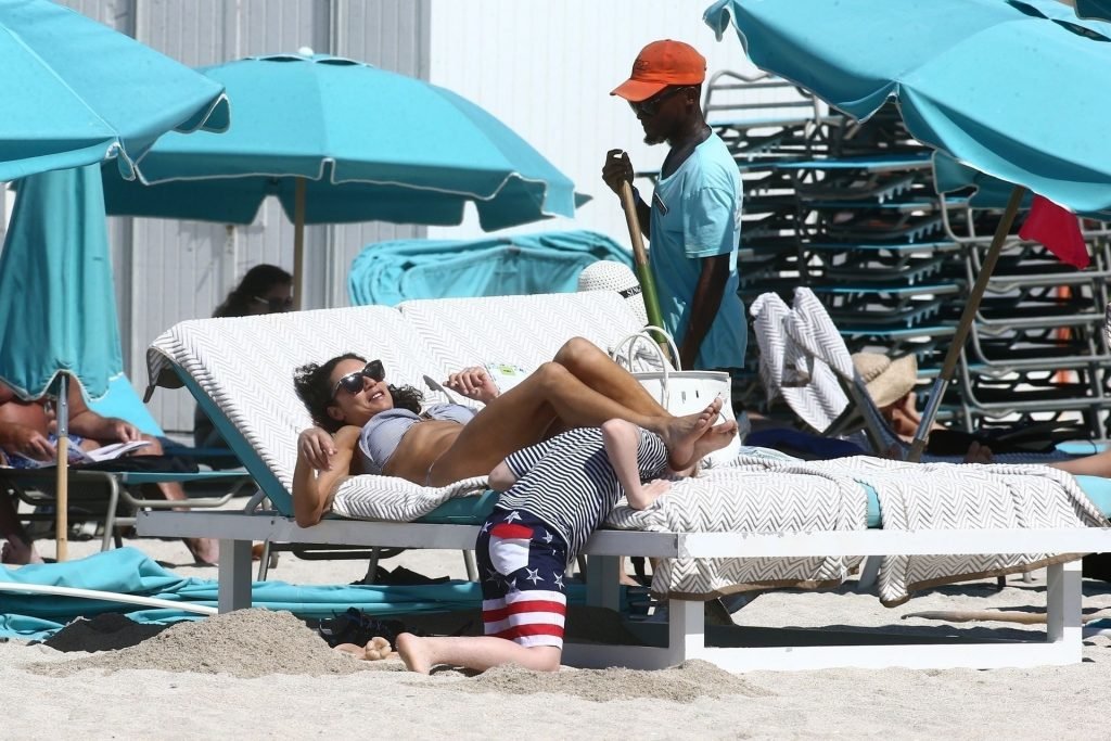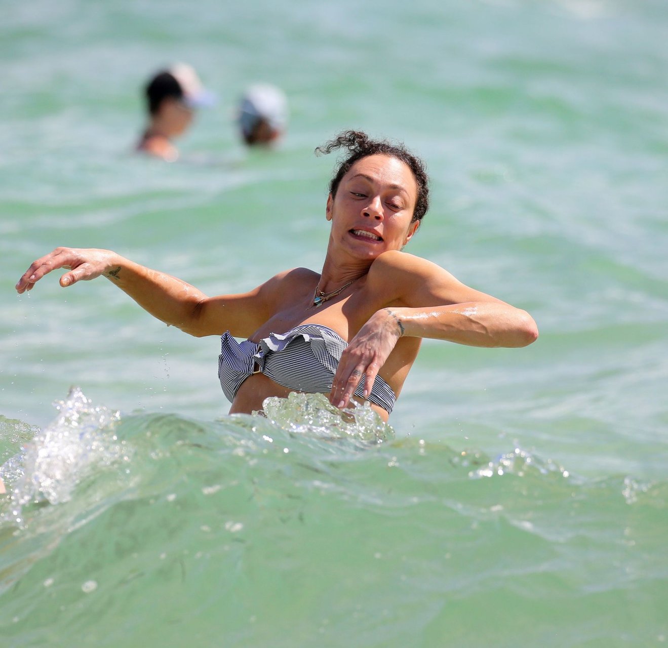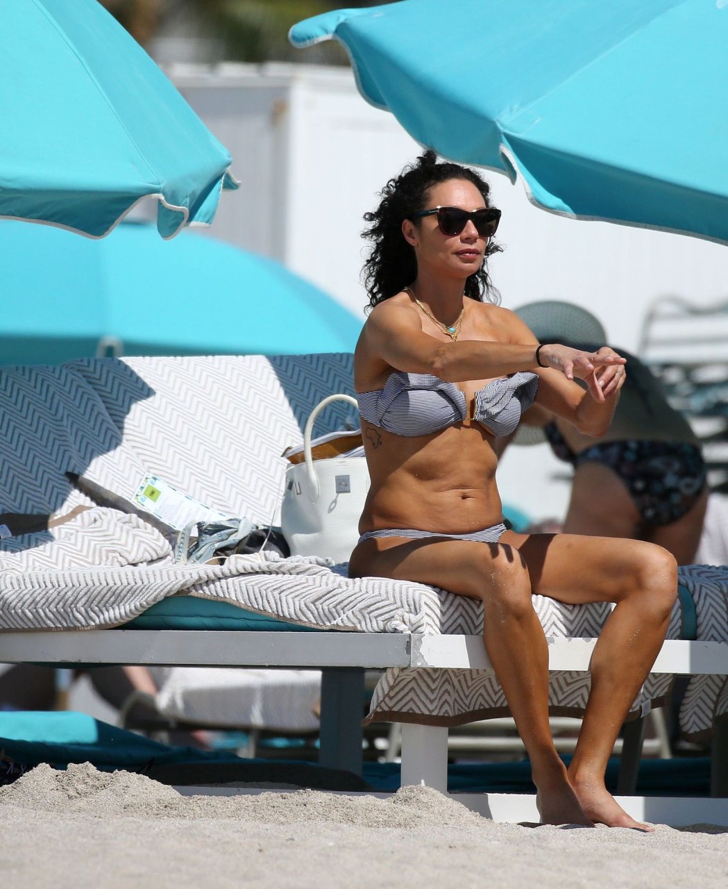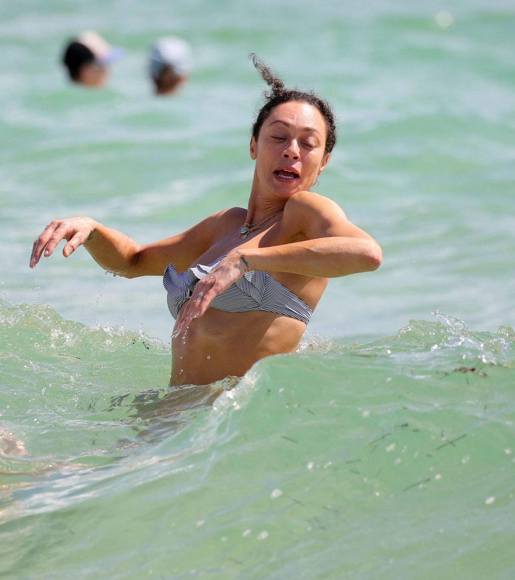 Recém-solteira, Lilly Becker tem um grande problema de guarda-roupa com um top de biquíni proibido enquanto curte as ondas em Miami, 12/04/2019.