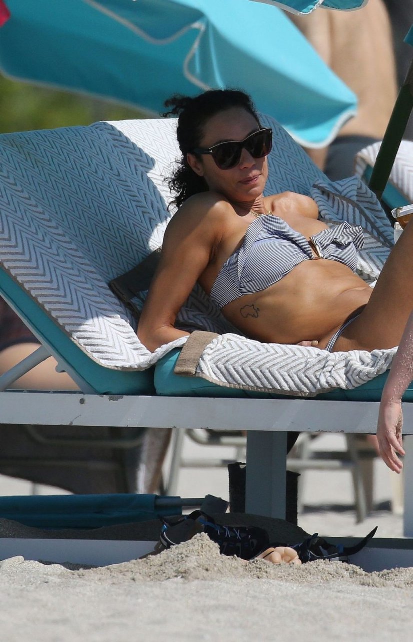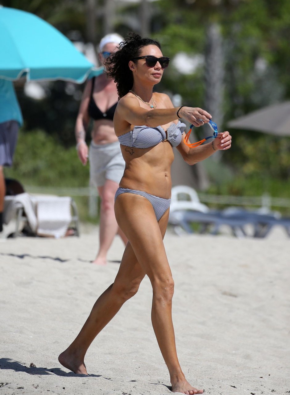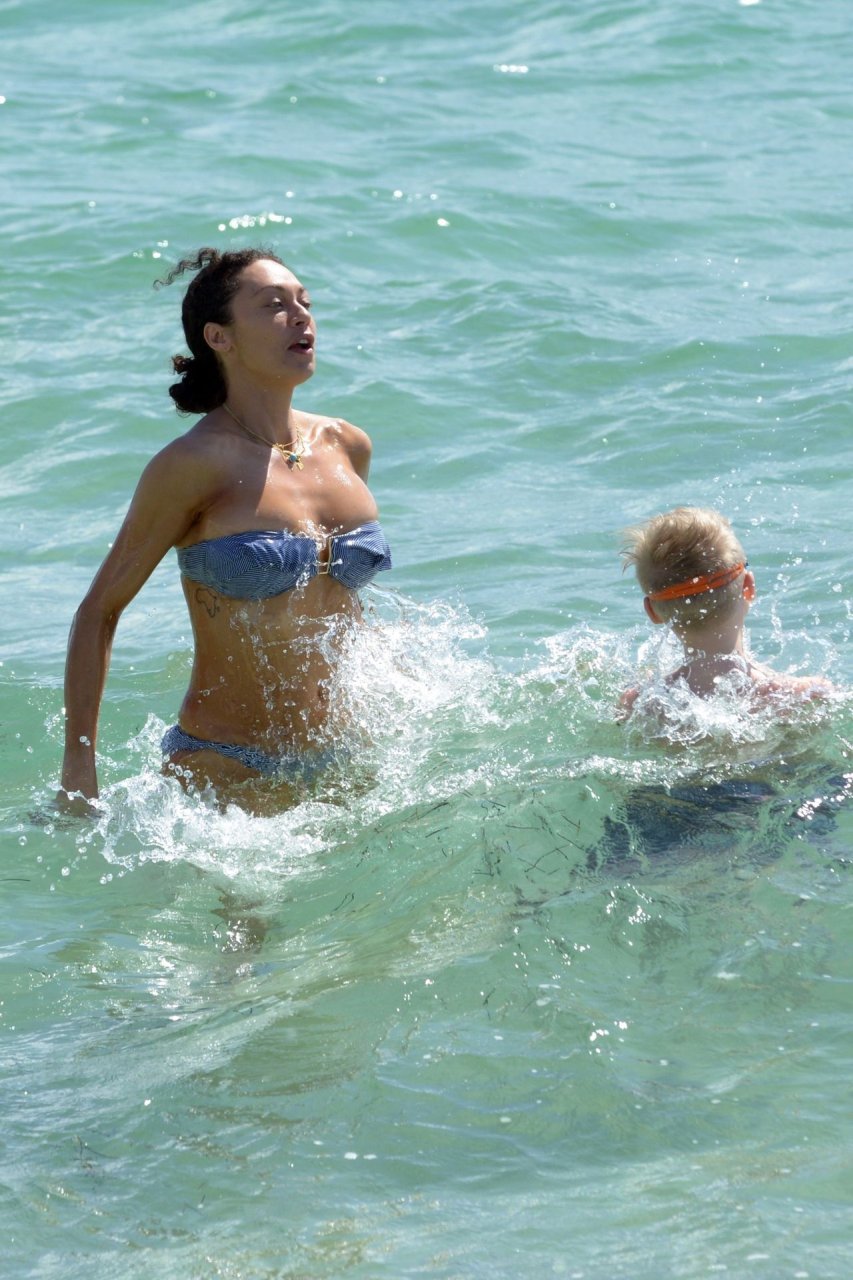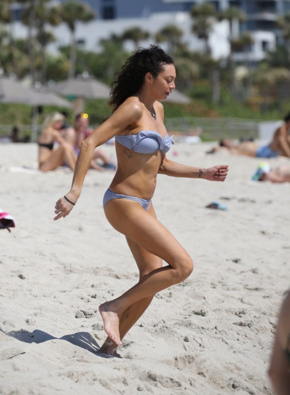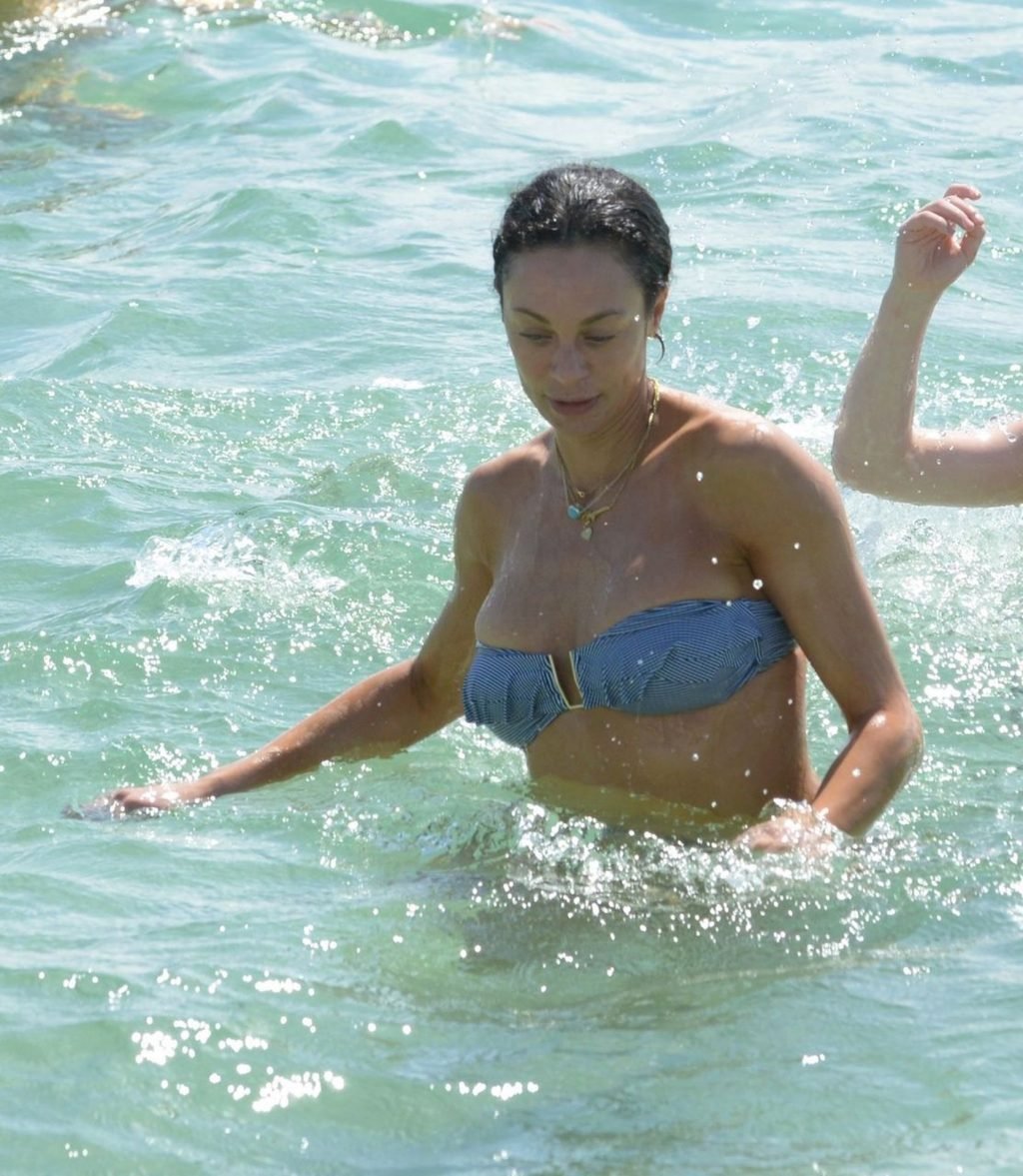 Recém-solteira, Lilly Becker tem um grande problema de guarda-roupa com um top de biquíni proibido enquanto curte as ondas em Miami, 12/04/2019.