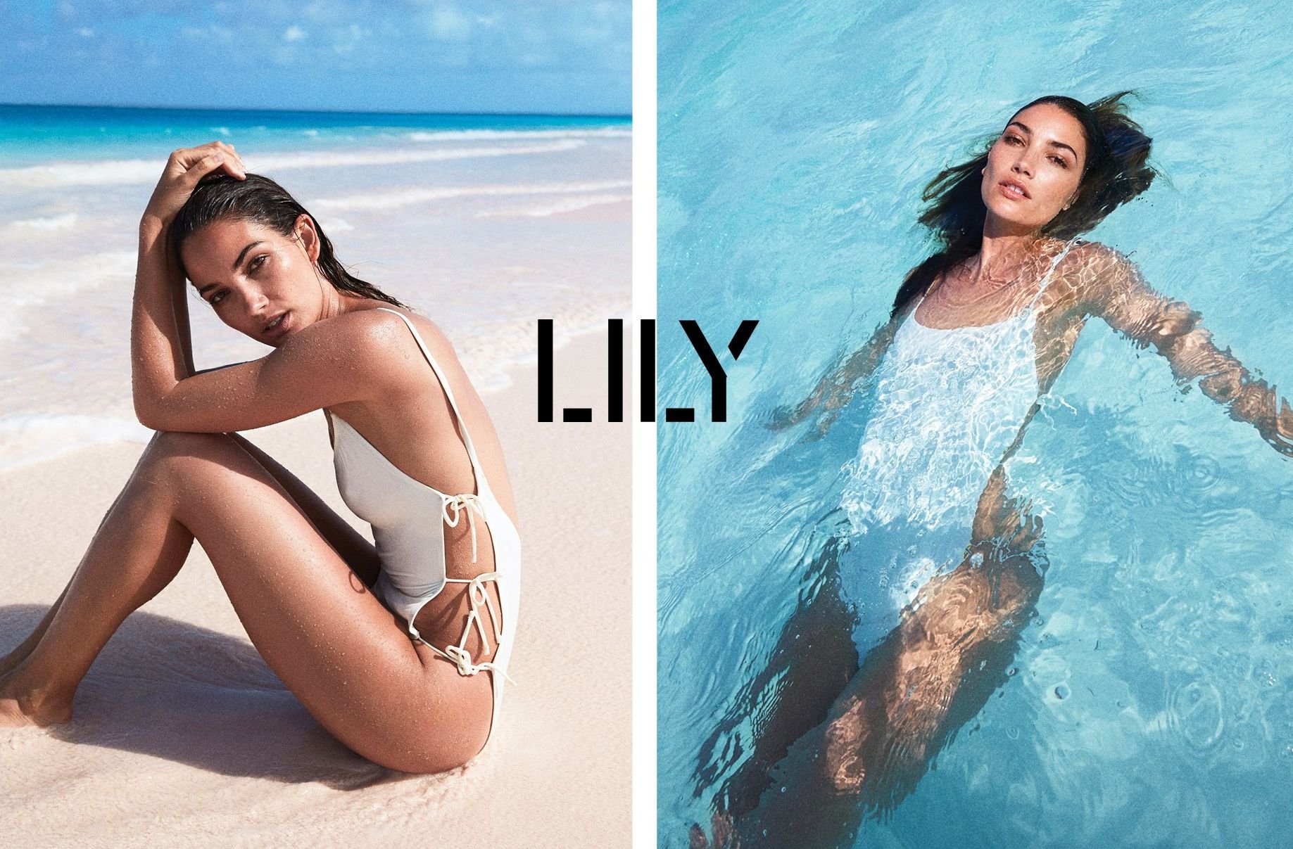 Model Lily Aldridge, 32, promove a marca de roupas de banho Solid & Striped (2018).