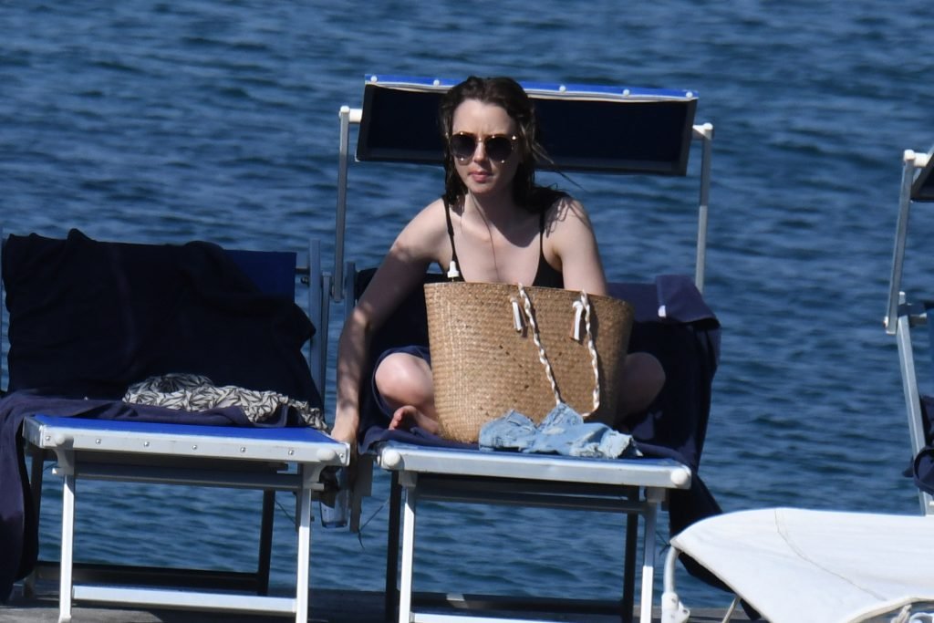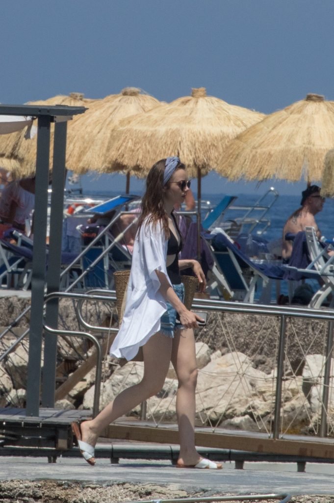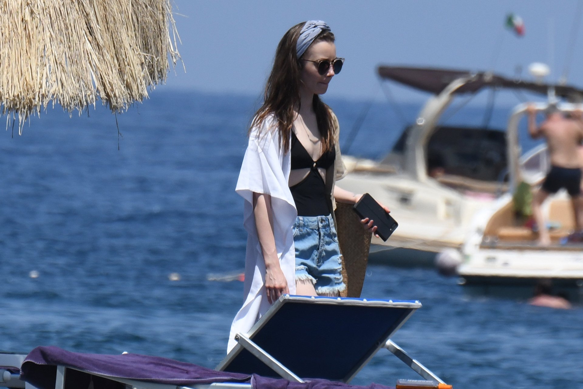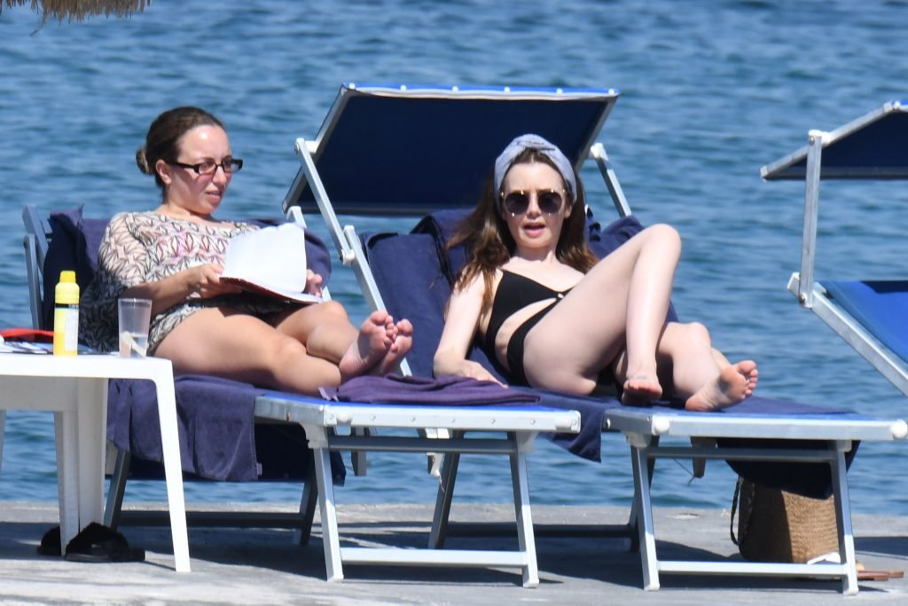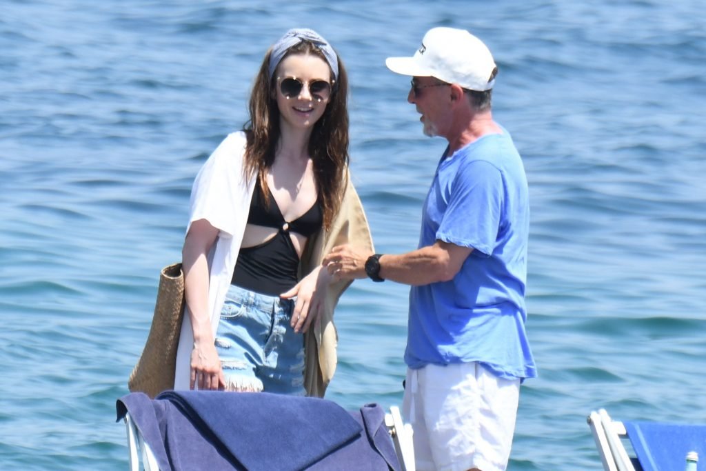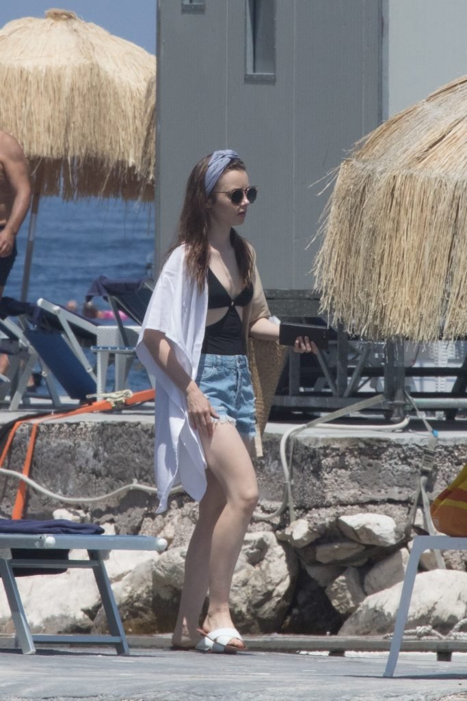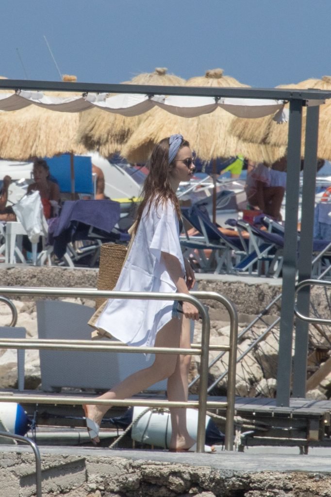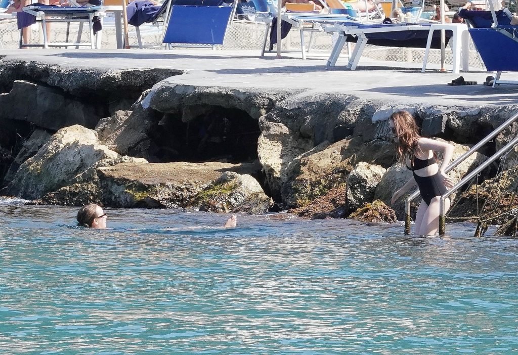 Lily Collins foi vista relaxando no Hotel Regina Isabella em Ischia Porto, Itália, 15/07/2018. A atriz de 29 anos foi vista usando um maiô preto.