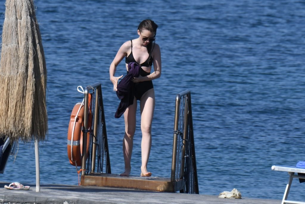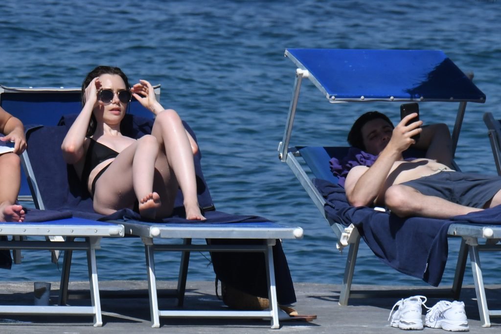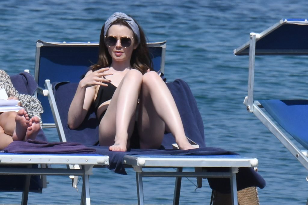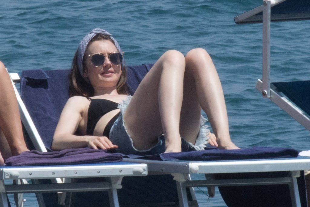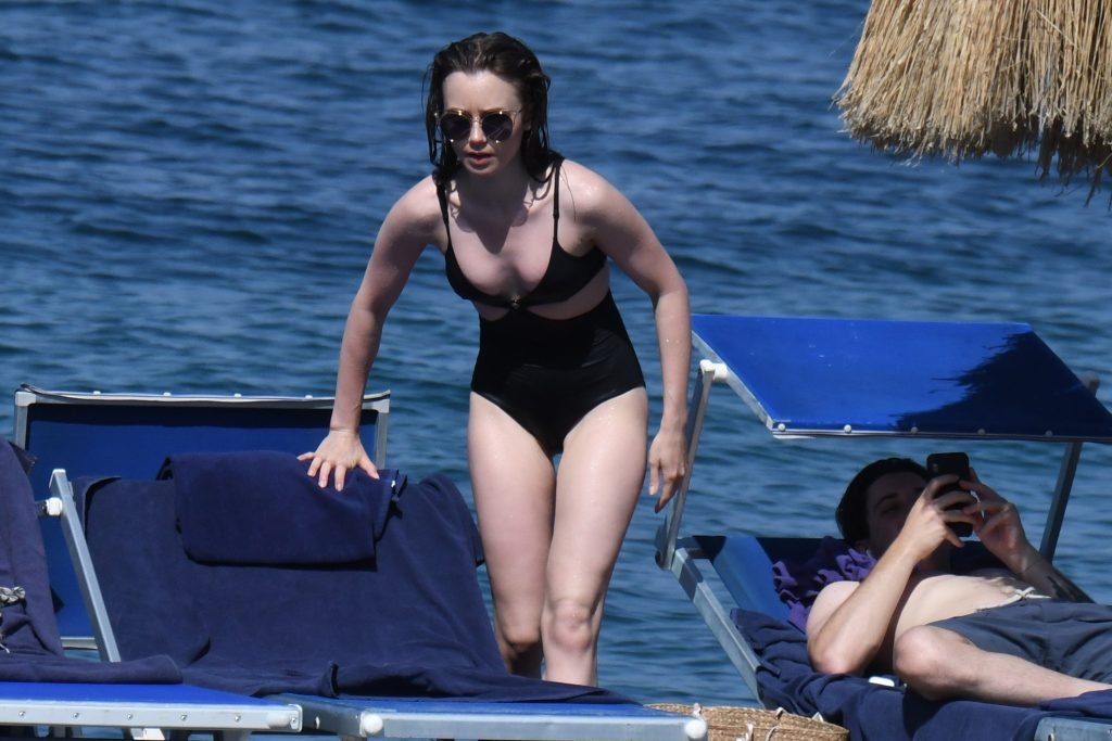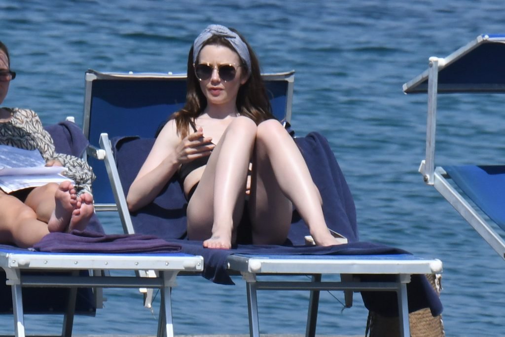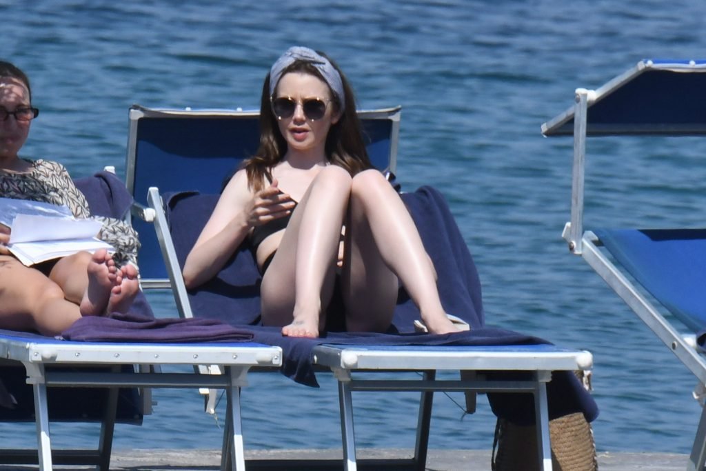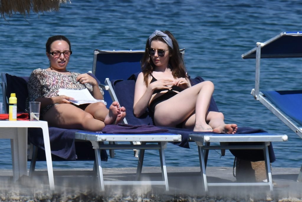 Lily Collins foi vista relaxando no Hotel Regina Isabella em Ischia Porto, Itália, 15/07/2018. A atriz de 29 anos foi vista usando um maiô preto.