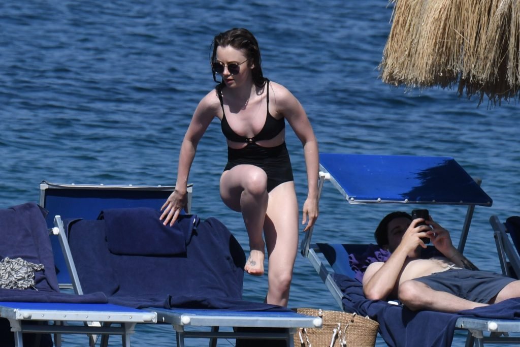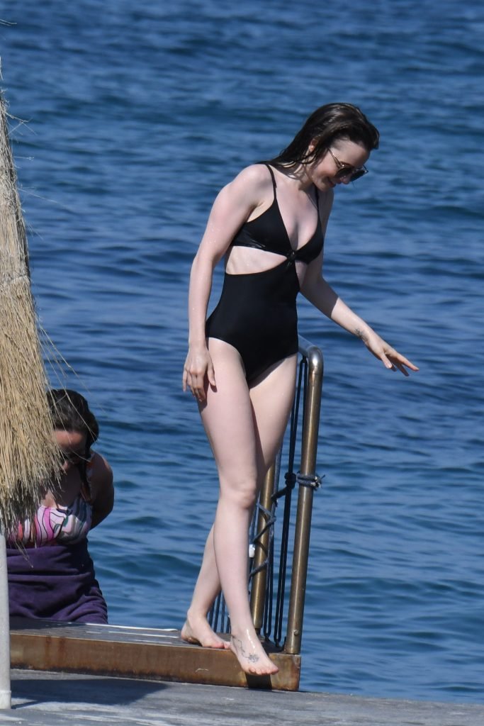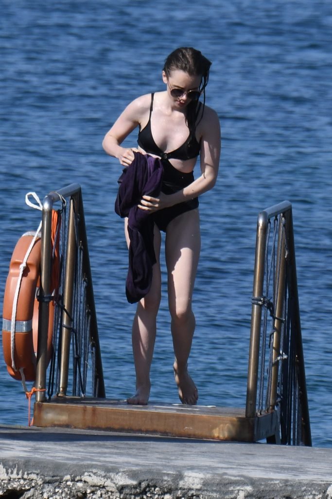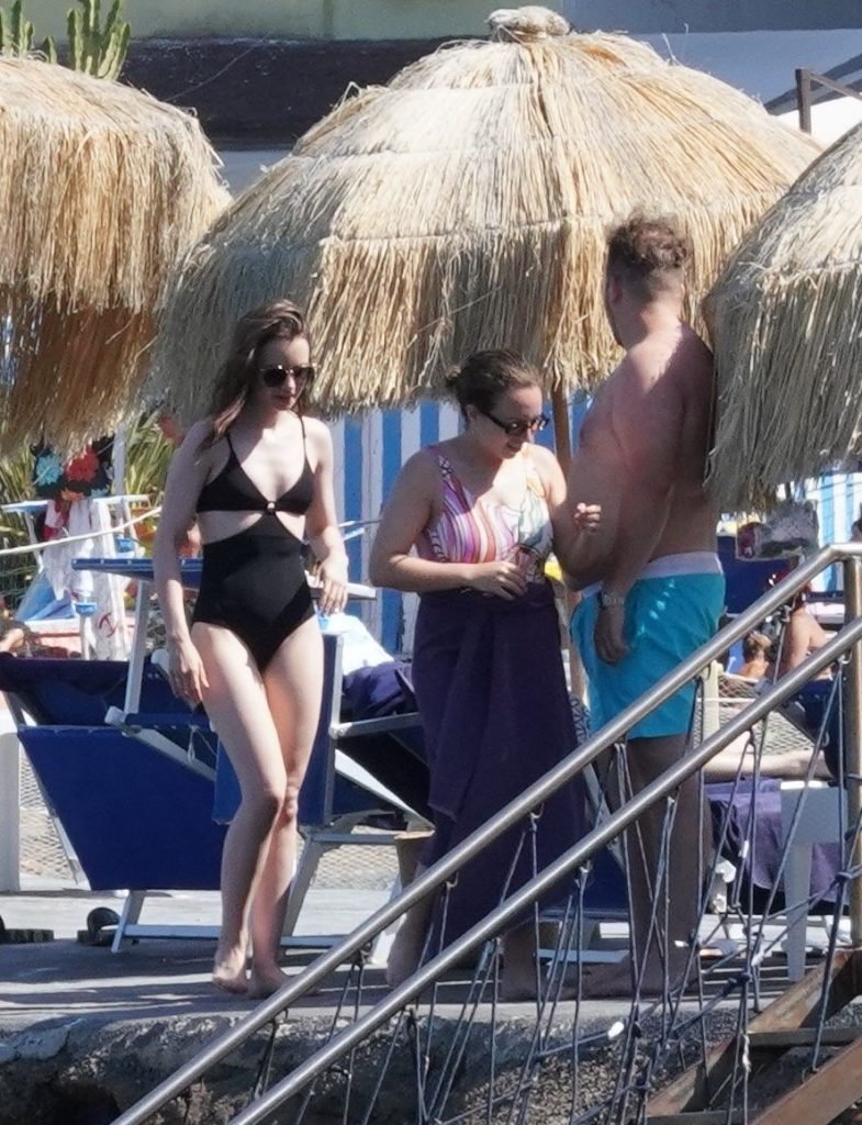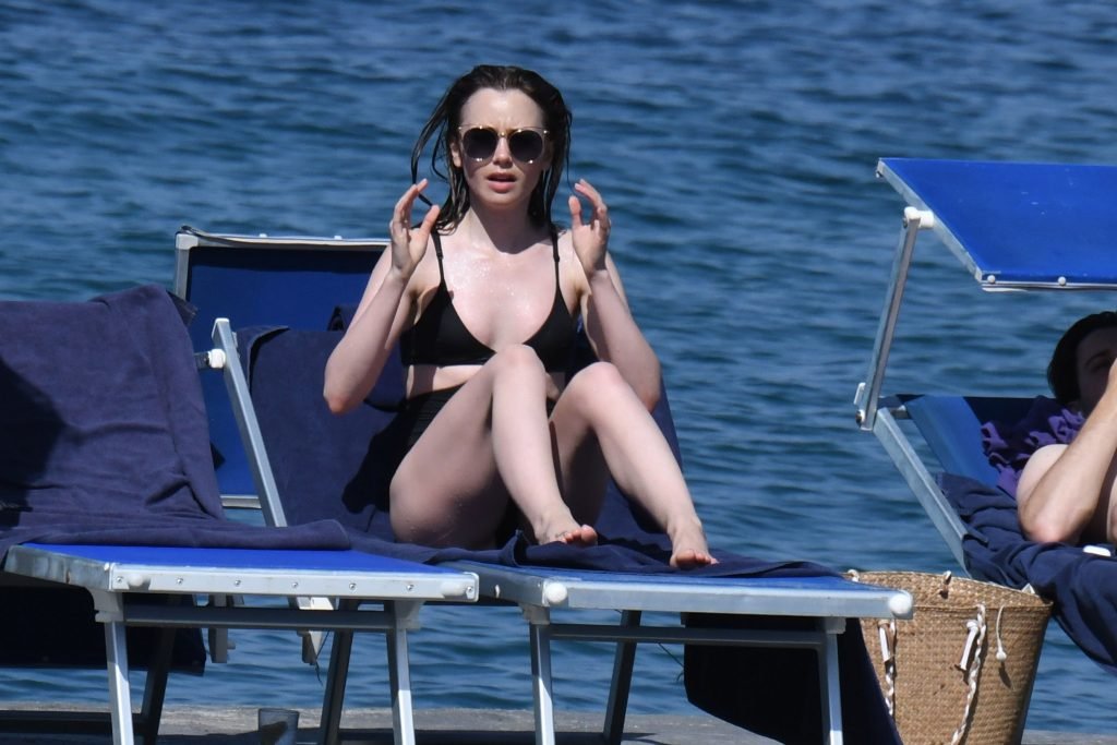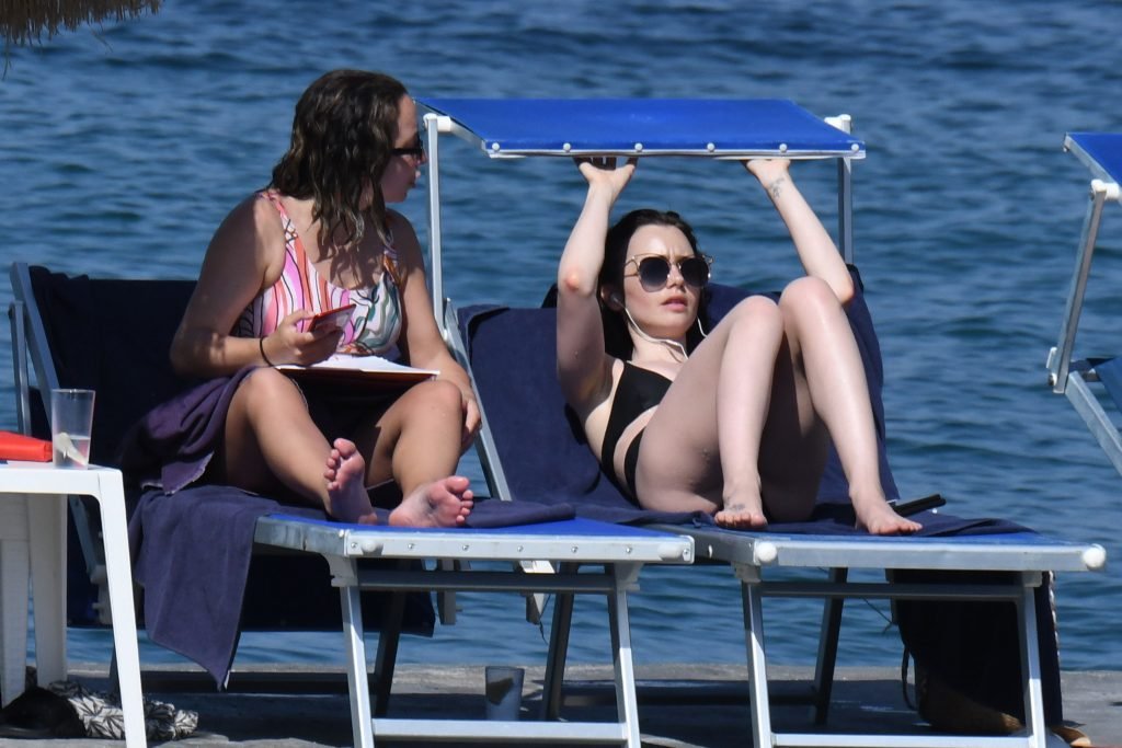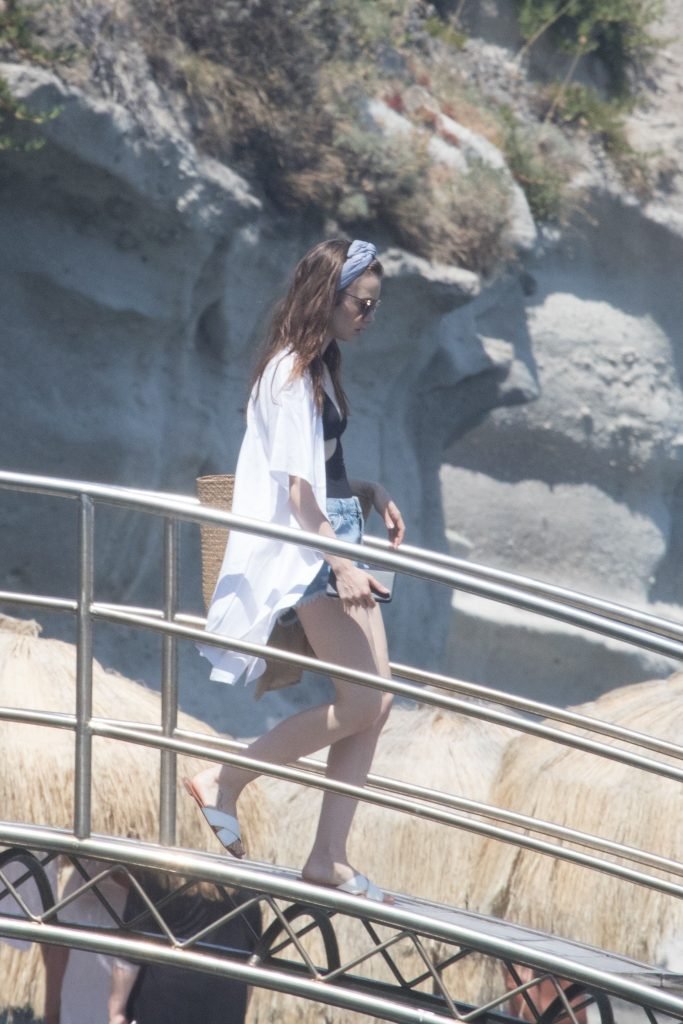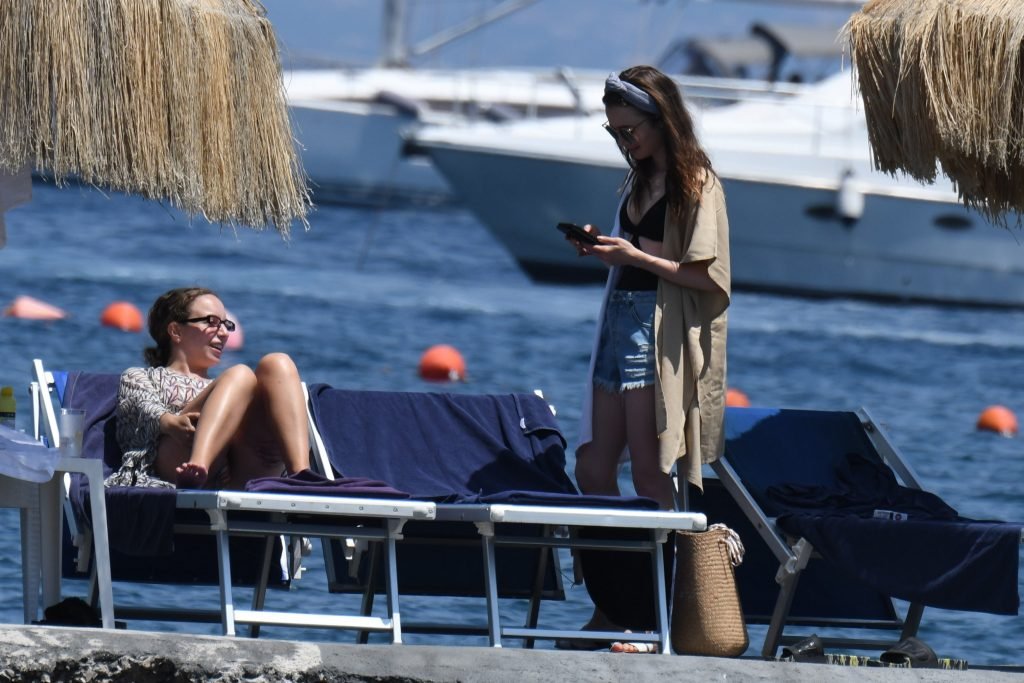 Lily Collins foi vista relaxando no Hotel Regina Isabella em Ischia Porto, Itália, 15/07/2018. A atriz de 29 anos foi vista usando um maiô preto.