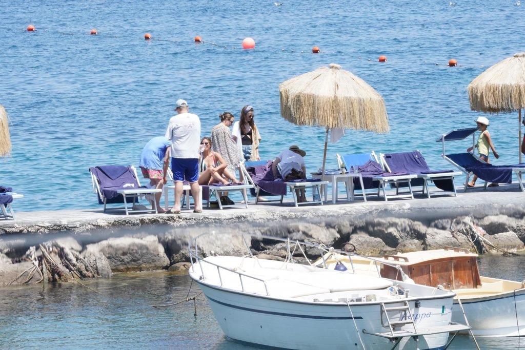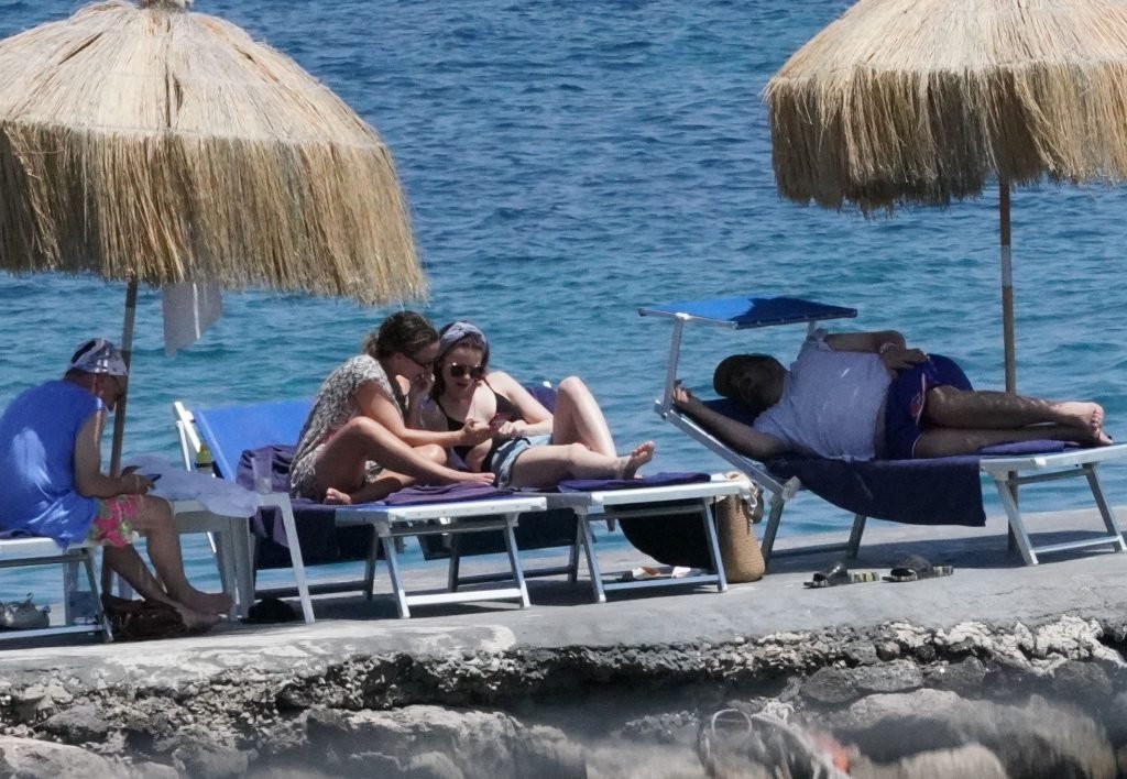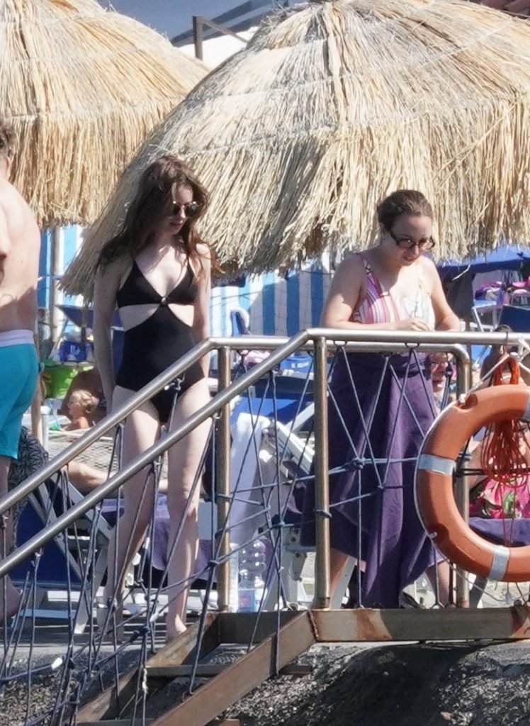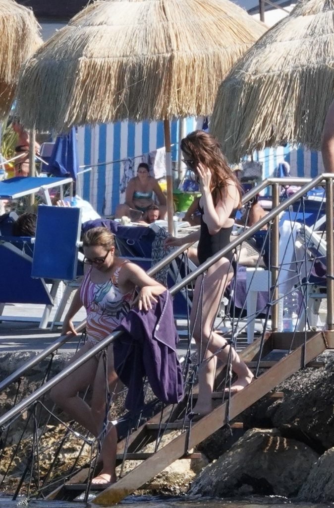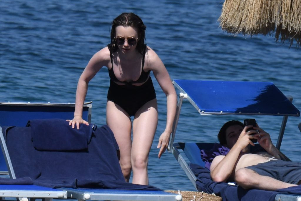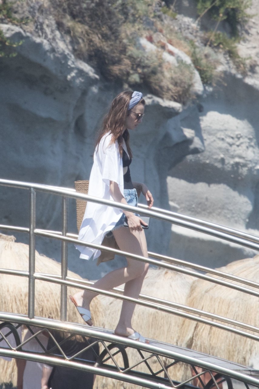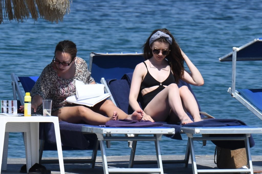 Lily Collins foi vista relaxando no Hotel Regina Isabella em Ischia Porto, Itália, 15/07/2018. A atriz de 29 anos foi vista usando um maiô preto.