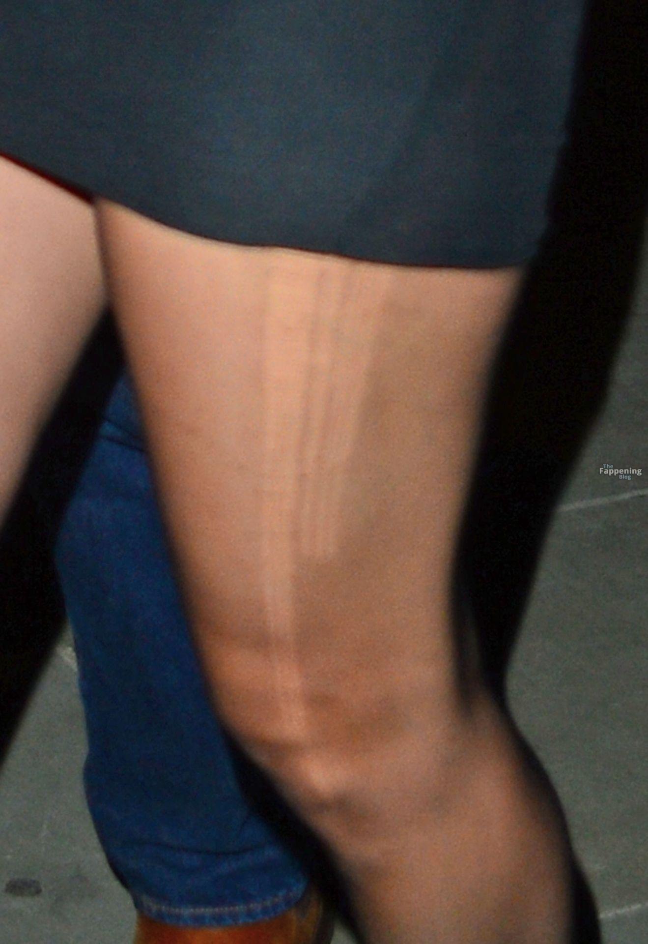 Confira as pernas em mini vestido justo, meias-calças brilhantes e um olhar provocante por baixo do vestido de Lily James enquanto ela pula da afterparty de “Swiped” em Londres.
