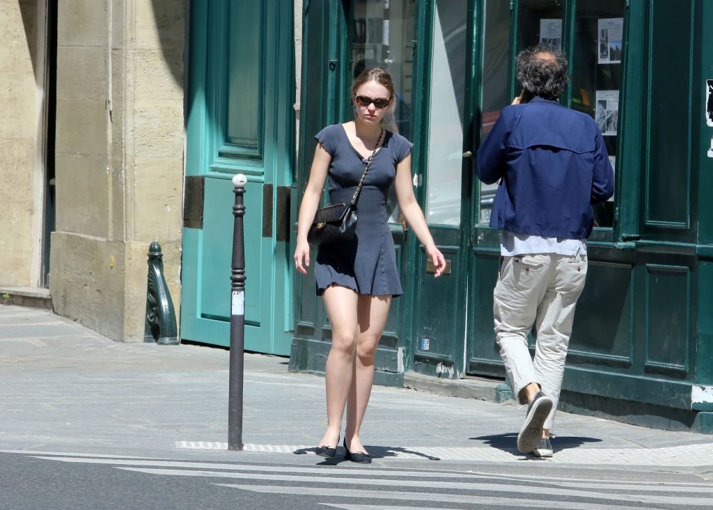 A embaixadora da Chanel, atriz e modelo Lily Rose Depp, 18 anos, parece saudável enquanto anda sem sutiã pelas ruas de Paris, em 07/05/2018. Ela usava um vestido curto que destacava seus mamilos salientes!