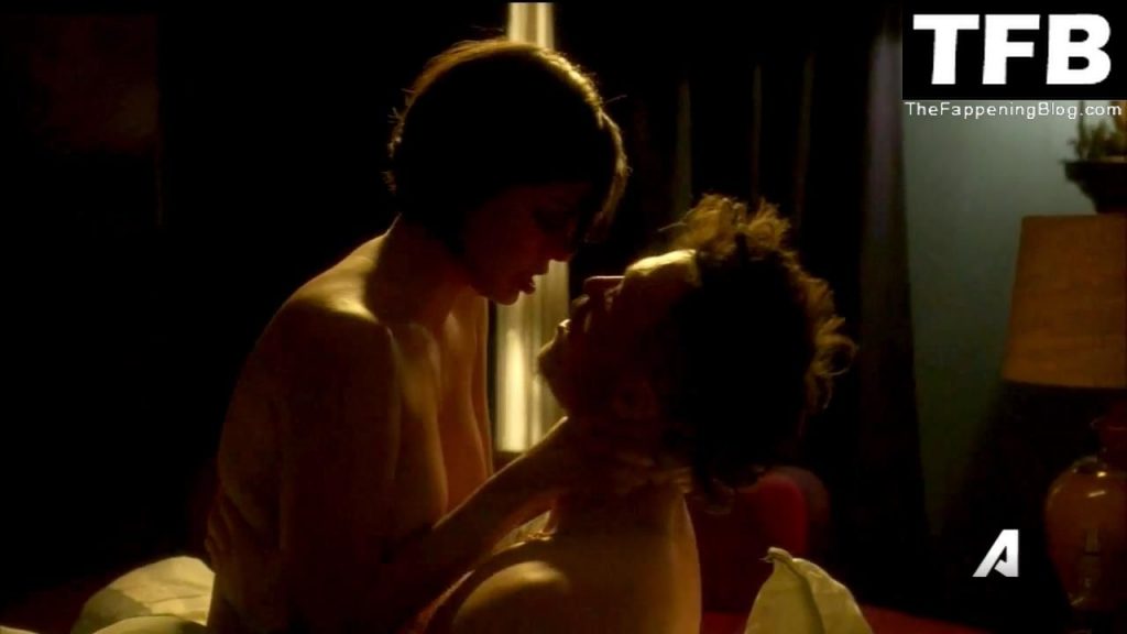 Lina Esco mostra bastante decote enquanto está topless em cima de um homem, com seus mamilos fora de vista, enquanto o monta durante esta cena de sexo.