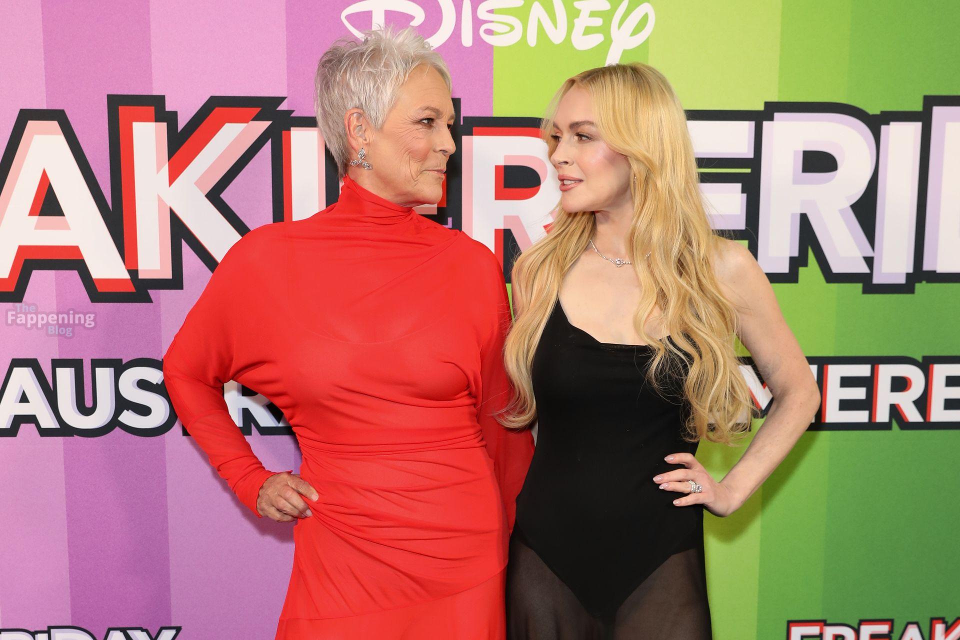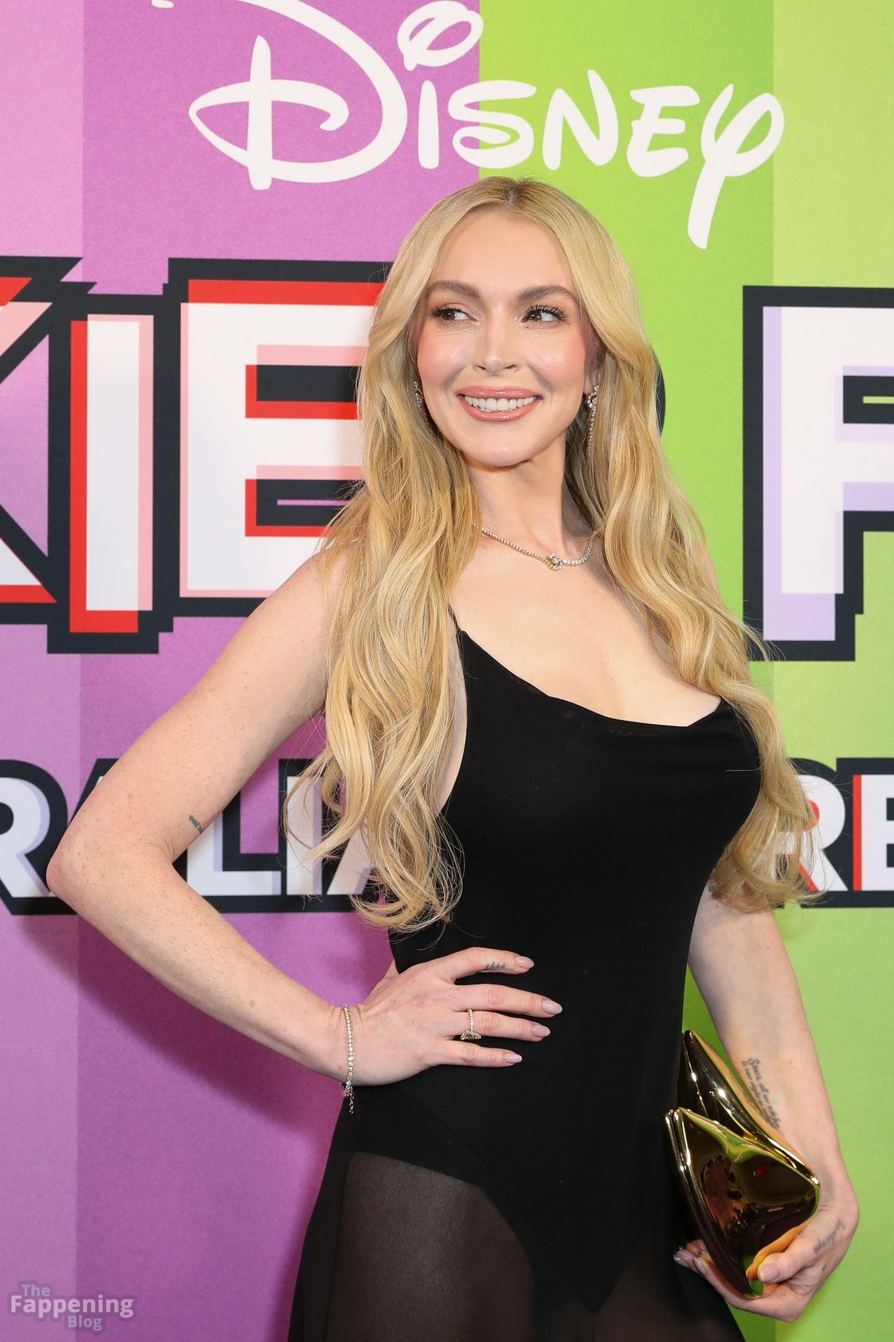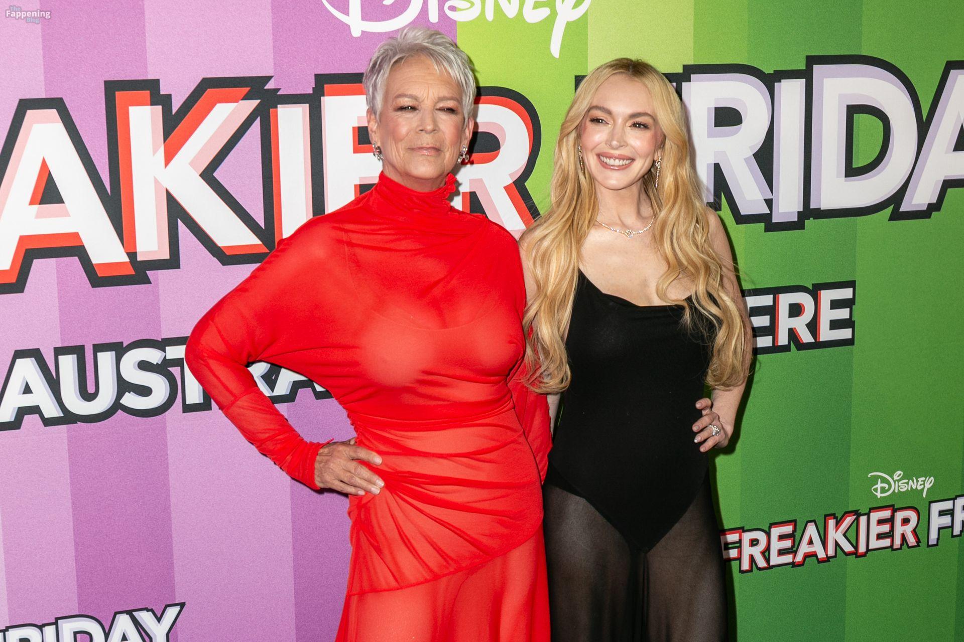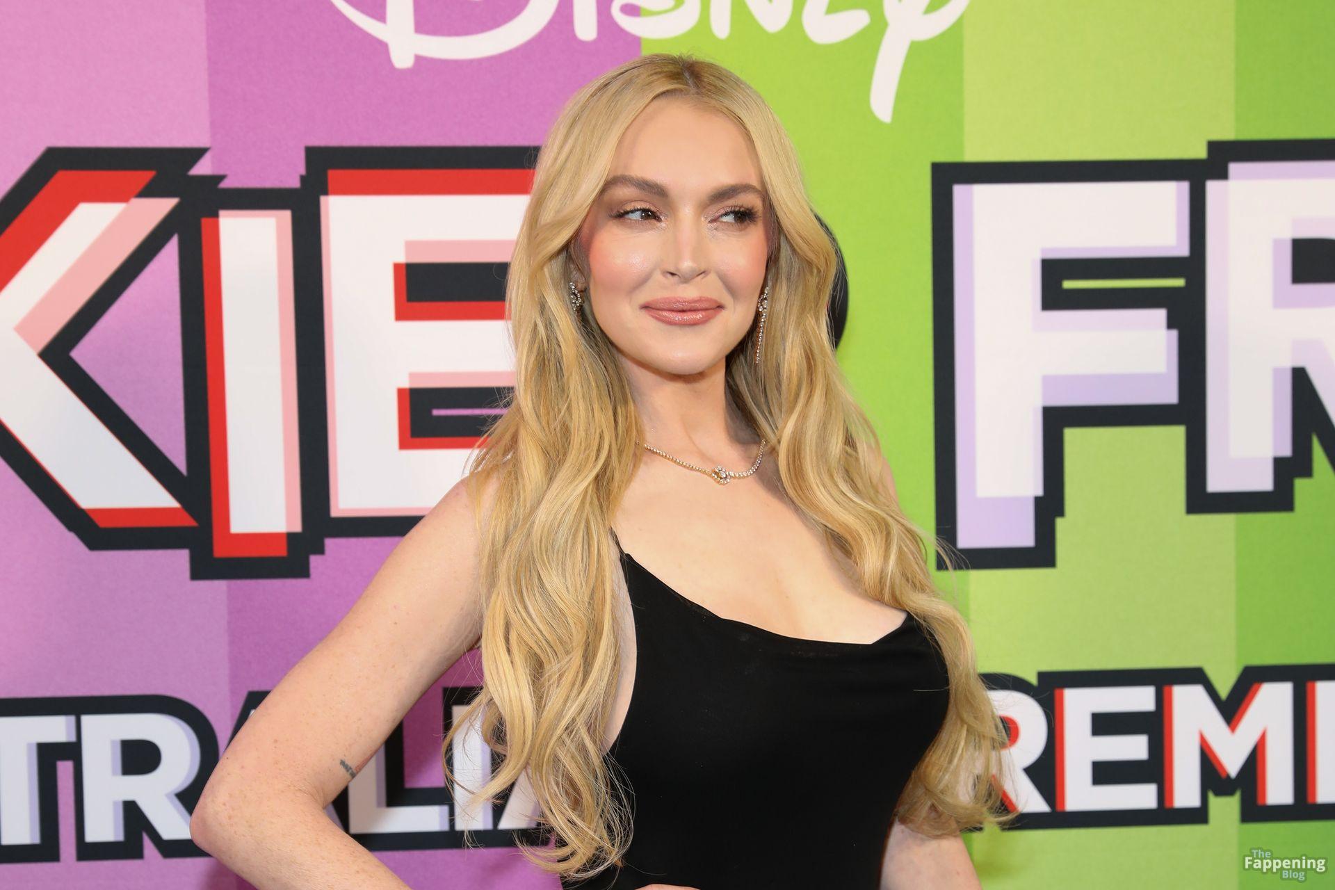 Lindsay Lohan exibe sua nova silhueta esbelta na premiere de “Freakier Friday” em Sydney, Austrália, arrasando com um vestido preto transparente.