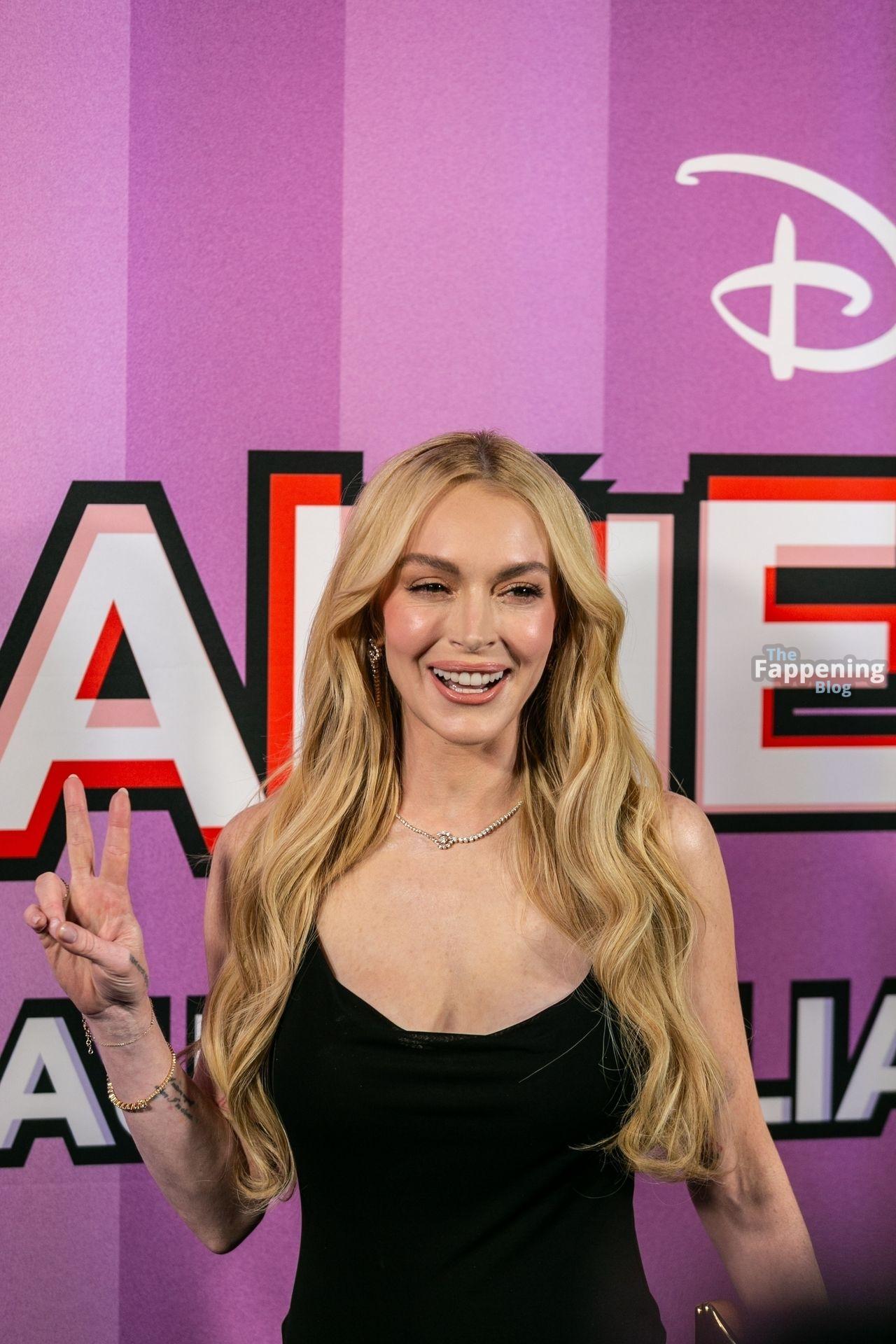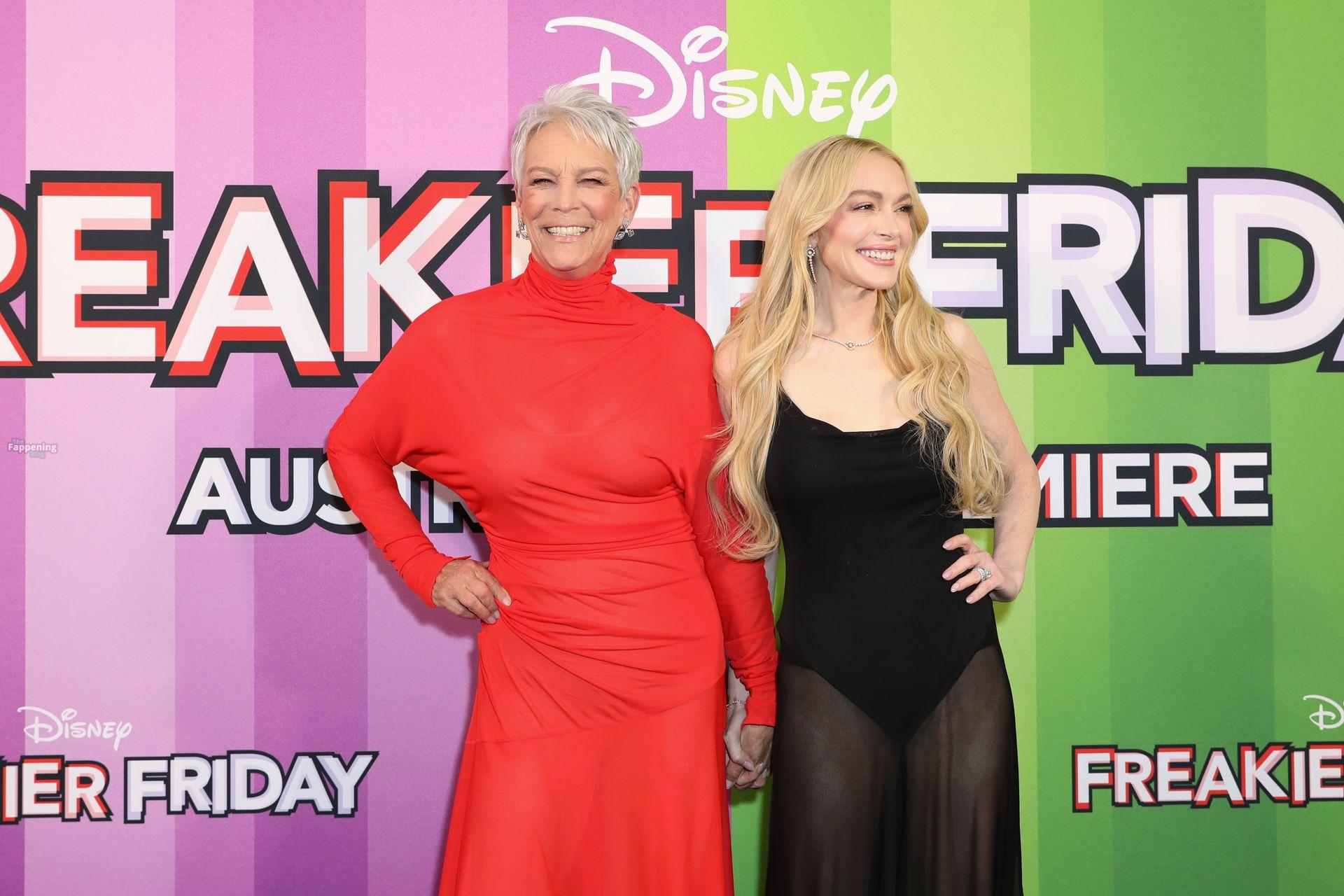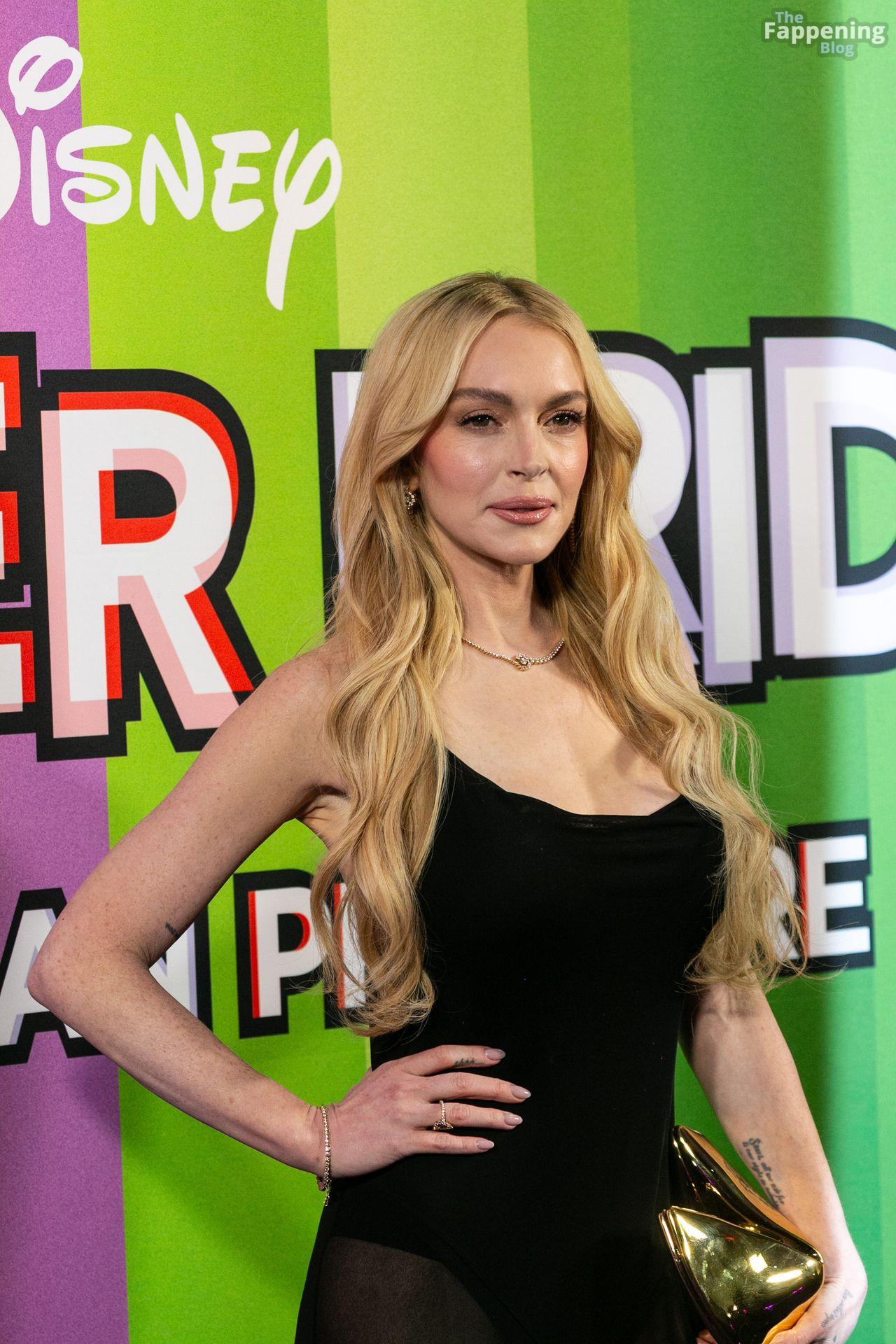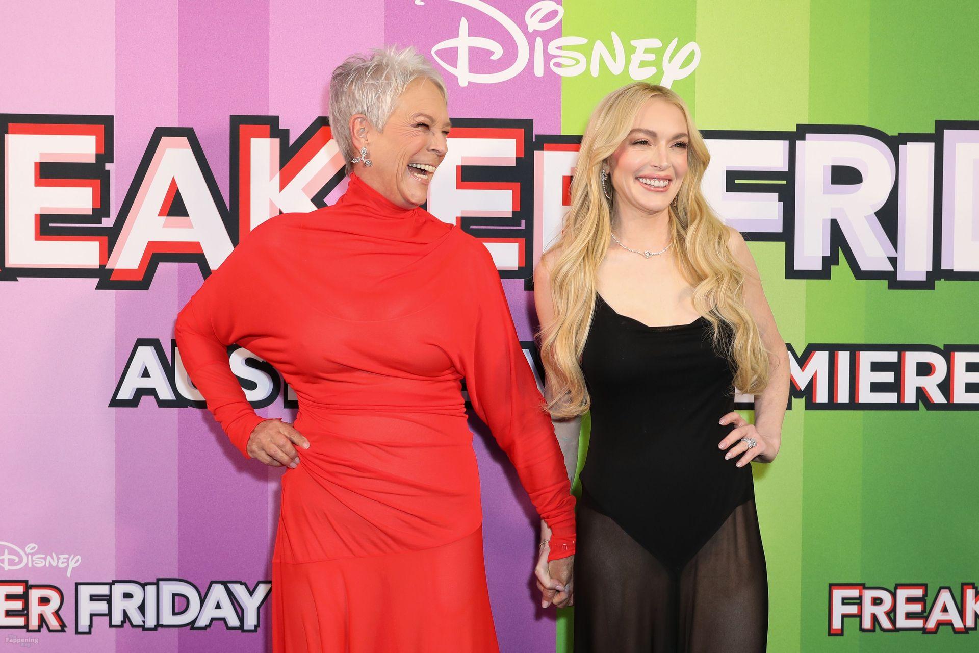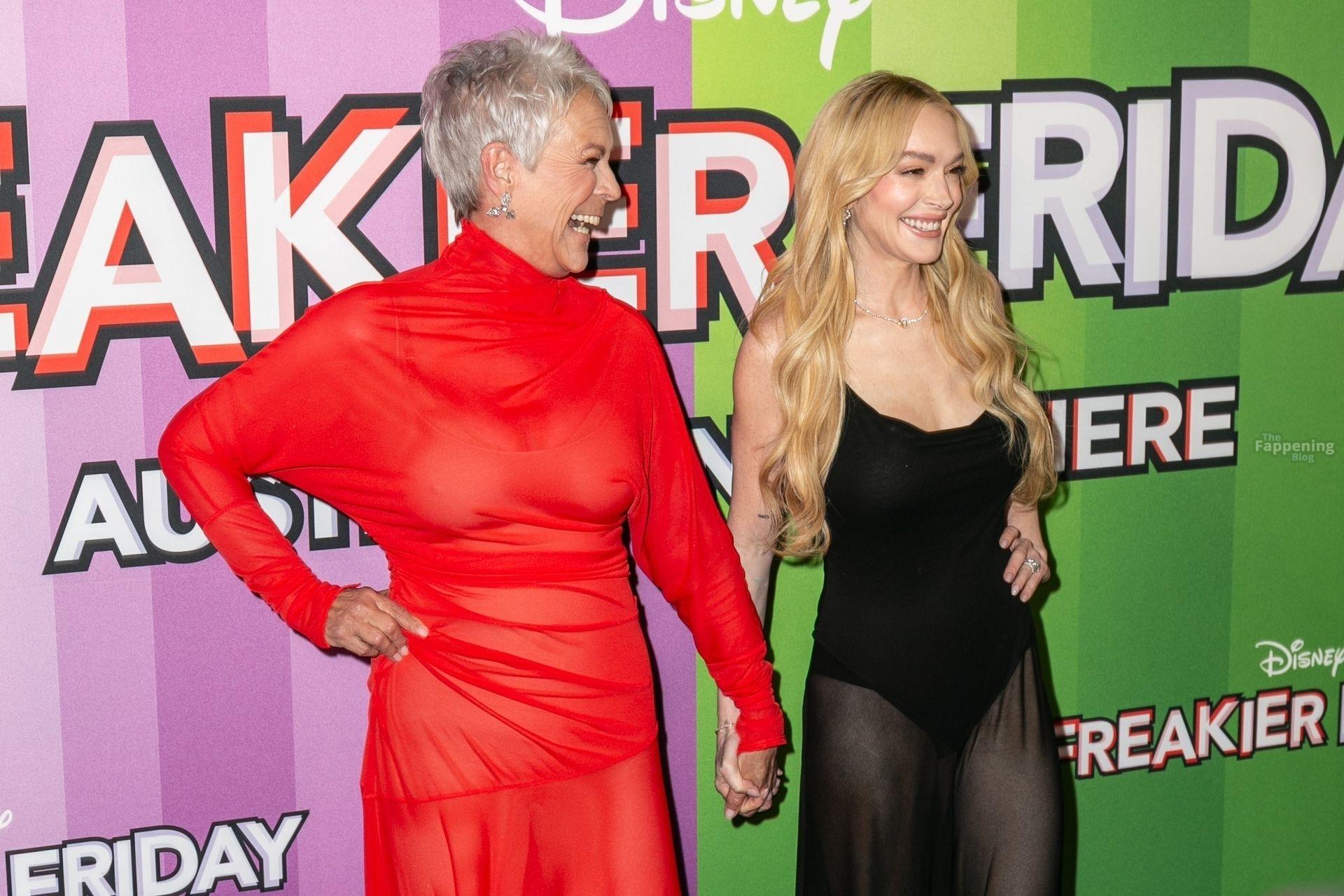 Lindsay Lohan exibe sua nova silhueta esbelta na premiere de “Freakier Friday” em Sydney, Austrália, arrasando com um vestido preto transparente.