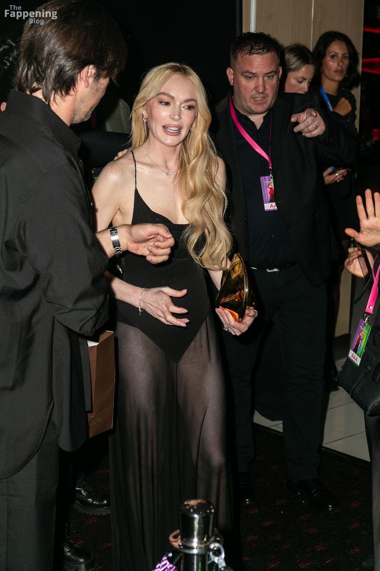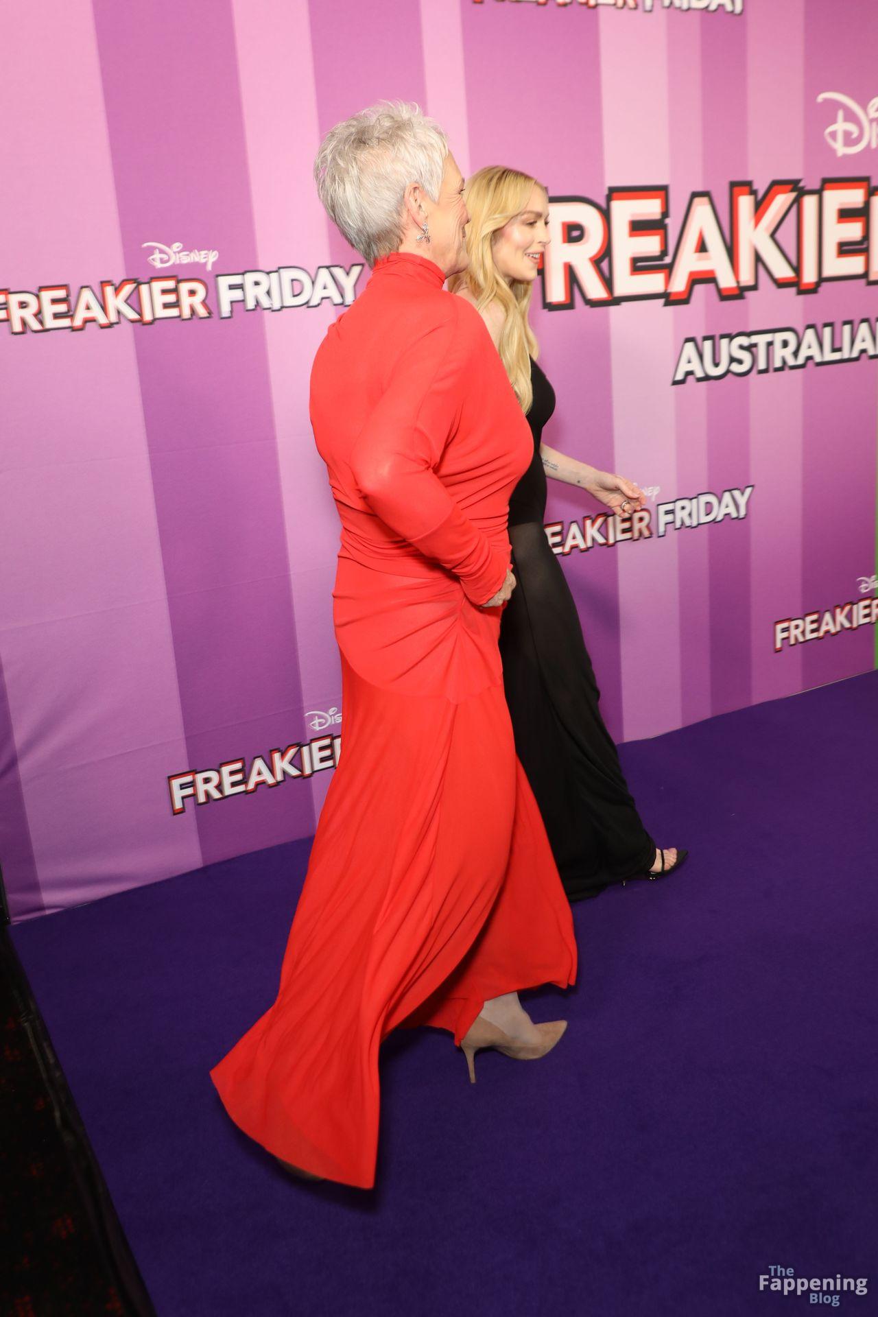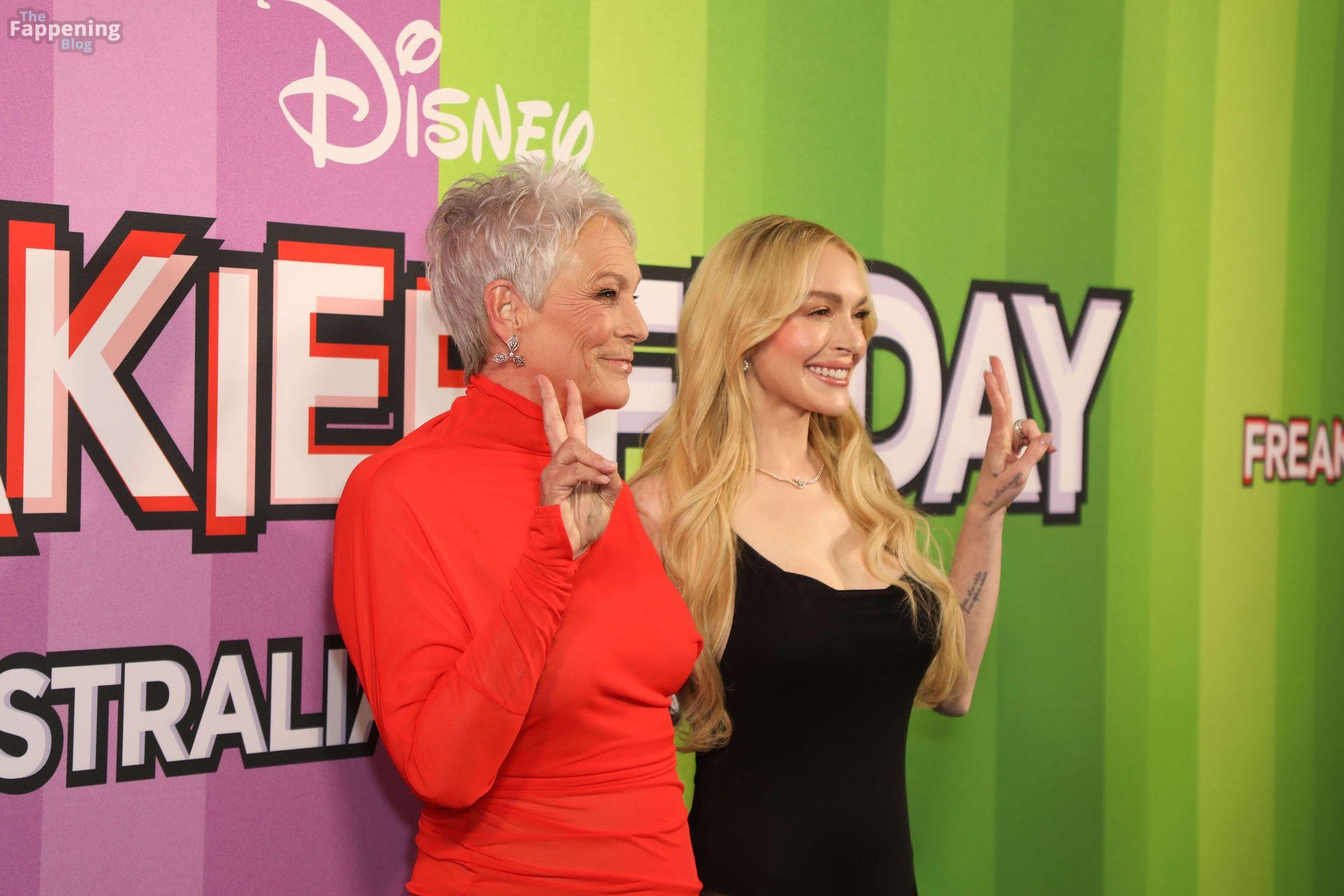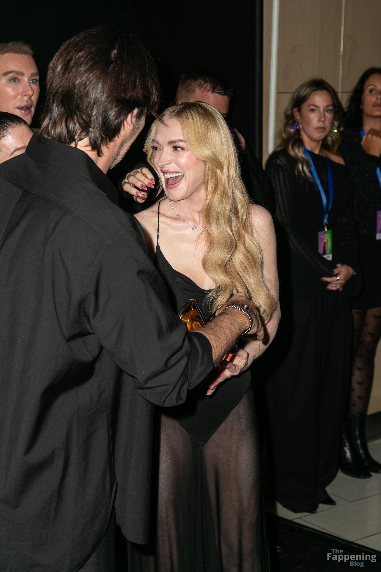 Lindsay Lohan exibe sua nova silhueta esbelta na premiere de “Freakier Friday” em Sydney, Austrália, arrasando com um vestido preto transparente.