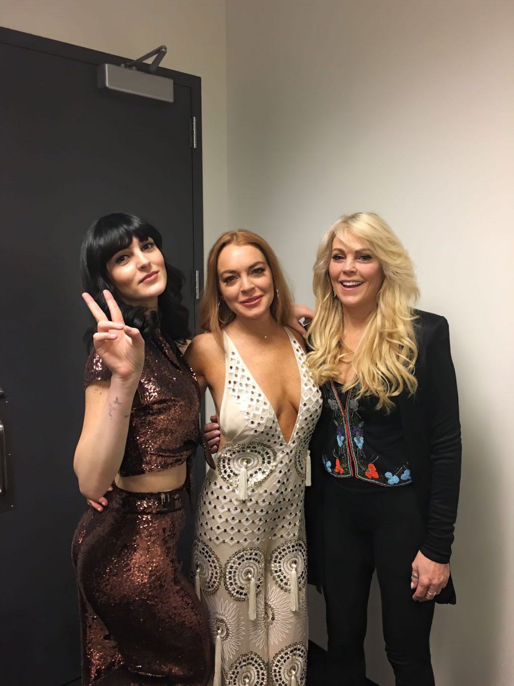 Olha essa foto com as três. Lindsay Lohan parece tão velha quanto a mãe dela! Poxa, se eu não soubesse melhor, diria que Lindsay é a mãe e Dina é uma tia mais jovem.