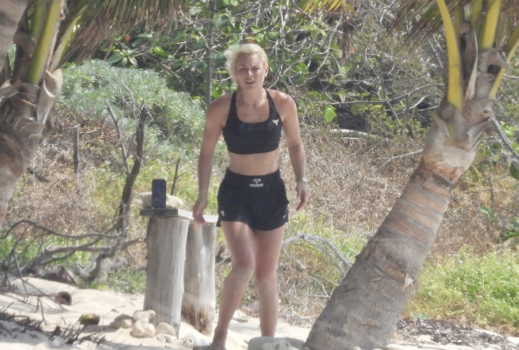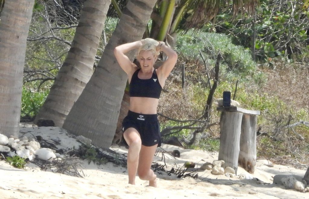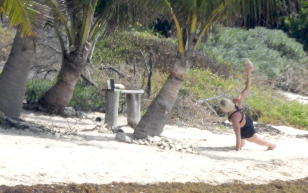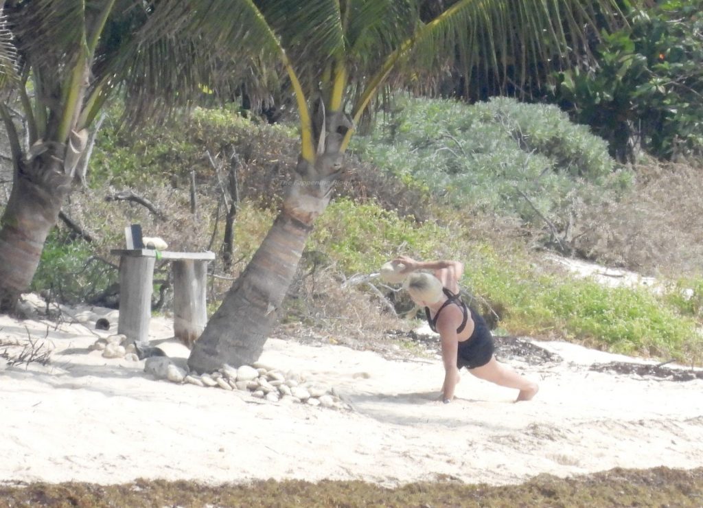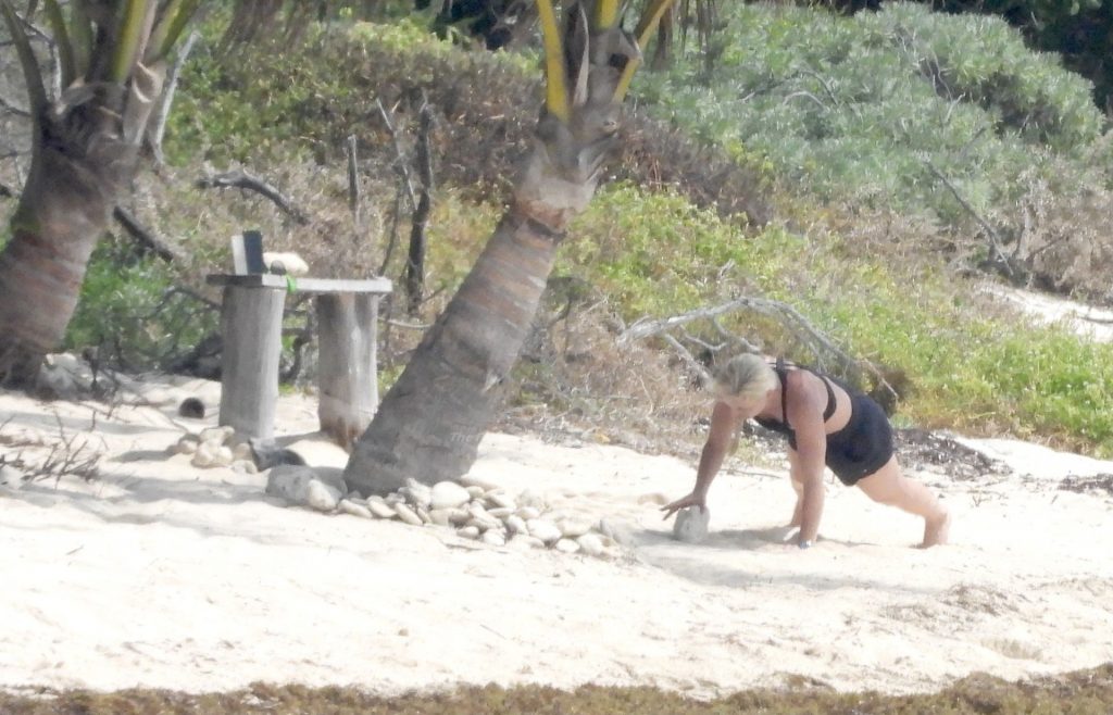Ex-campeã de esqui Lindsey Vonn mantém a forma nas suas férias no México. A ex-campeã mundial de esqui, de 36 anos, foi fotografada fazendo exercícios durante um treino em Tulum, 20/04/2021.