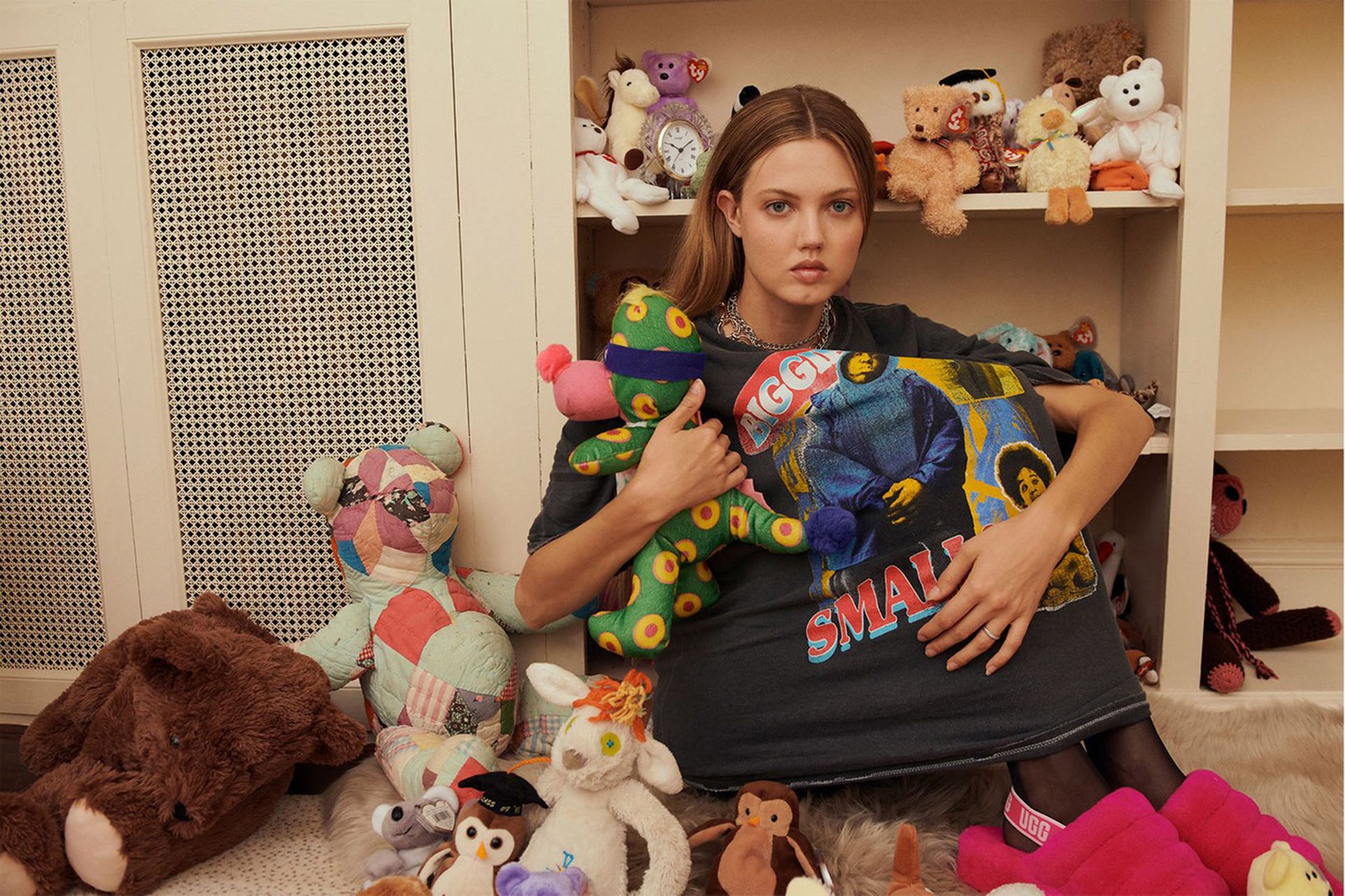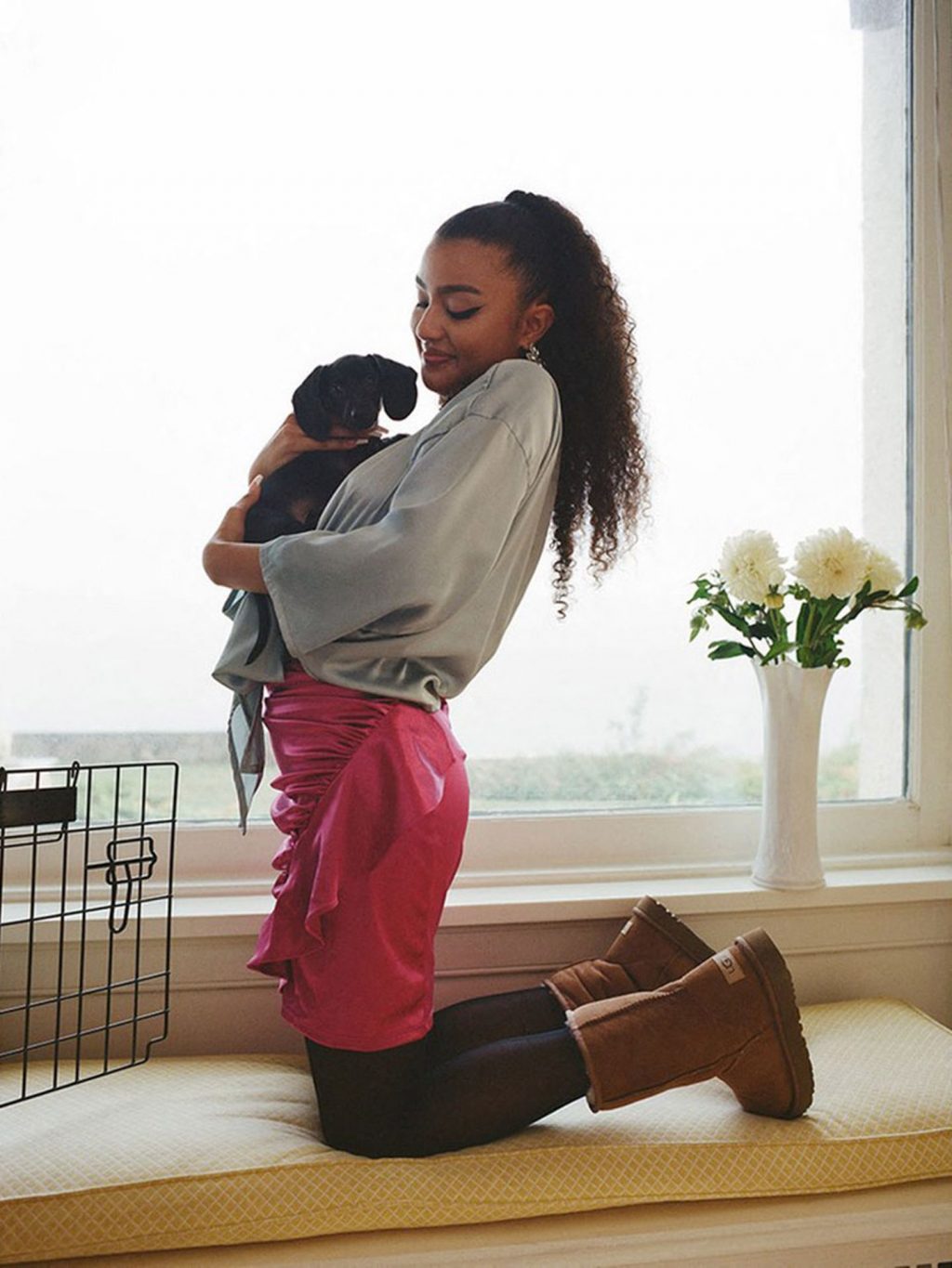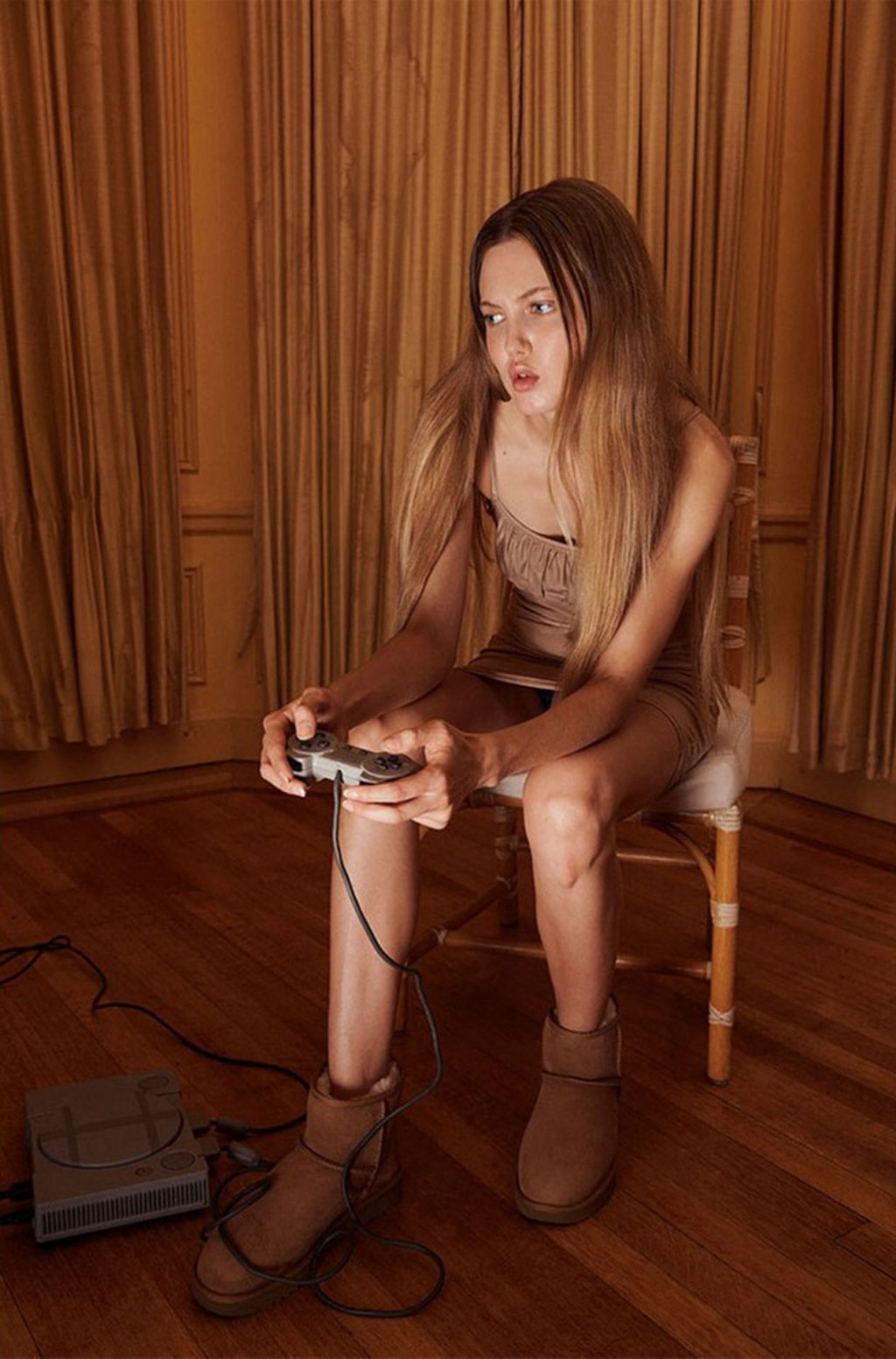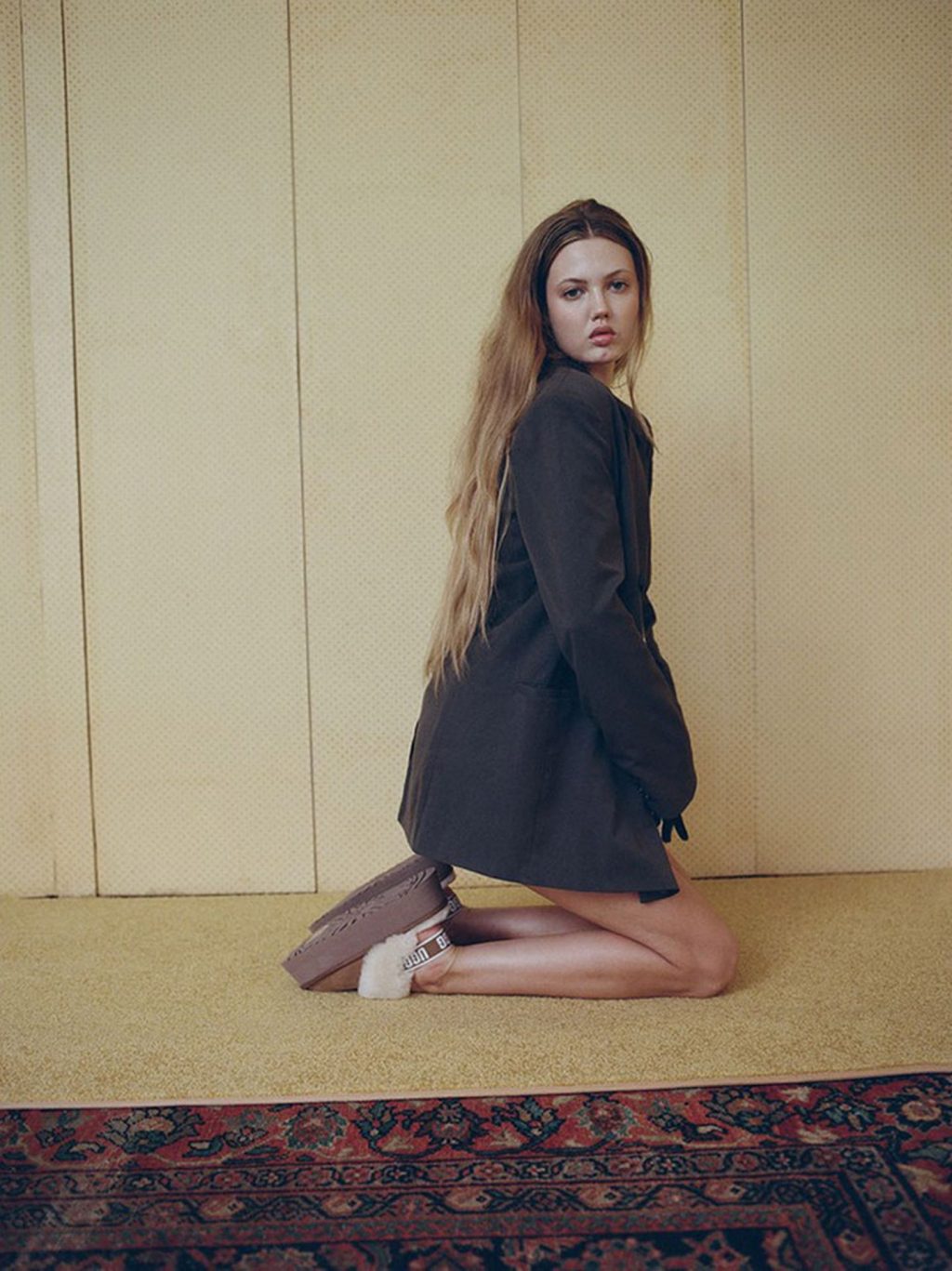 Junto com calçados nostálgicos e feios-chiques de marcas como Crocs, os sapatos aconchegantes da UGG também estão voltando à moda à medida que entramos nas estações mais frias. Em um editorial de Outono/Inverno 2020 da Urban Outfitters, alguns dos sapatos mais icônicos da marca do sul da Califórnia são combinados tanto com vestidos quanto com roupas confortáveis para destacar a versatilidade. Lindsey Wixson veste um vestido rosa franzido com botas Classic Mini II, enquanto Ama Elsesser usa uma versão azul celeste com um conjunto de paetês. Em outros momentos, as modelos aparecem usando silhuetas características como a sandália Funkette, o tamanco Aubriana, o chukka Neumel e o design Fluff Yeah.