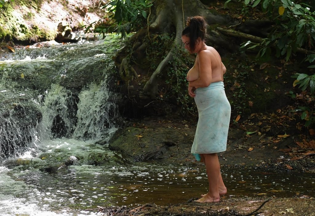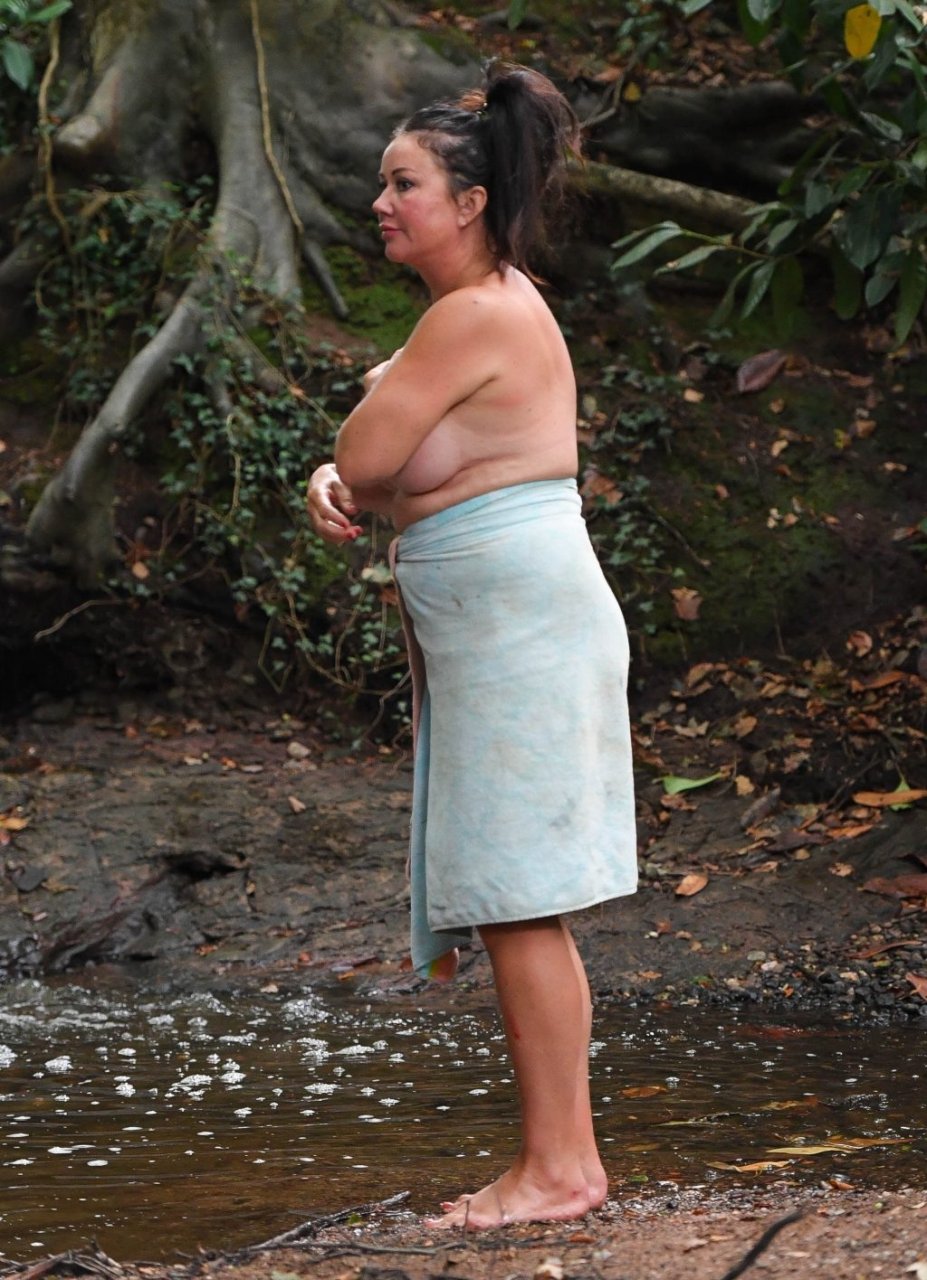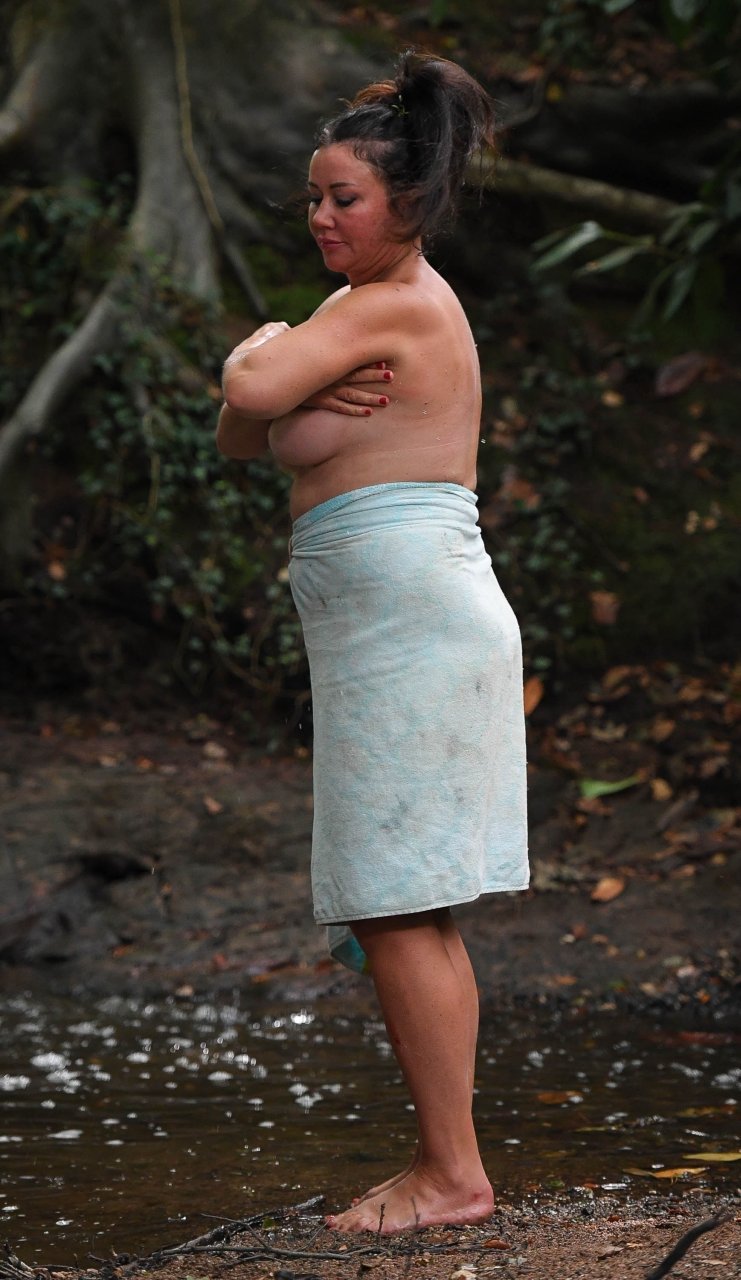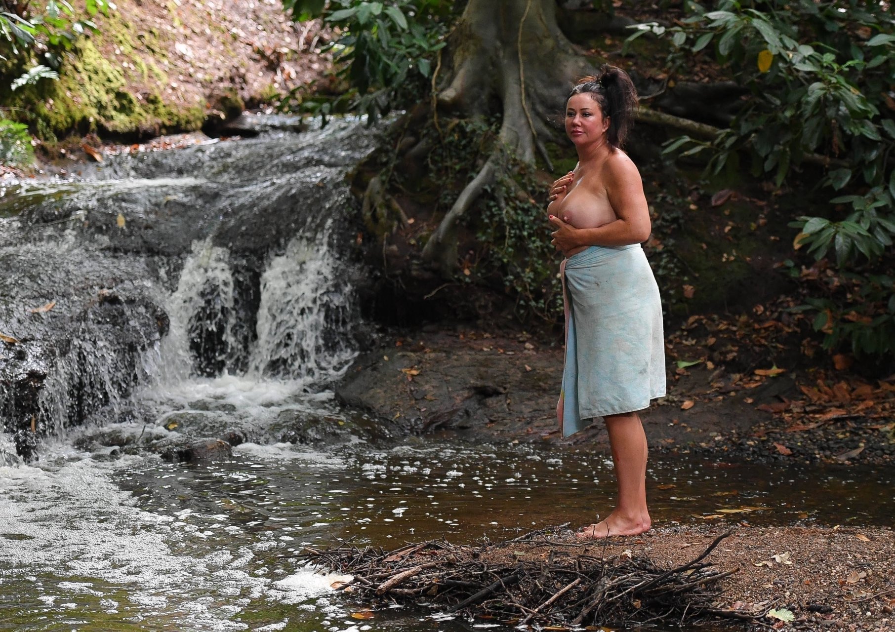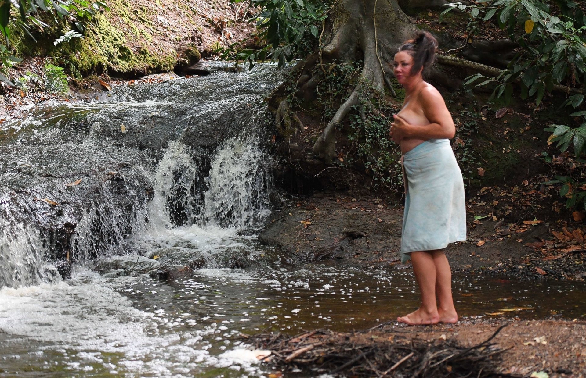 A personalidade de reality show Lisa Appleton (50) estava se lavando em um riacho ao lado de sua casa na árvore em Shropshire, onde ela agora mora após passar por tempos difíceis, 30/08/2018.