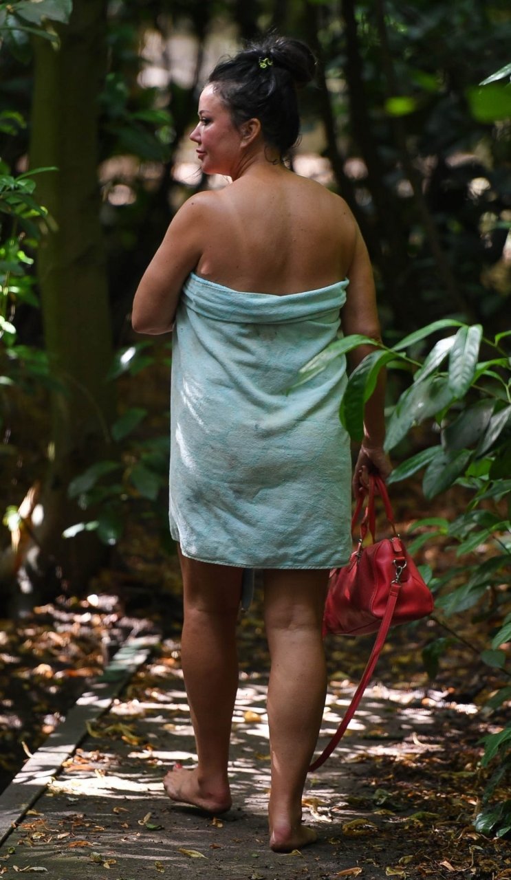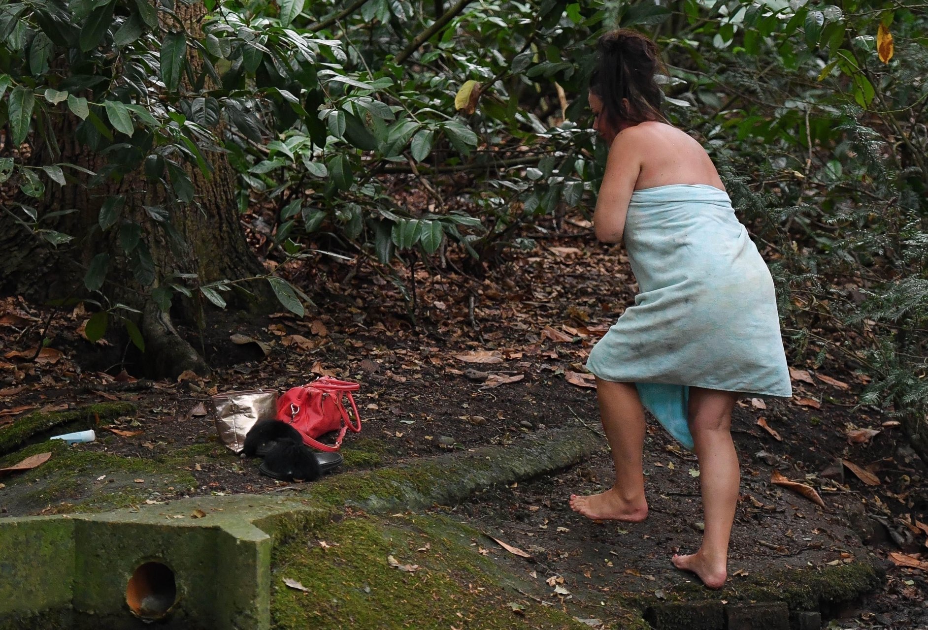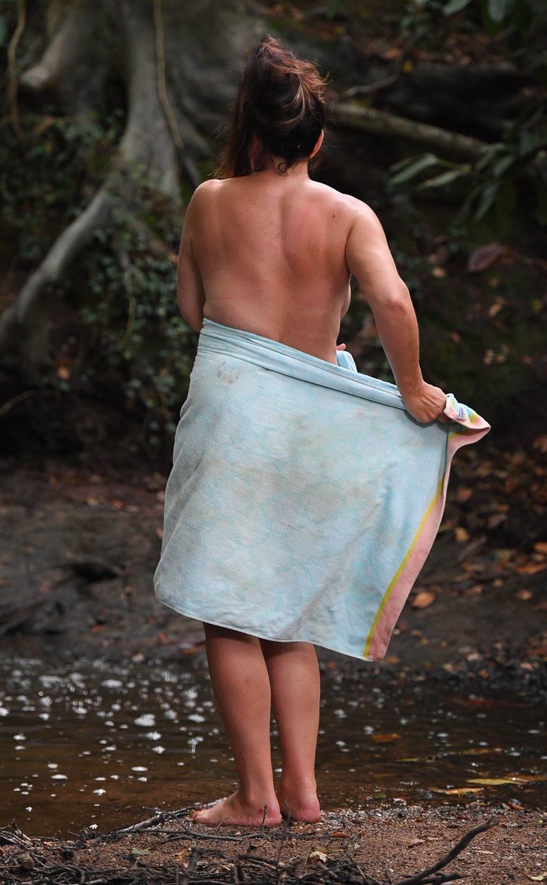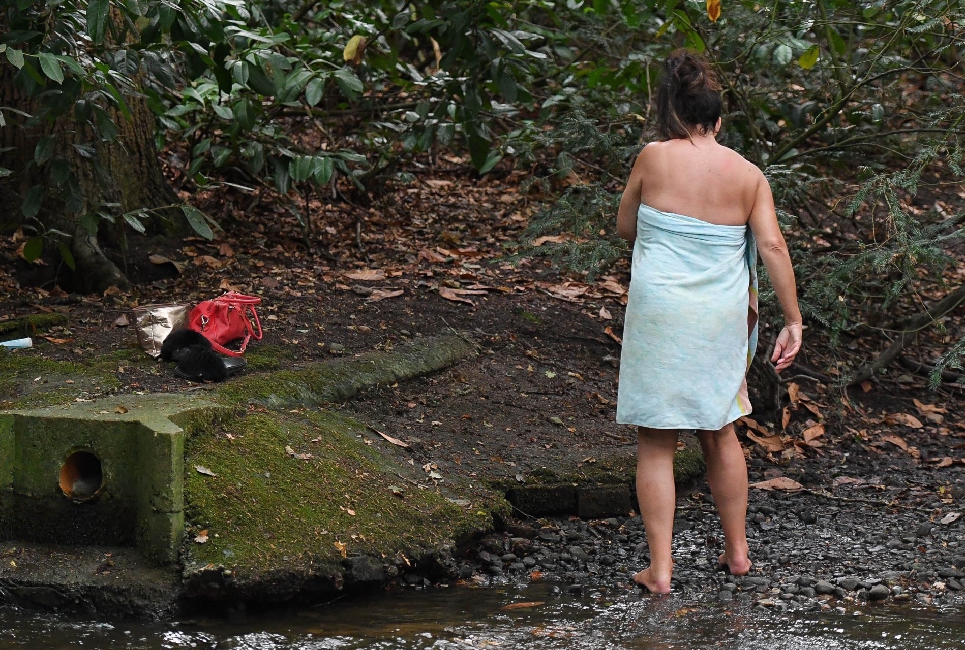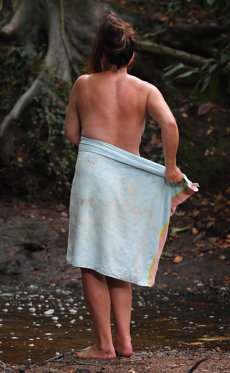 A personalidade de reality show Lisa Appleton (50) estava se lavando em um riacho ao lado de sua casa na árvore em Shropshire, onde ela agora mora após passar por tempos difíceis, 30/08/2018.