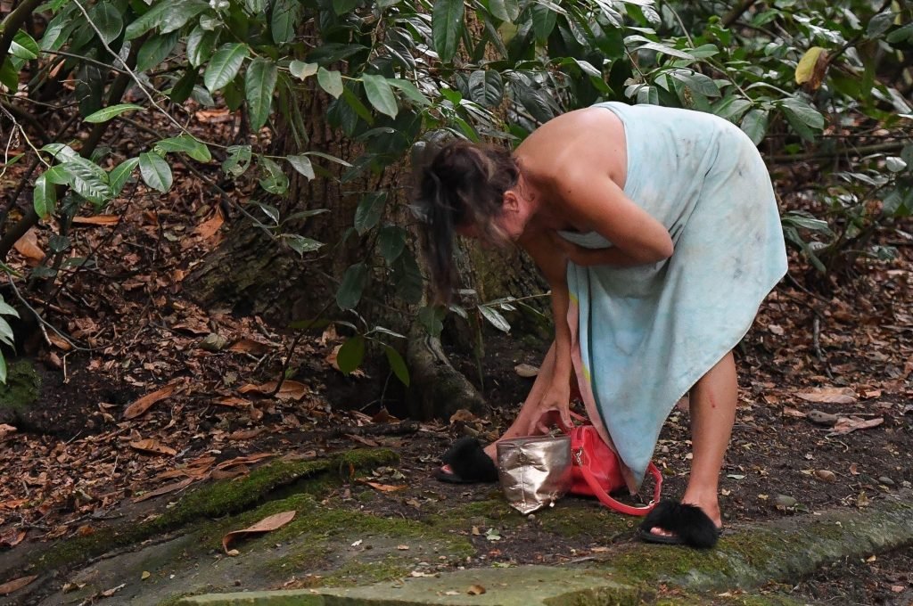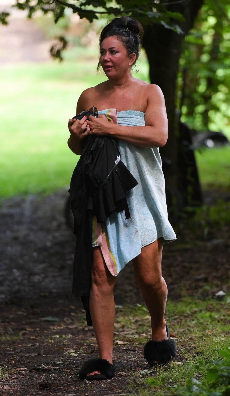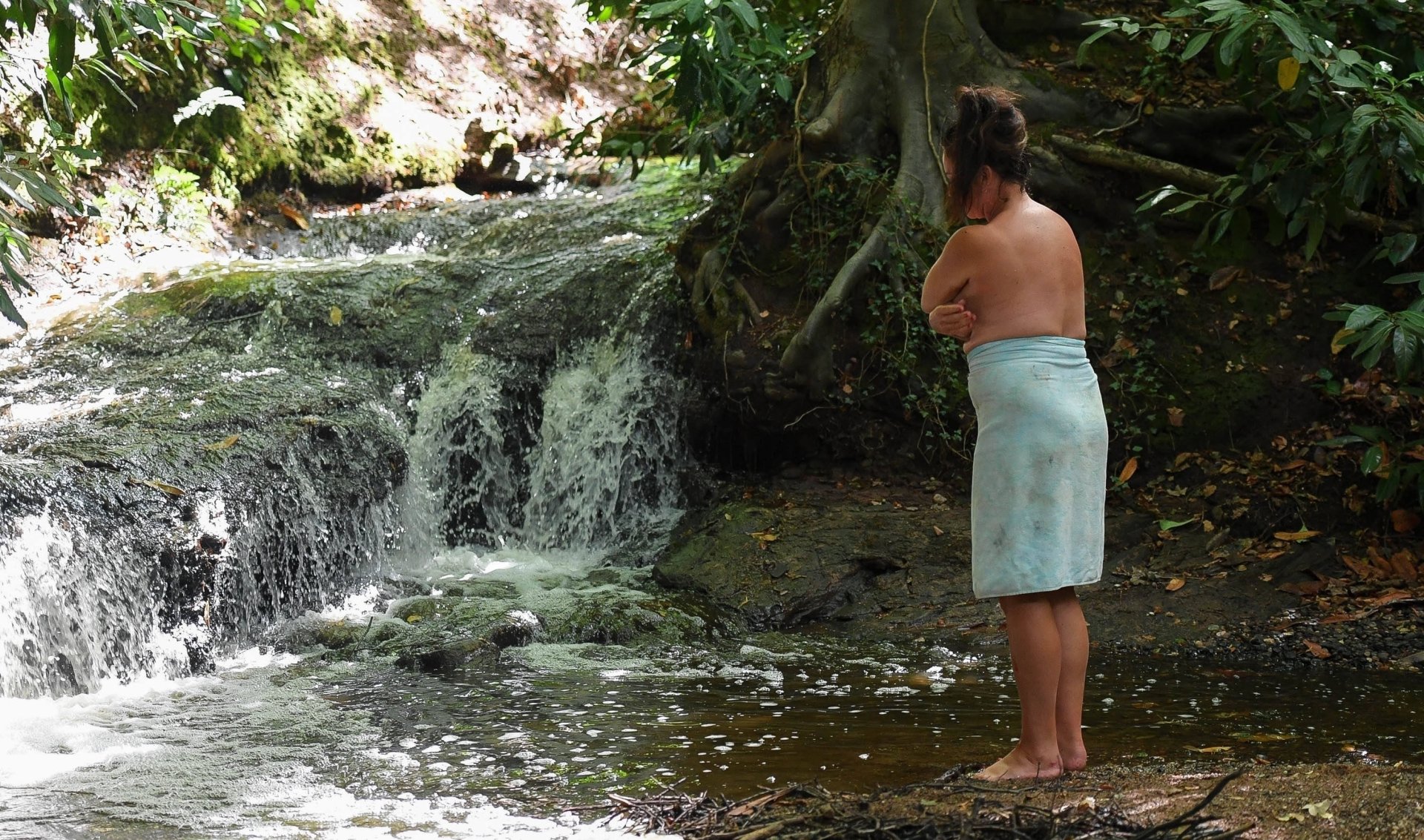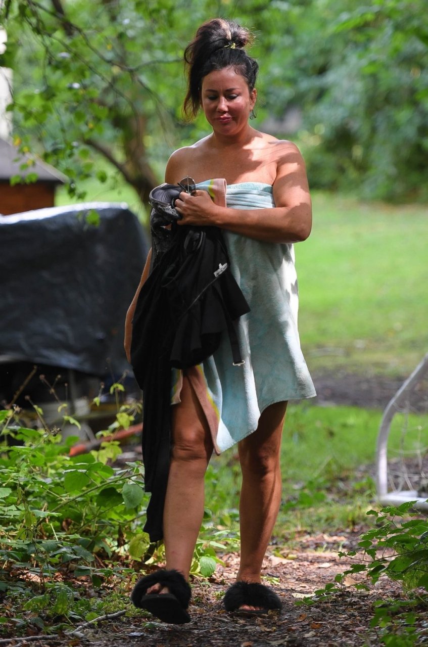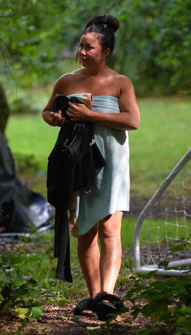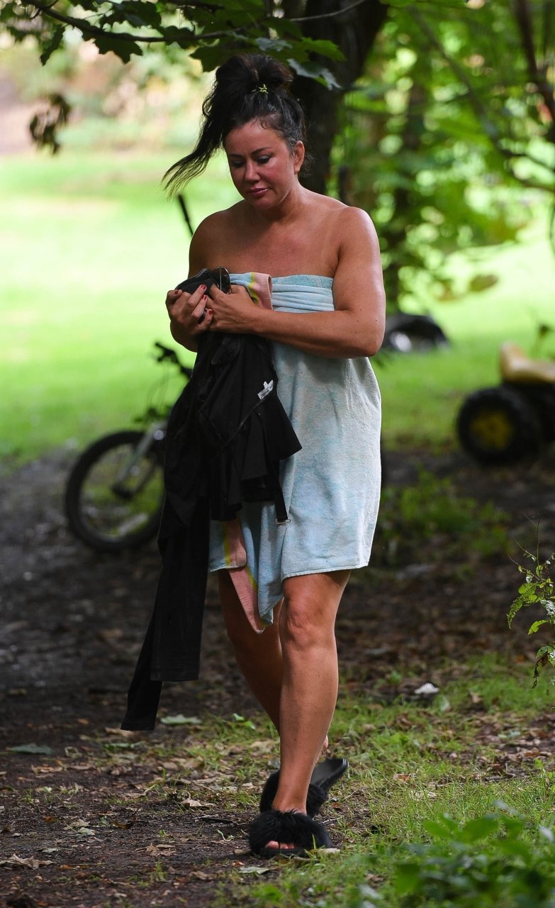 A personalidade de reality show Lisa Appleton (50) estava se lavando em um riacho ao lado de sua casa na árvore em Shropshire, onde ela agora mora após passar por tempos difíceis, 30/08/2018.