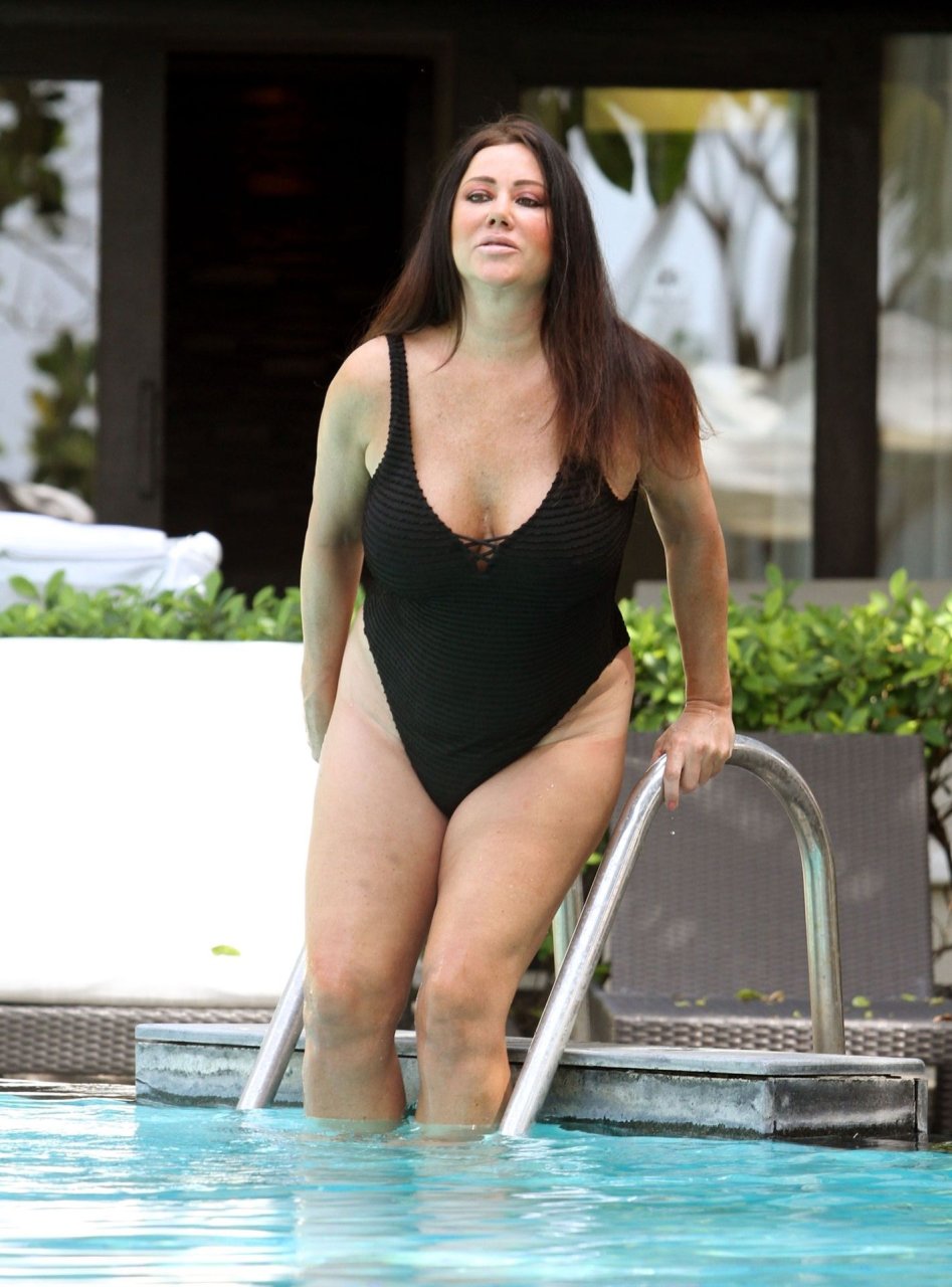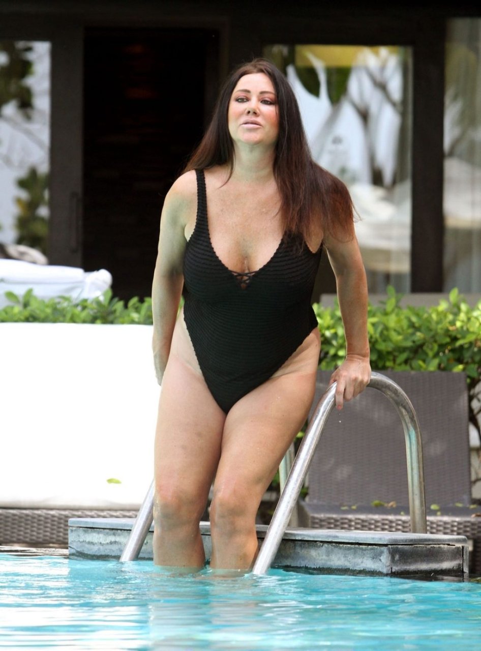 Relaxando à beira da piscina de seu resort de luxo no hotel Impiana em Patong, a ex-estrela do “Big Brother” Lisa Appleton usava um maiô preto sexy enquanto estava em modo de férias no extremo oriente e se recuperando de um procedimento de lifting facial e levantamento das pálpebras no valor de £1.200, junto com lipoaspiração no estômago, queixo e pescoço.