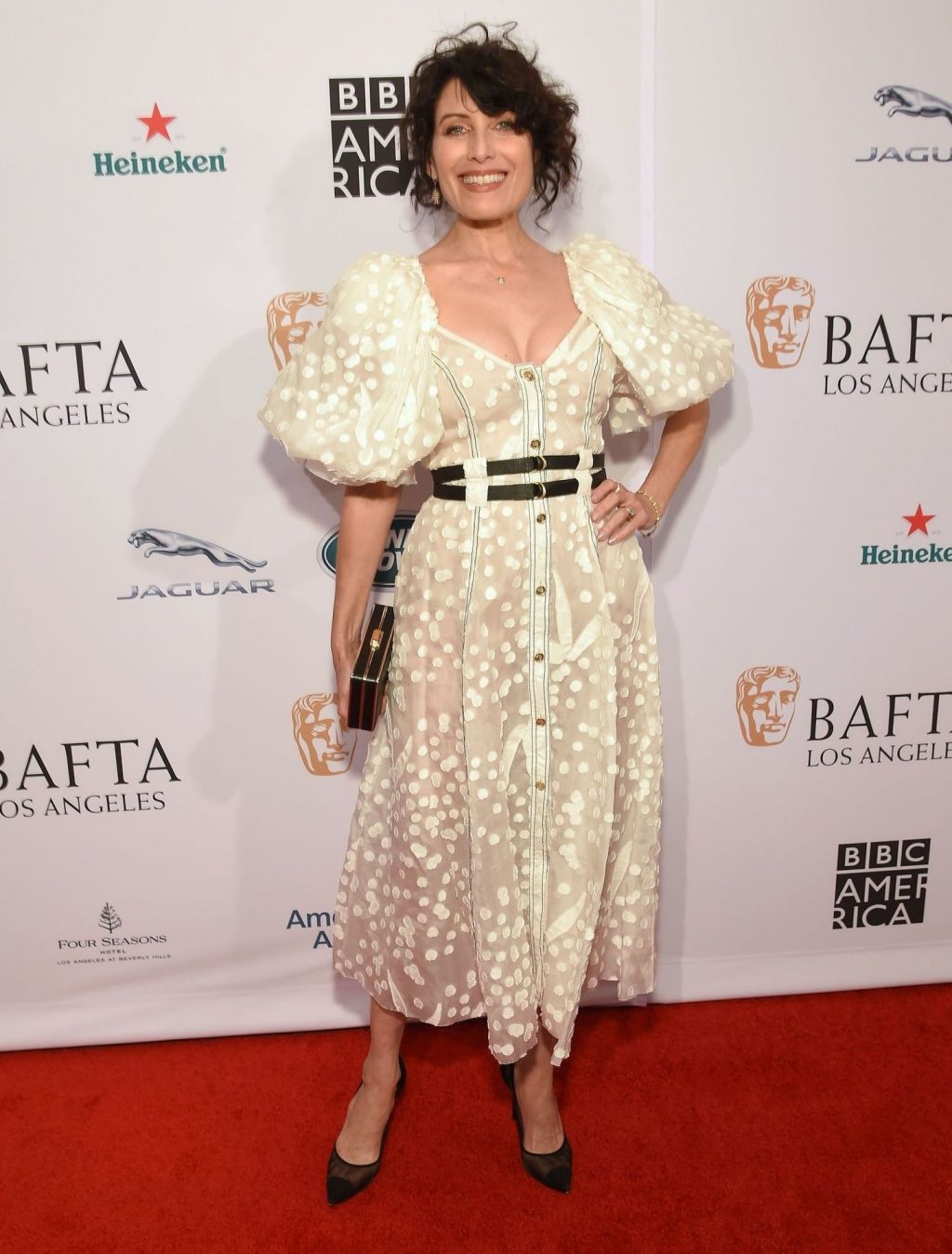 A atriz Lisa Edelstein foi fotografada na Festa do Chá da BAFTA Los Angeles realizada no Four Seasons Hotel Los Angeles em Beverly Hills, 01/04/2020.