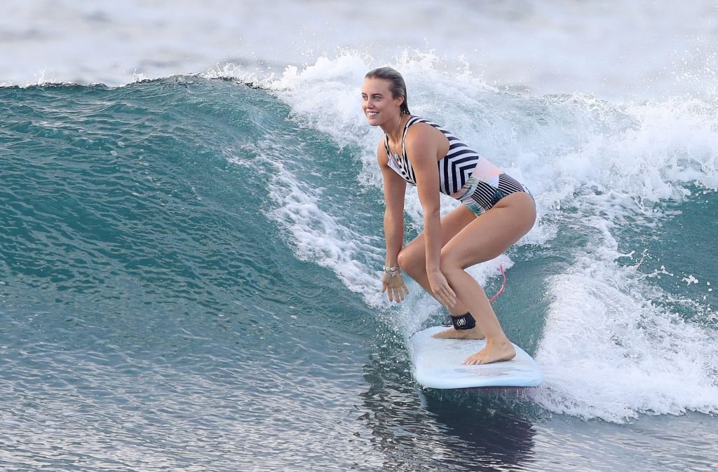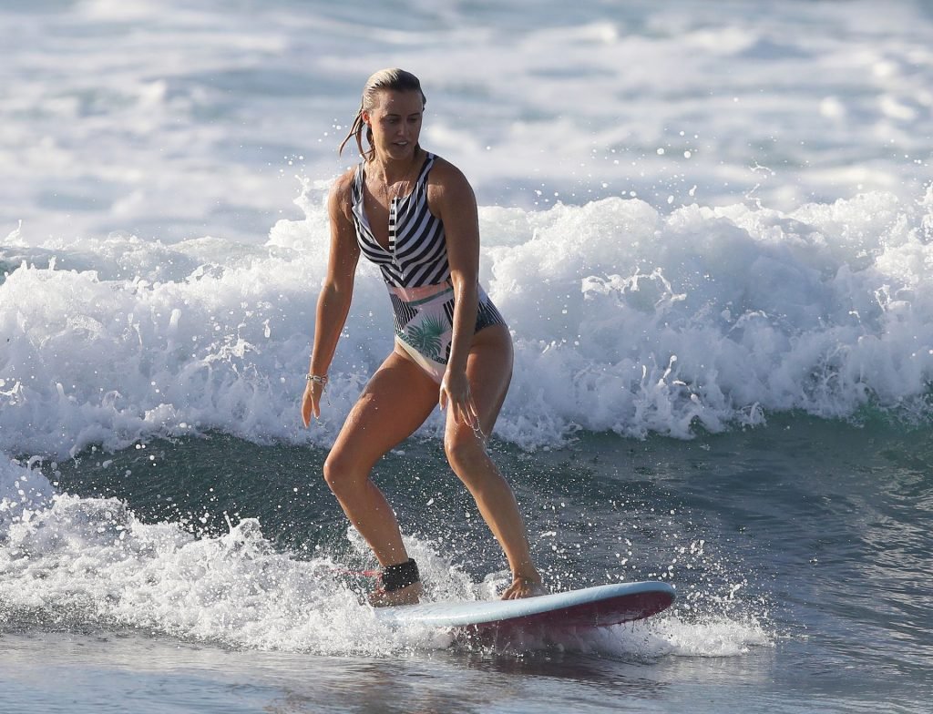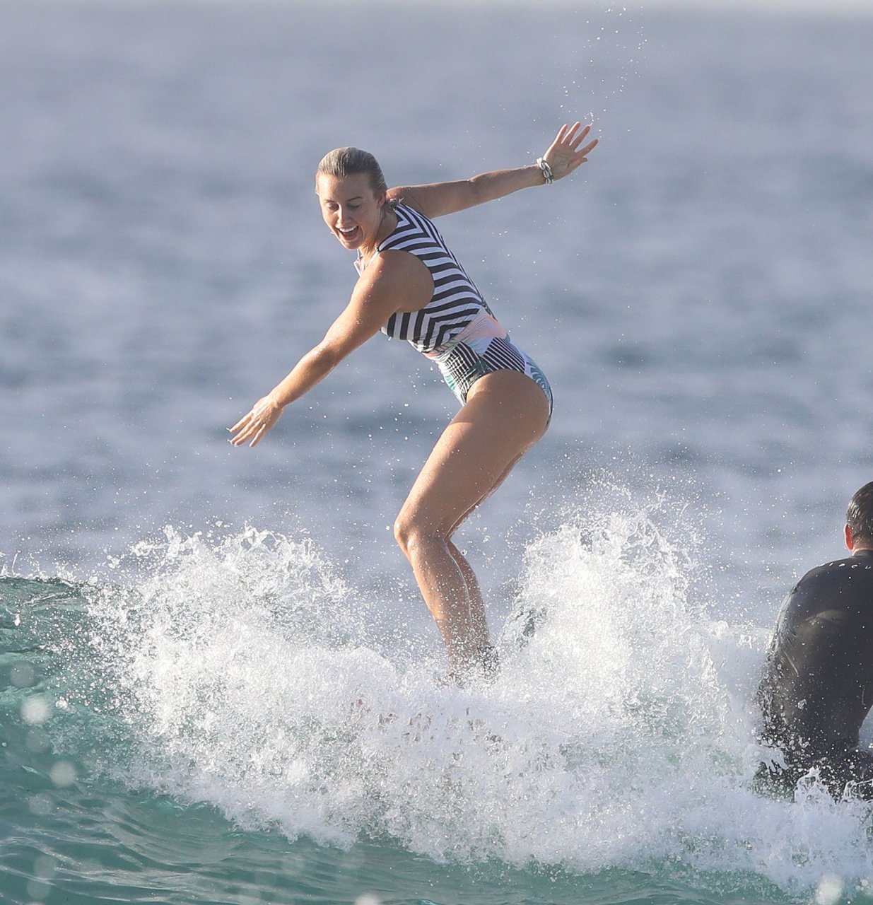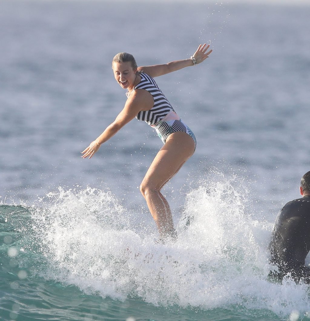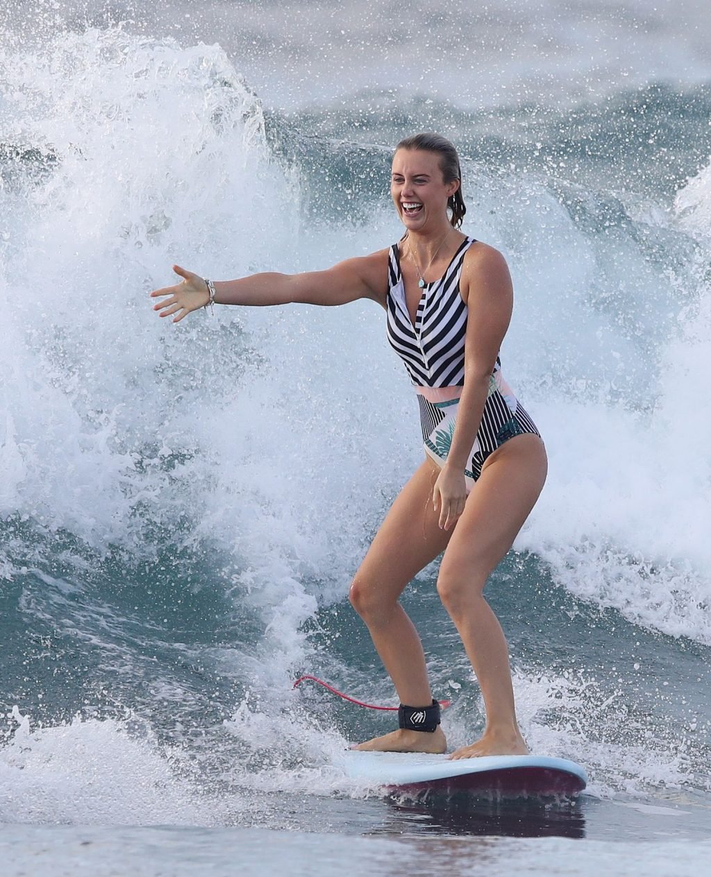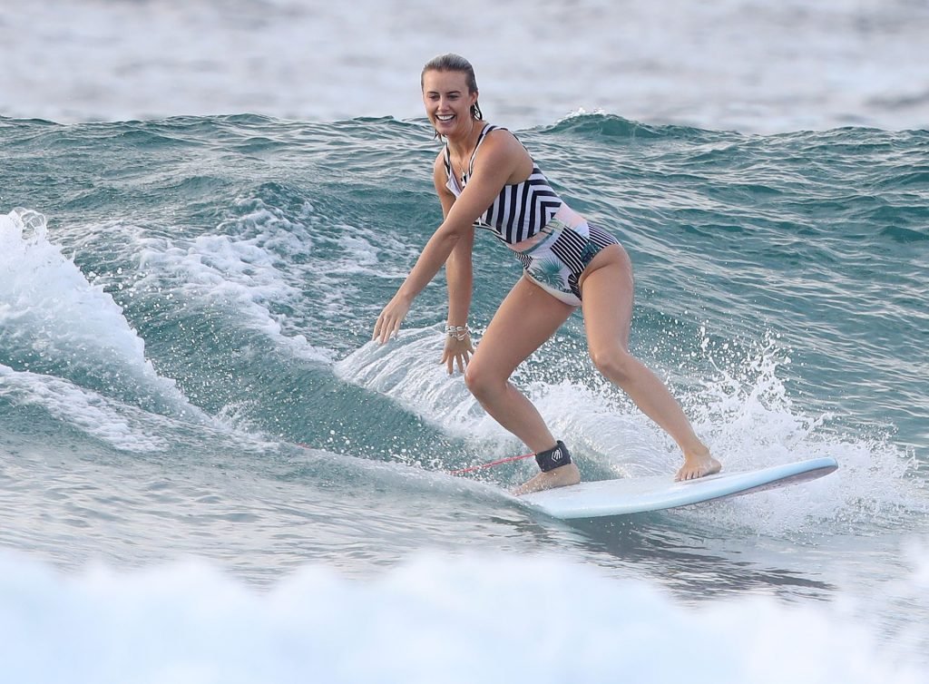Garota Surfista! A apresentadora de TV Olivia “Liv” Phyland foi vista surfando na Praia de Bondi, em Sydney, em 08/03/2019.