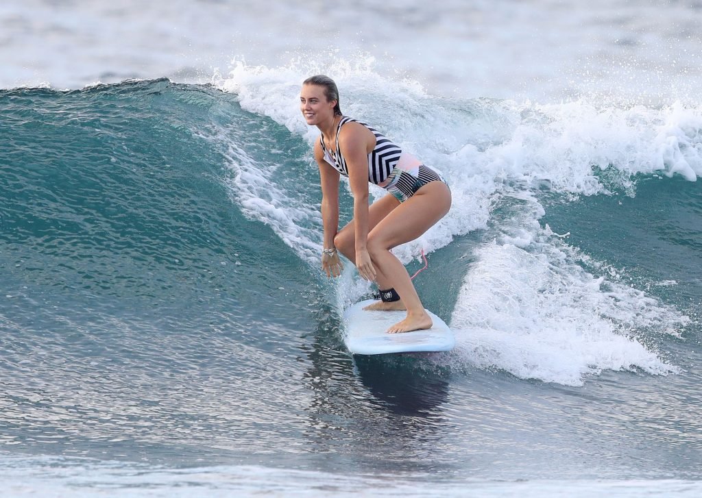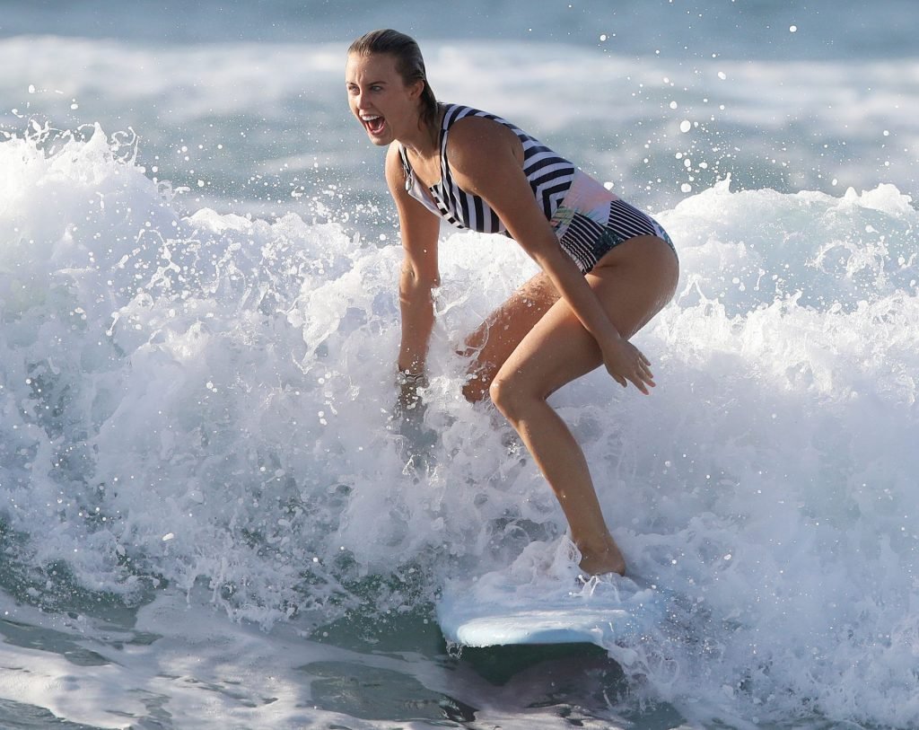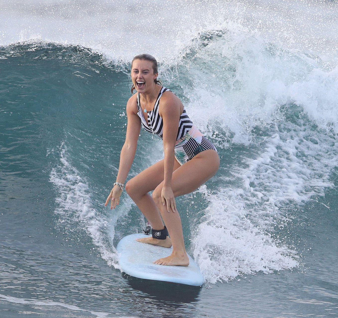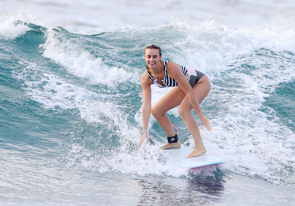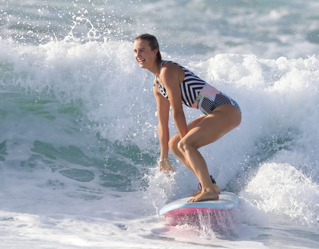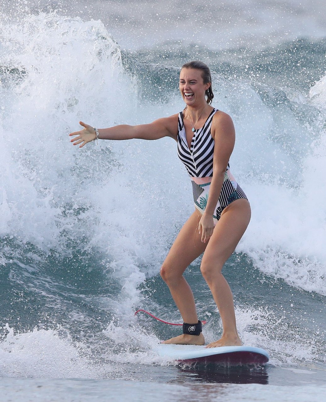 Garota Surfista! A apresentadora de TV Olivia “Liv” Phyland foi vista surfando na Praia de Bondi, em Sydney, em 08/03/2019.