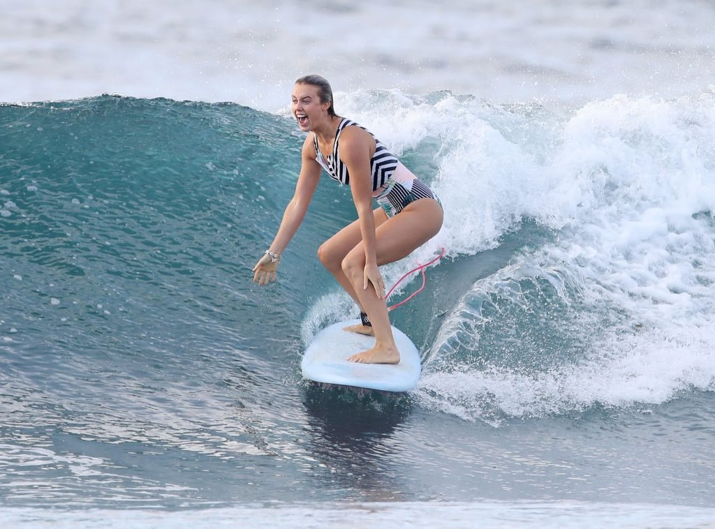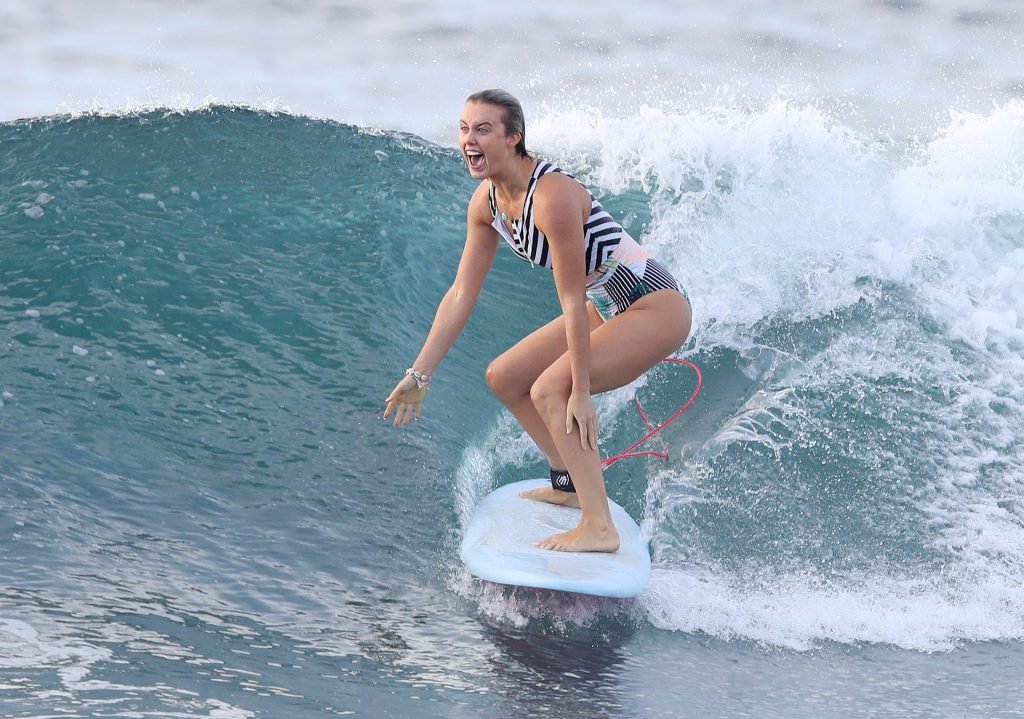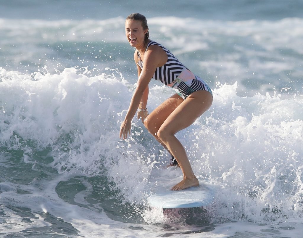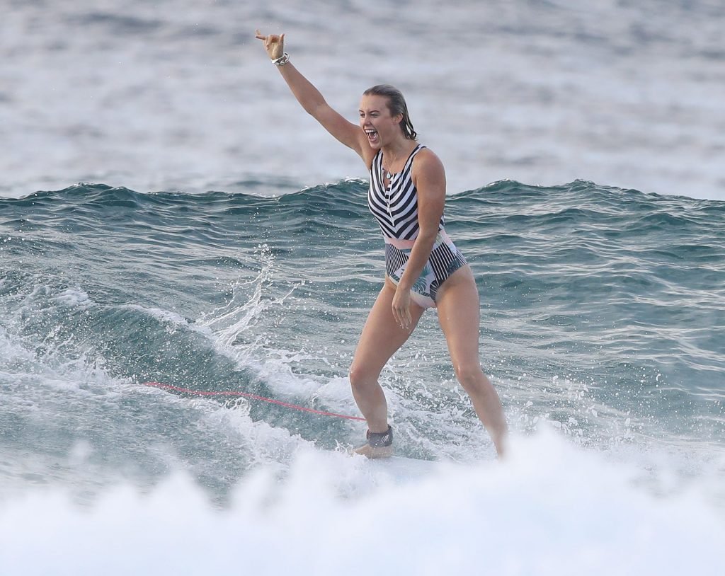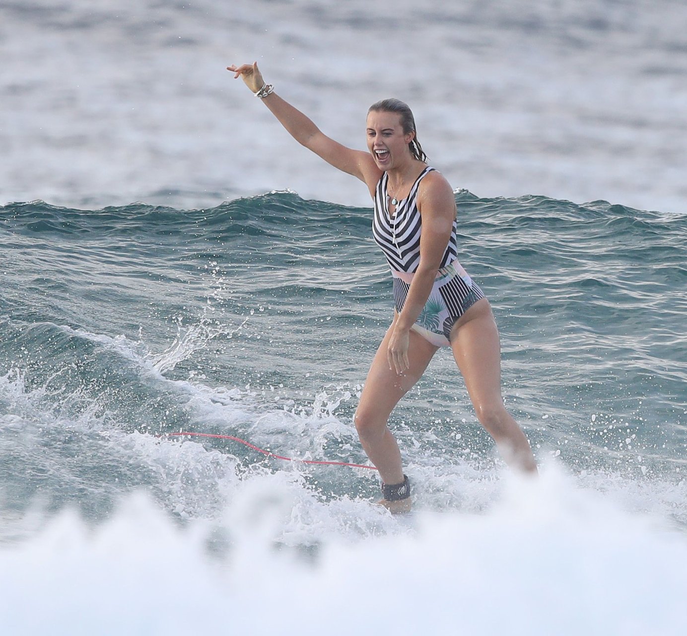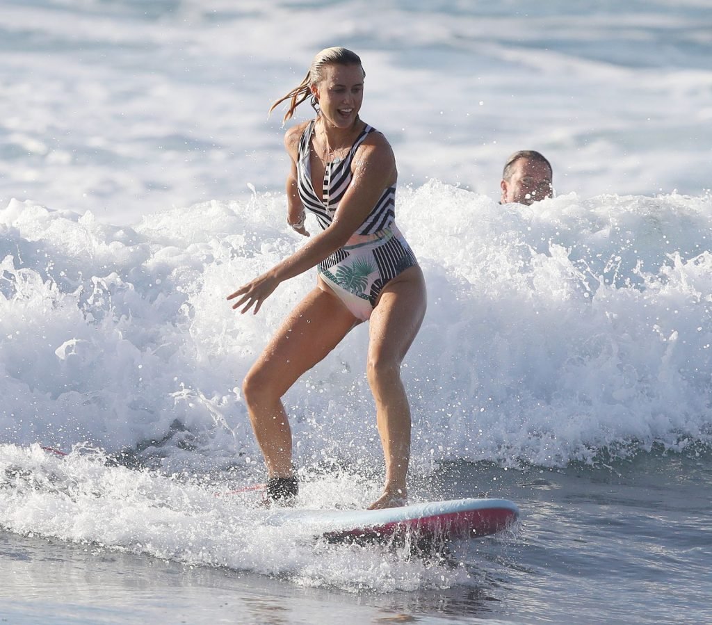 Garota Surfista! A apresentadora de TV Olivia “Liv” Phyland foi vista surfando na Praia de Bondi, em Sydney, em 08/03/2019.