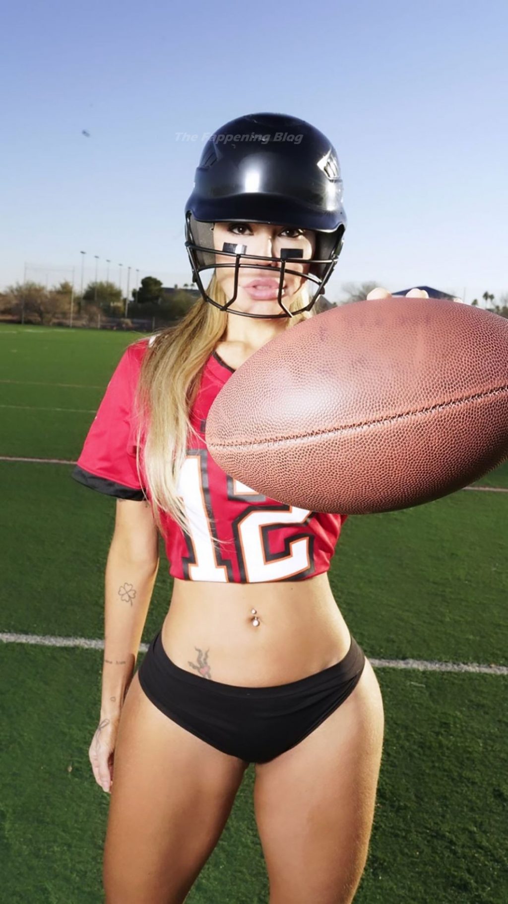 A bela curvilínea, que ganhou as manchetes após acusar o cantor Chris Brown de agressão, recentemente passou por uma cirurgia de lipoaspiração mal sucedida na Turquia que quase a matou. Mas, tendo se recuperado bem e estando em sua melhor forma até agora, ela exibiu sua figura com um traje de futebol americano curto – deixando claro que está apoiando Tom Brady e o Tampa Bay Buccaneers.